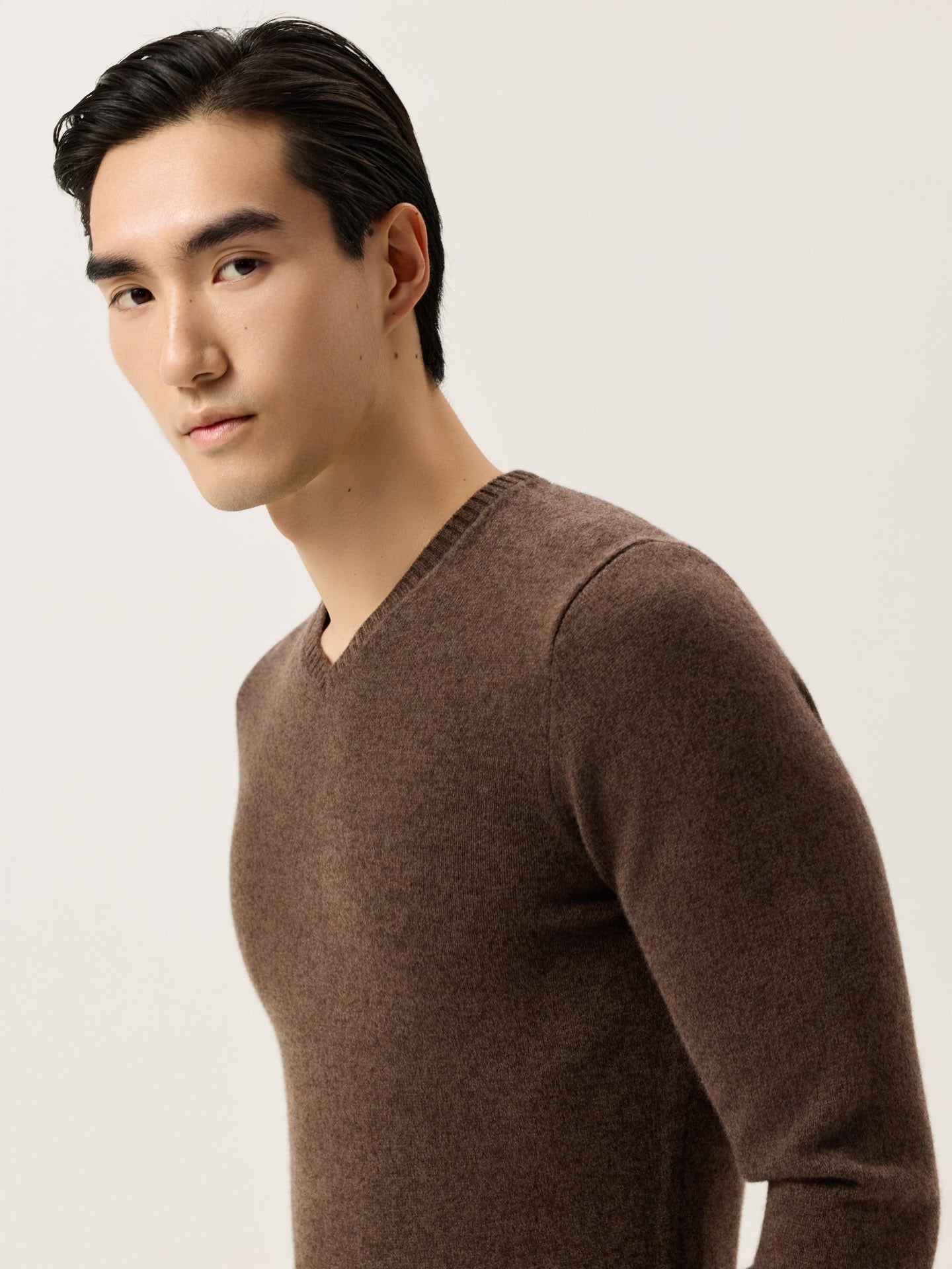 Long Sleeve V-Neck Sweater In Pure Lambswool