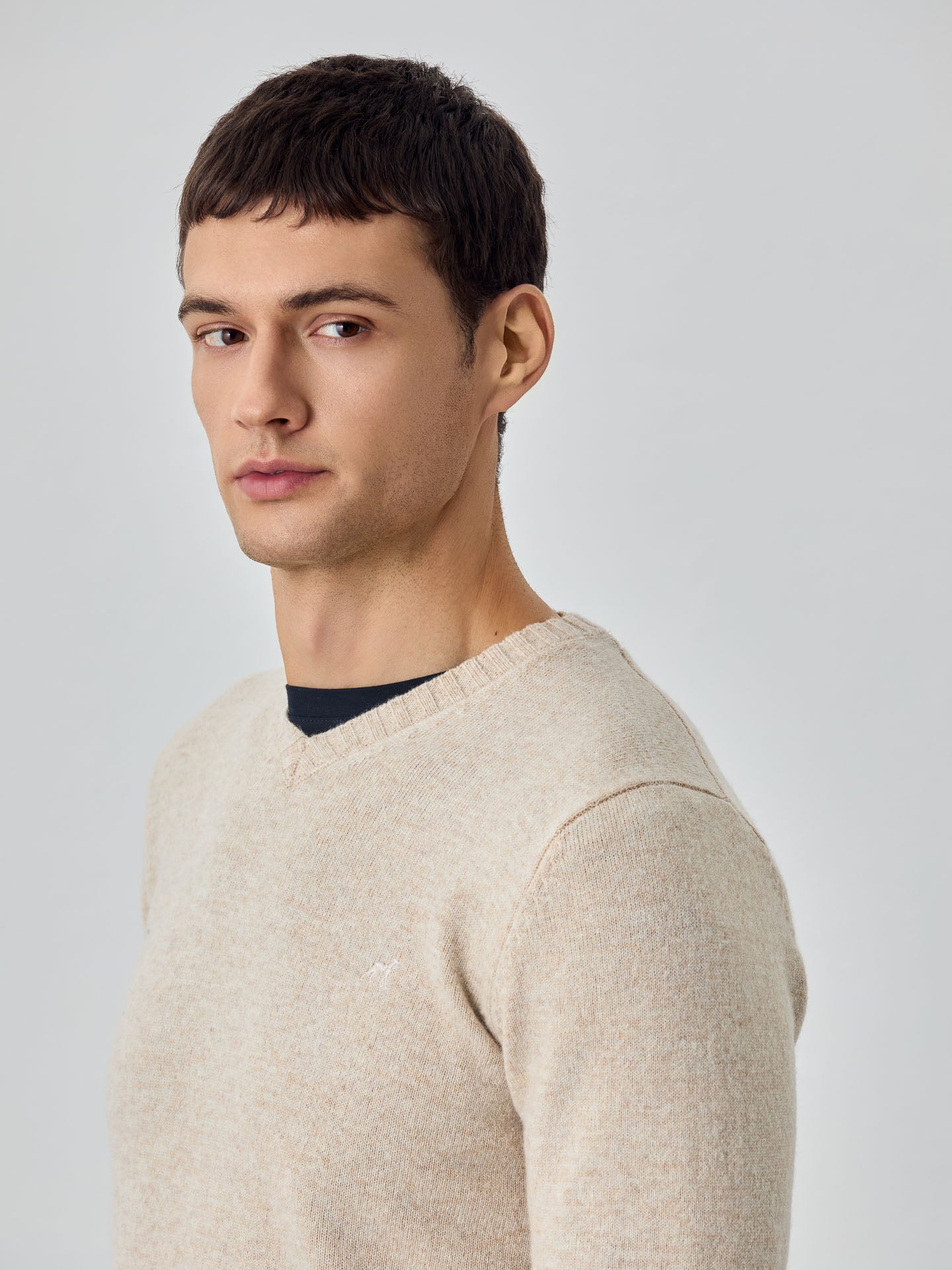 Machine Washable V-Neck Sweater With Long Sleeves In Lambswool