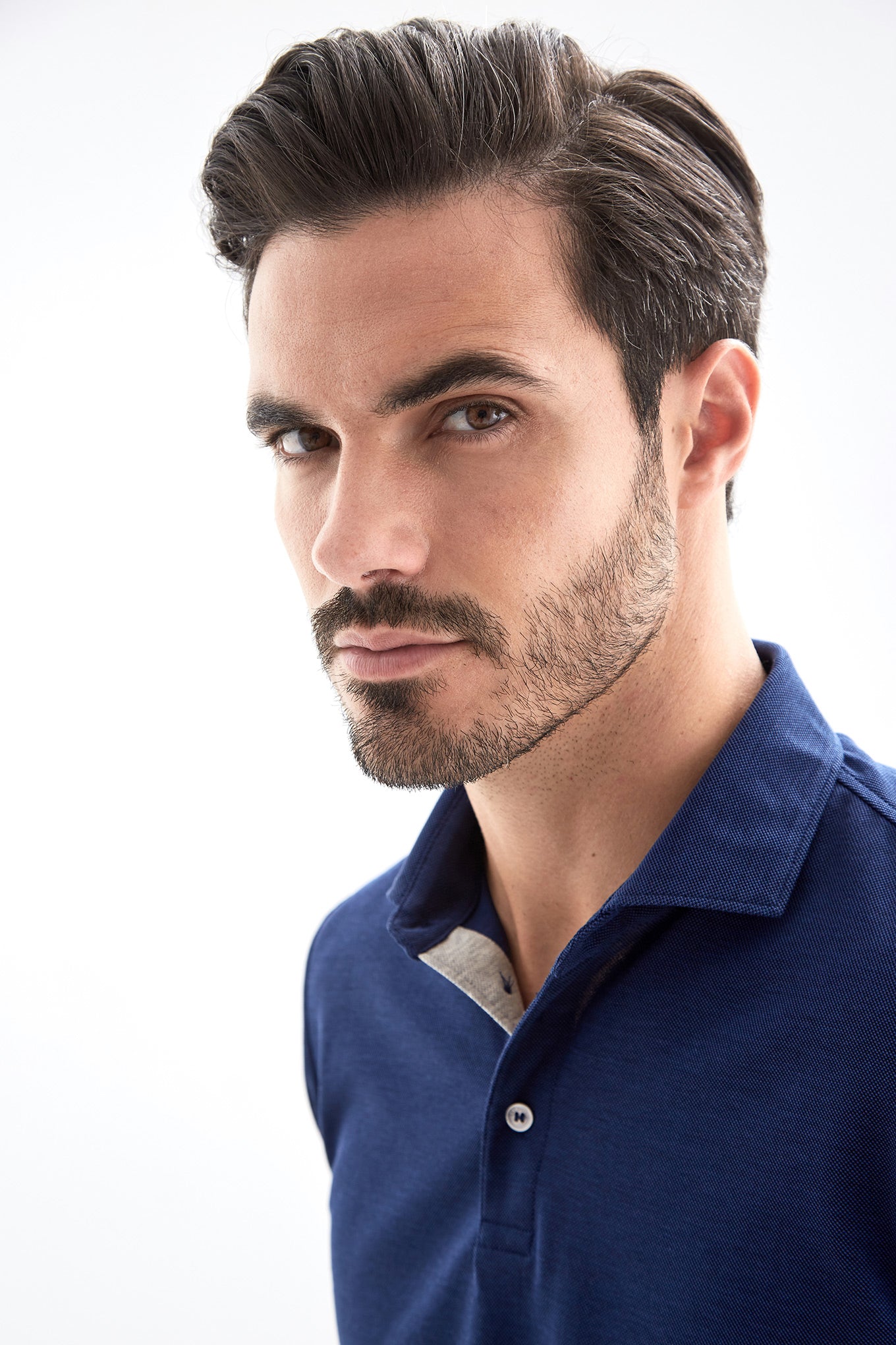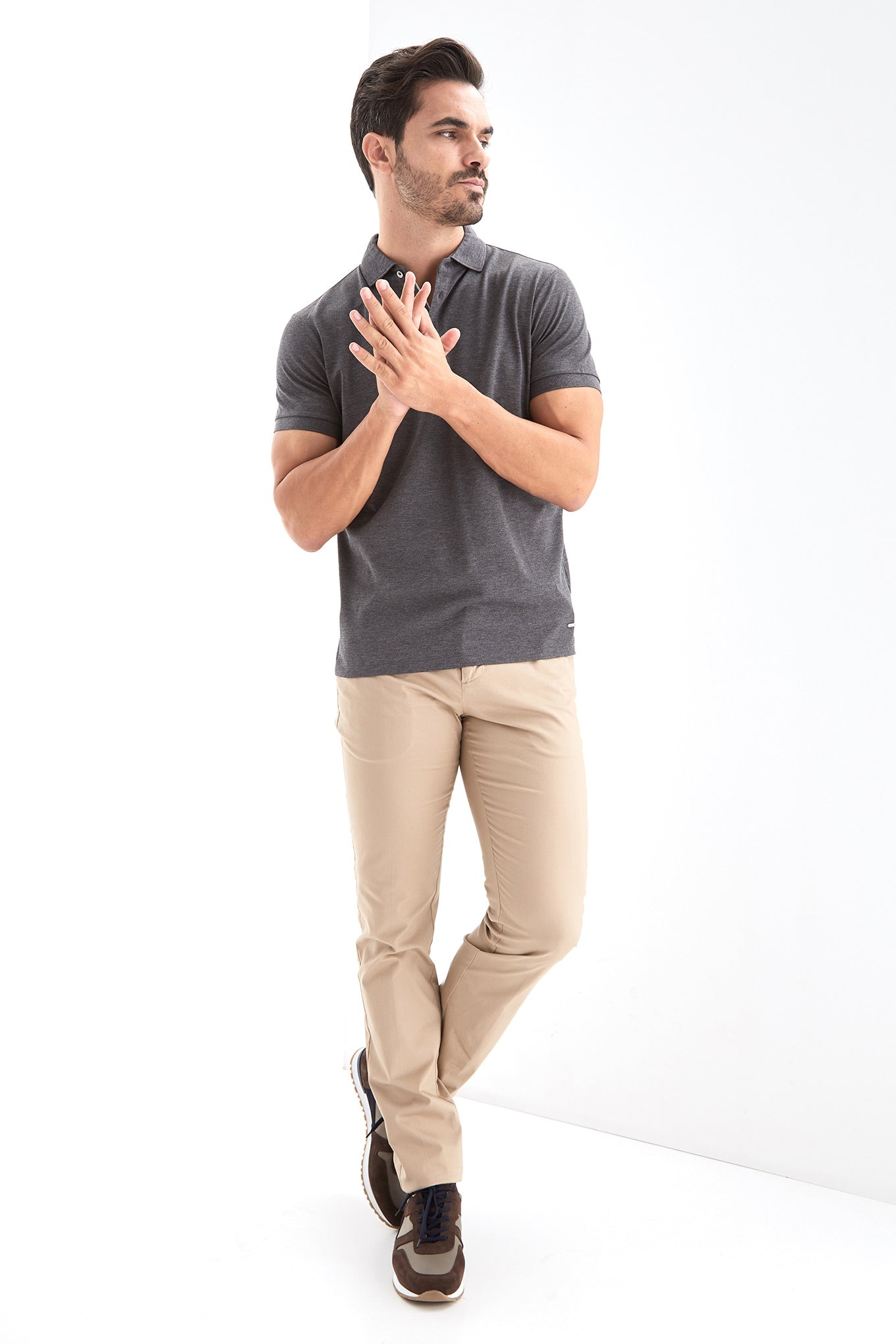 Men's slim fit short sleeved basic jersey polo shirt. Classic neckline.