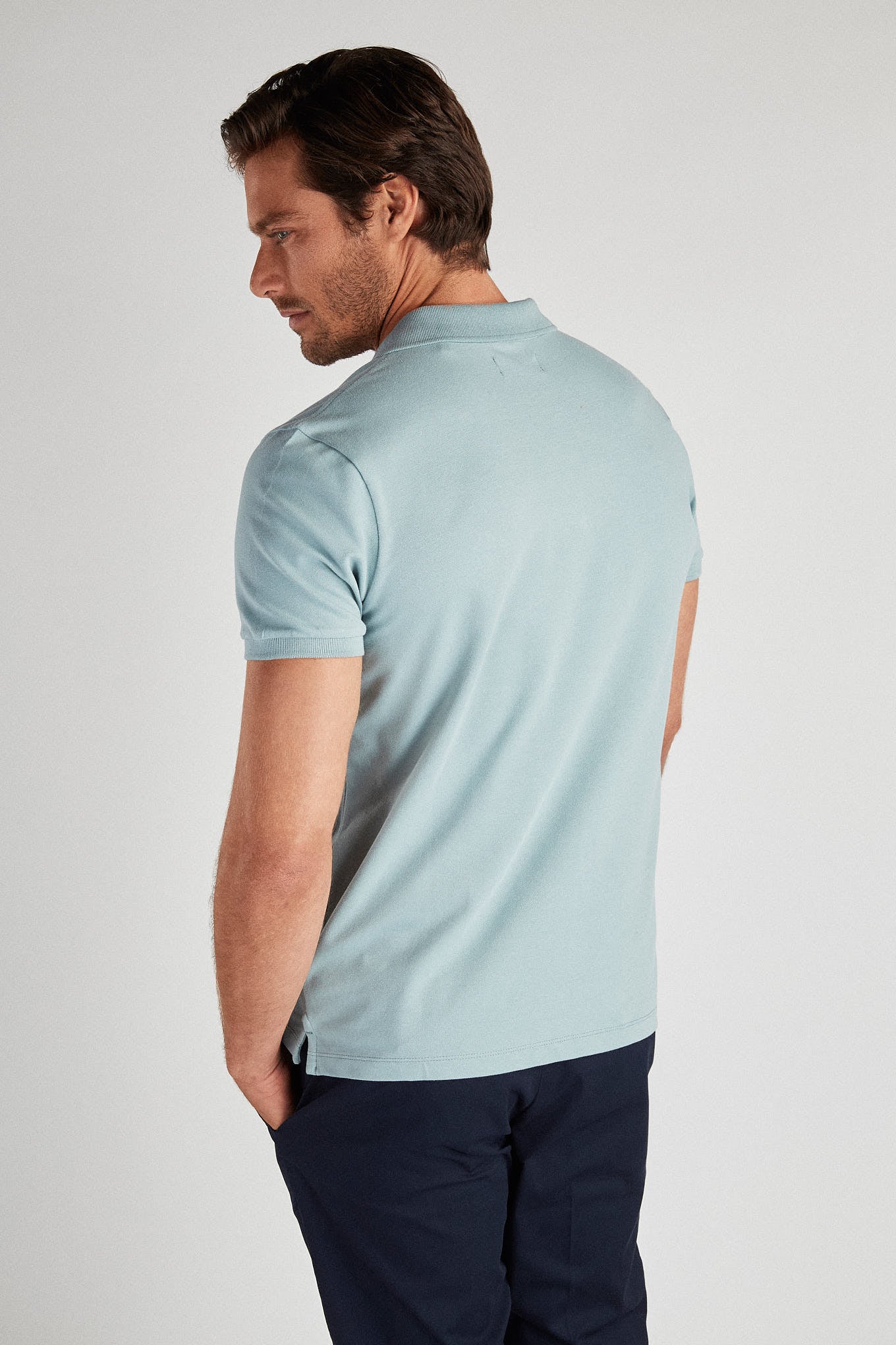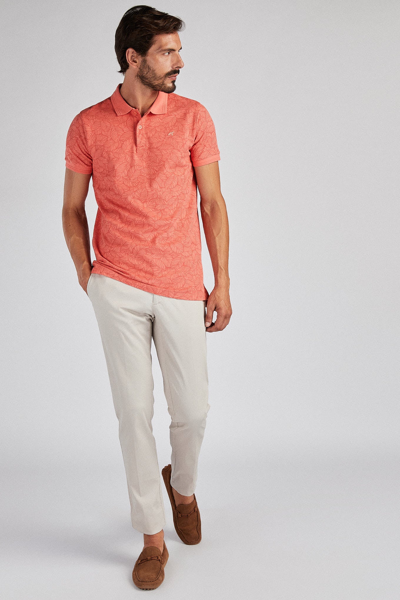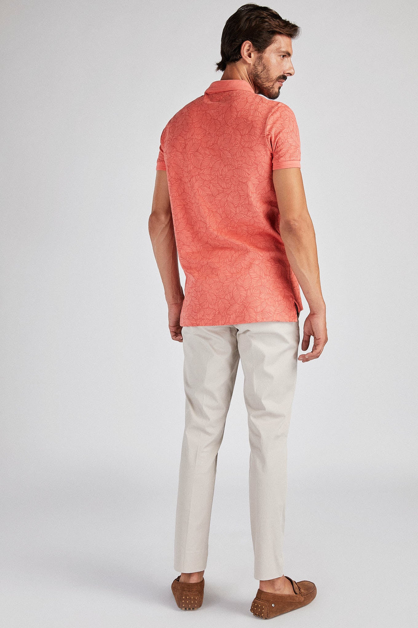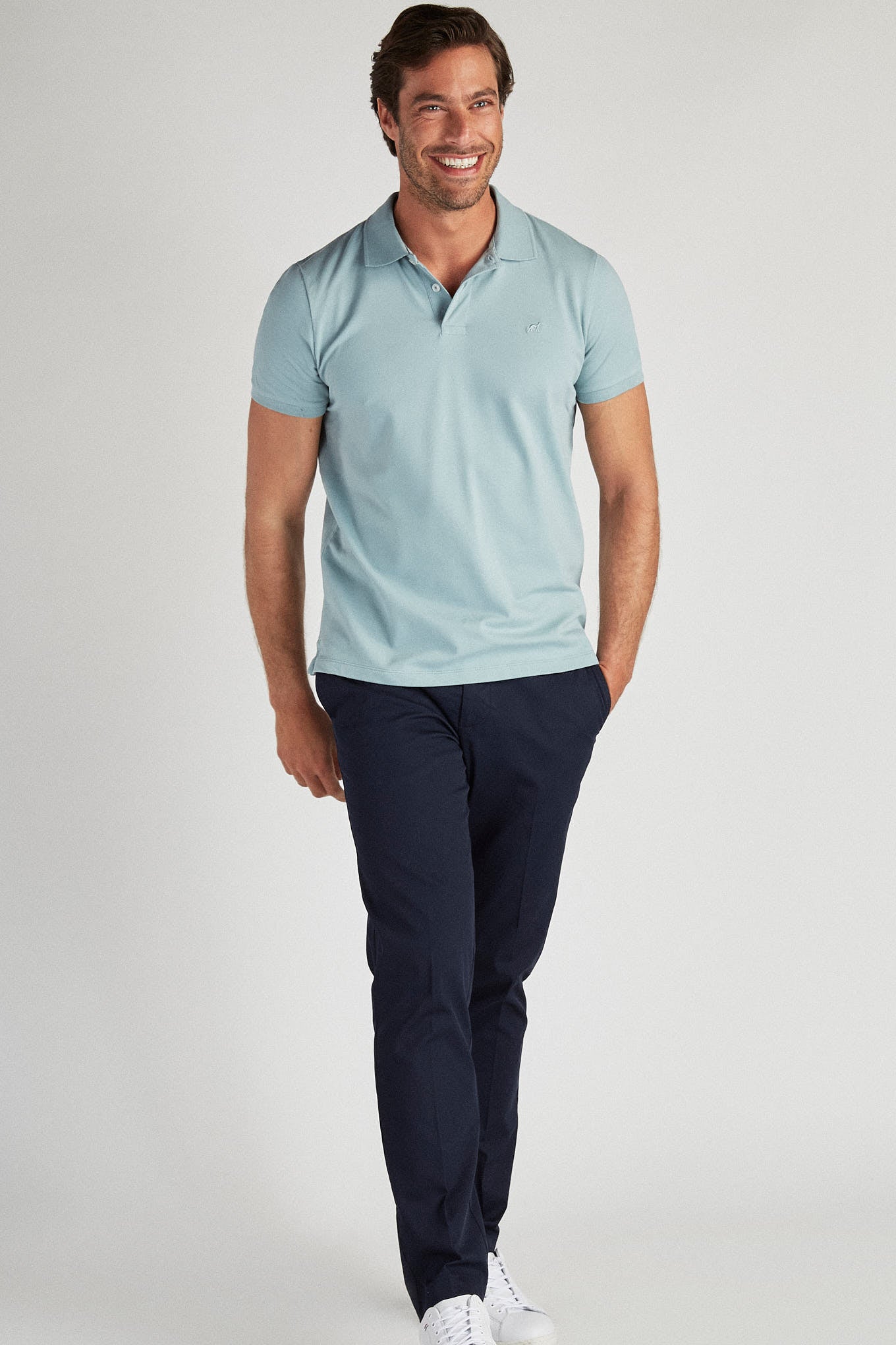 Men's chinos with tailored cut, made to measure. Slim model, plain, with soft texture. Reinforced waistband and loops. Zip fastener and buttons. Side and back pockets. Unique tone from special dyeing technique. Cotton and elastane combination provides extra elasticity.