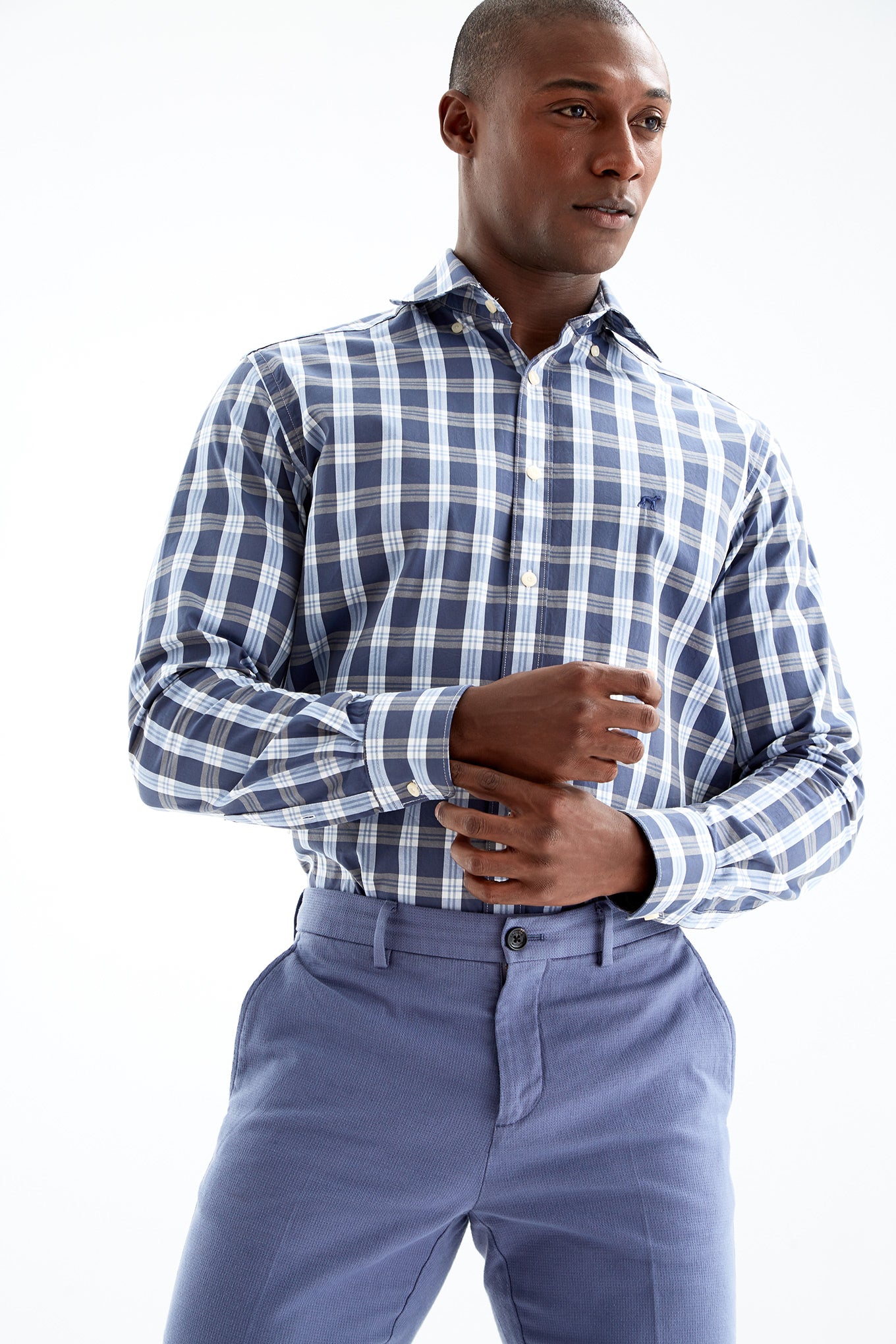Men's checked shirt, perfect for a casual style. Embroidered logo on the chest. Back length on size 40 is 80cm and sleeve length is 66cm. Shirt