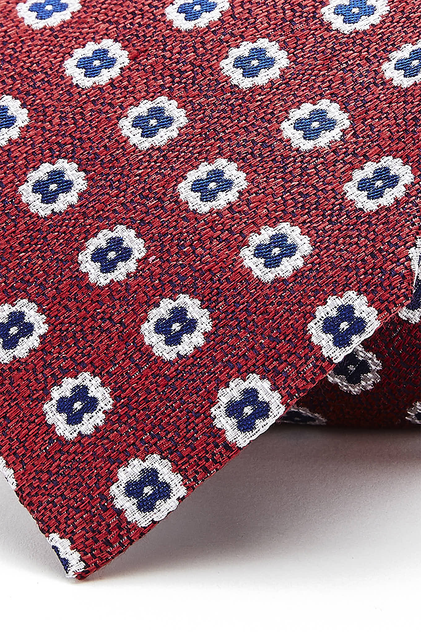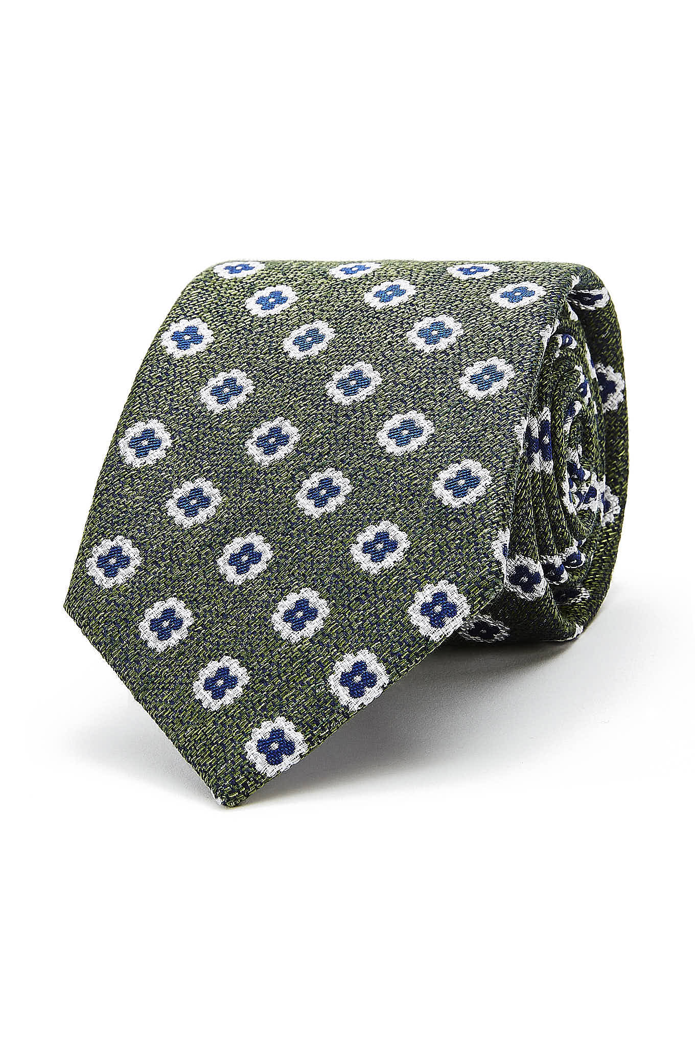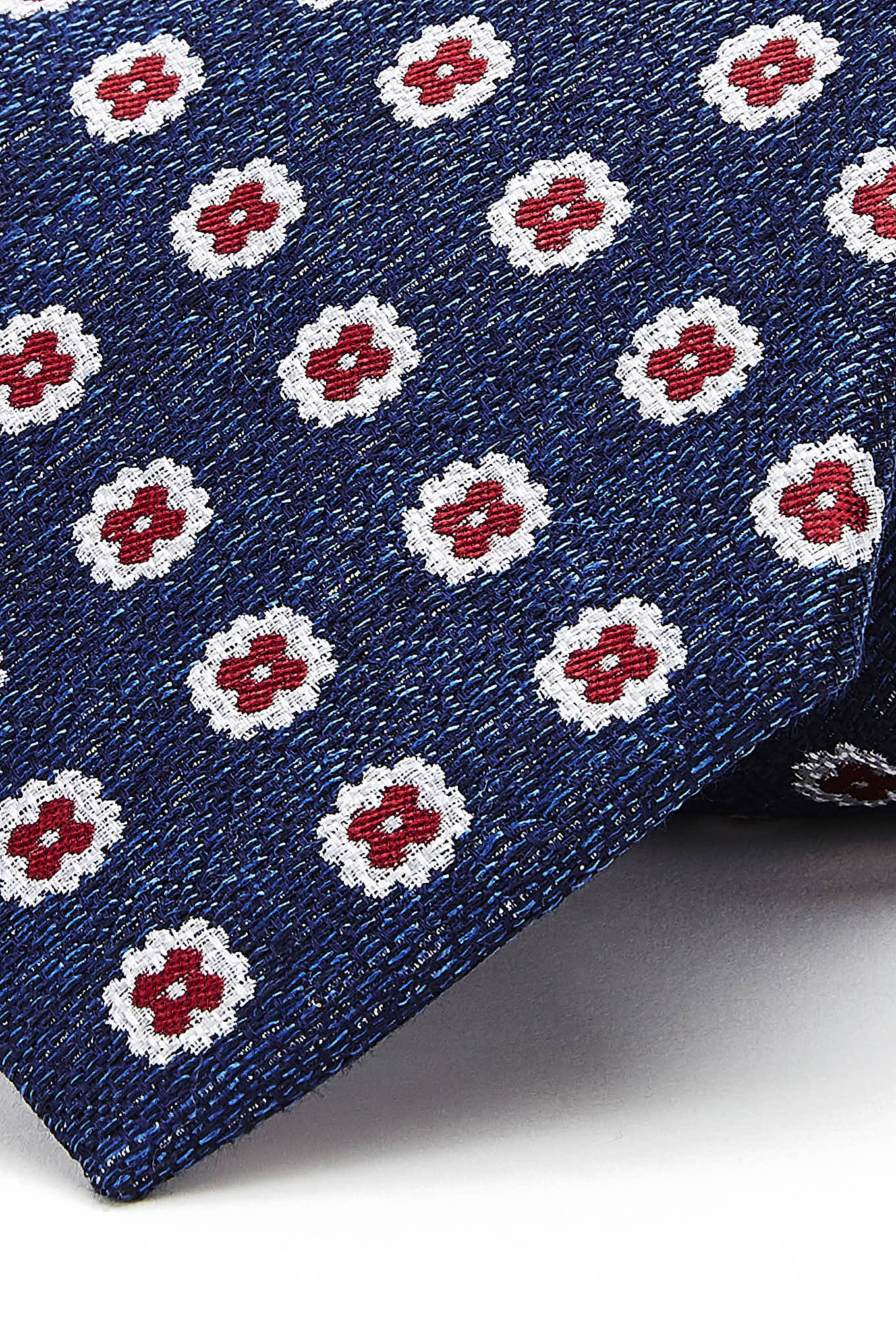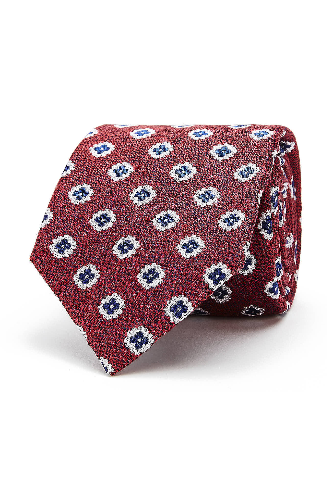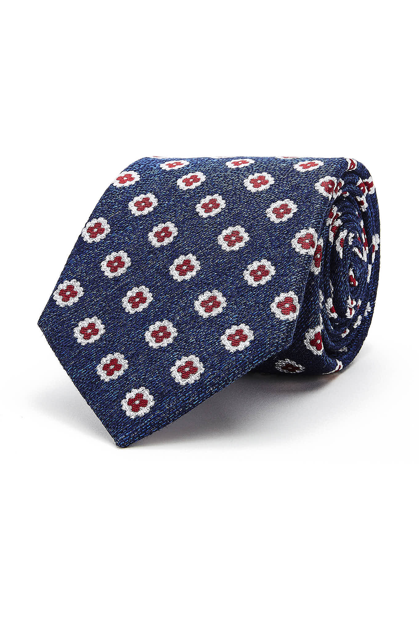Men's classic tie with an elegant floral pattern, very trendy. Pure silk tie for maximum softness. 8 cm wide at the widest part available at Sacoor Brothers online store.