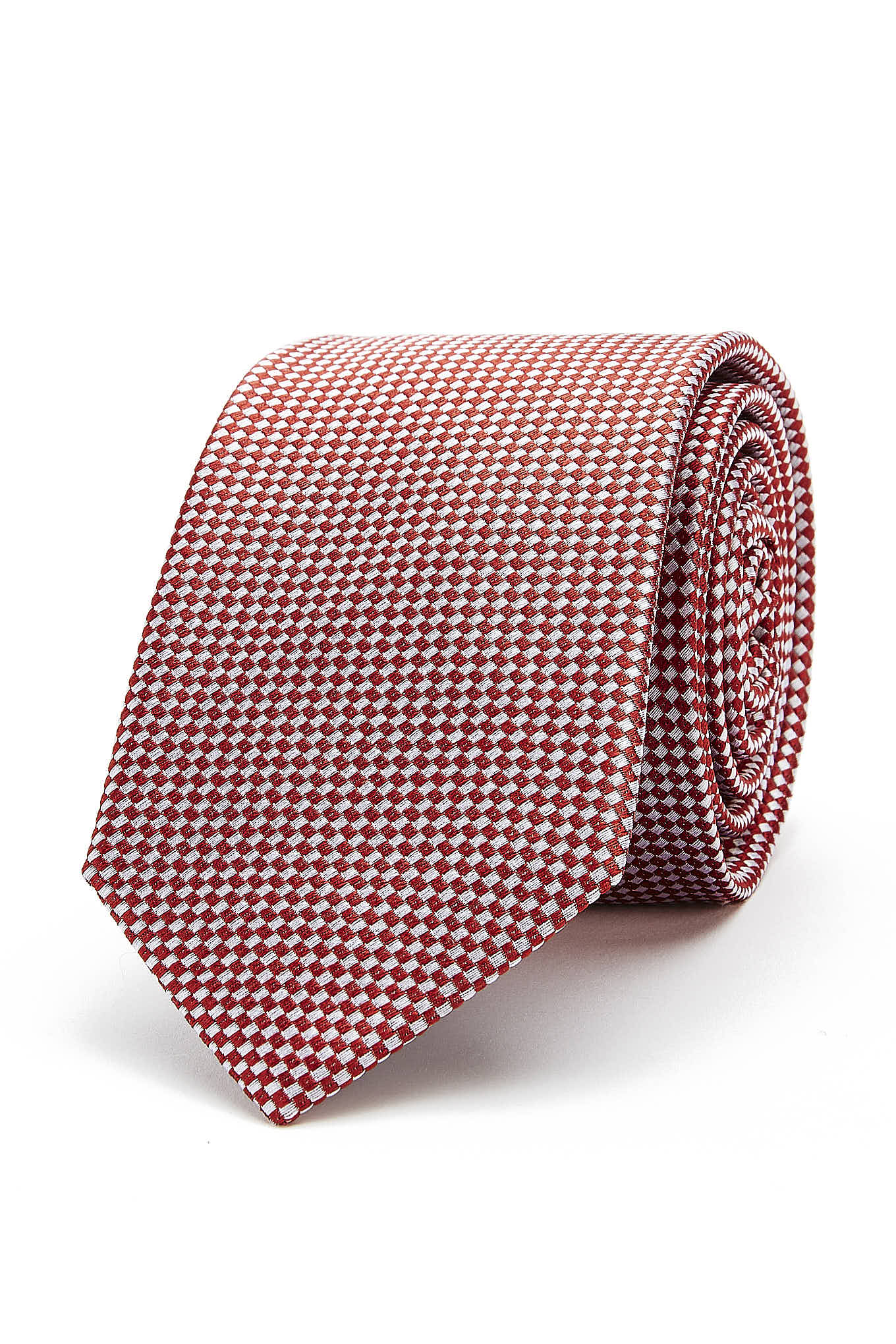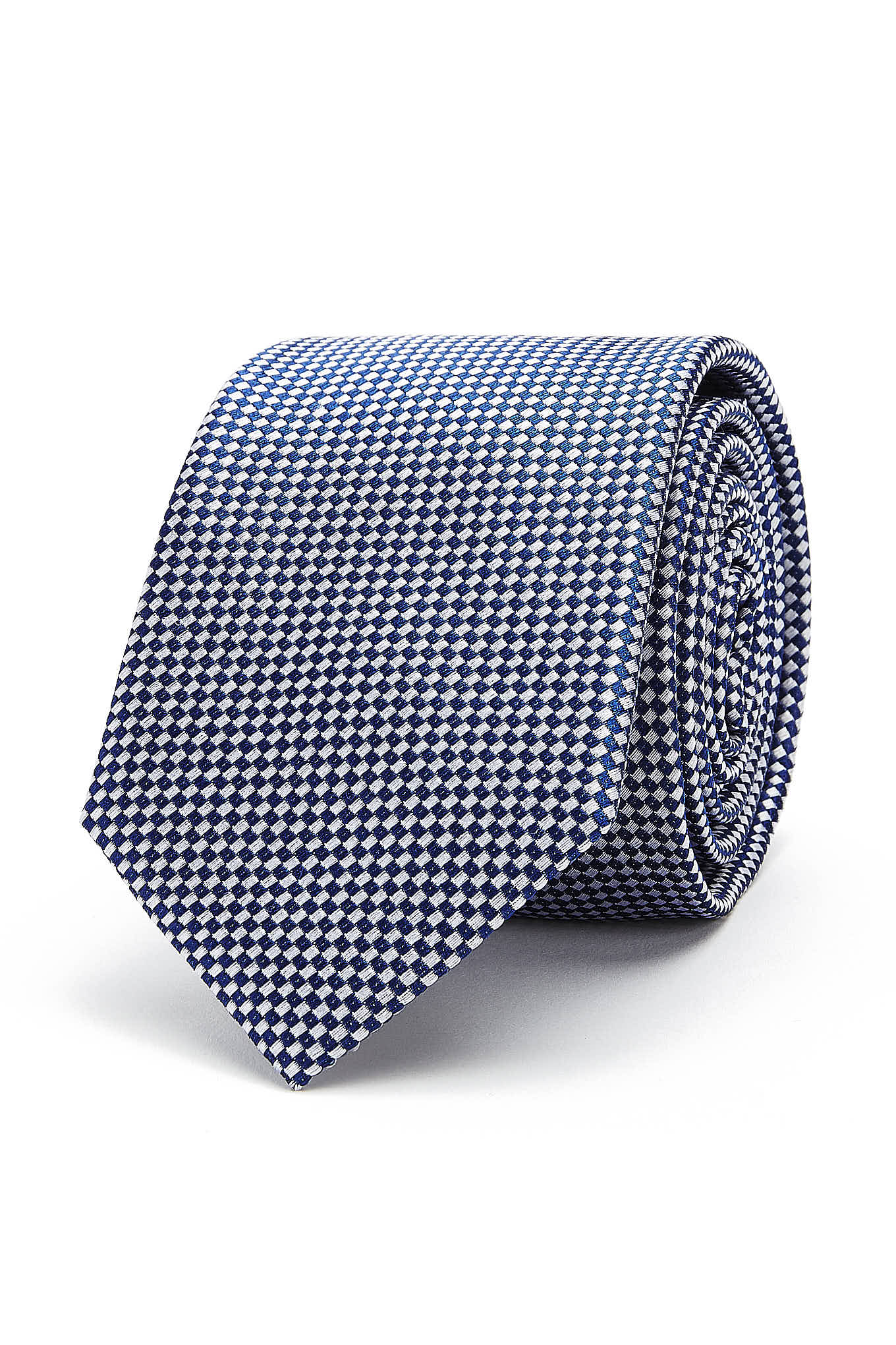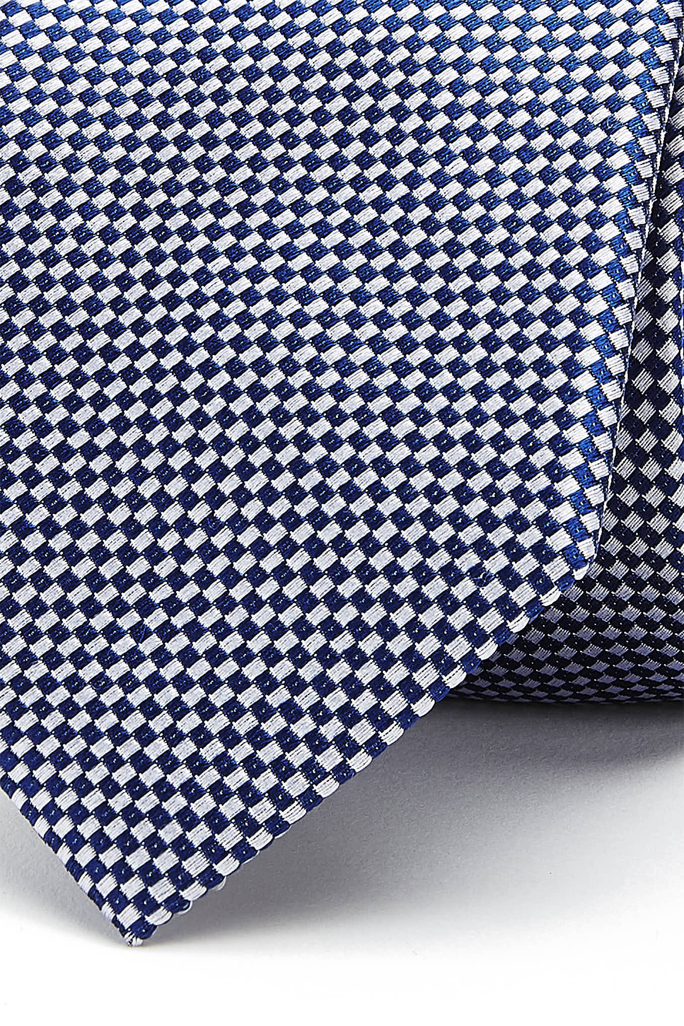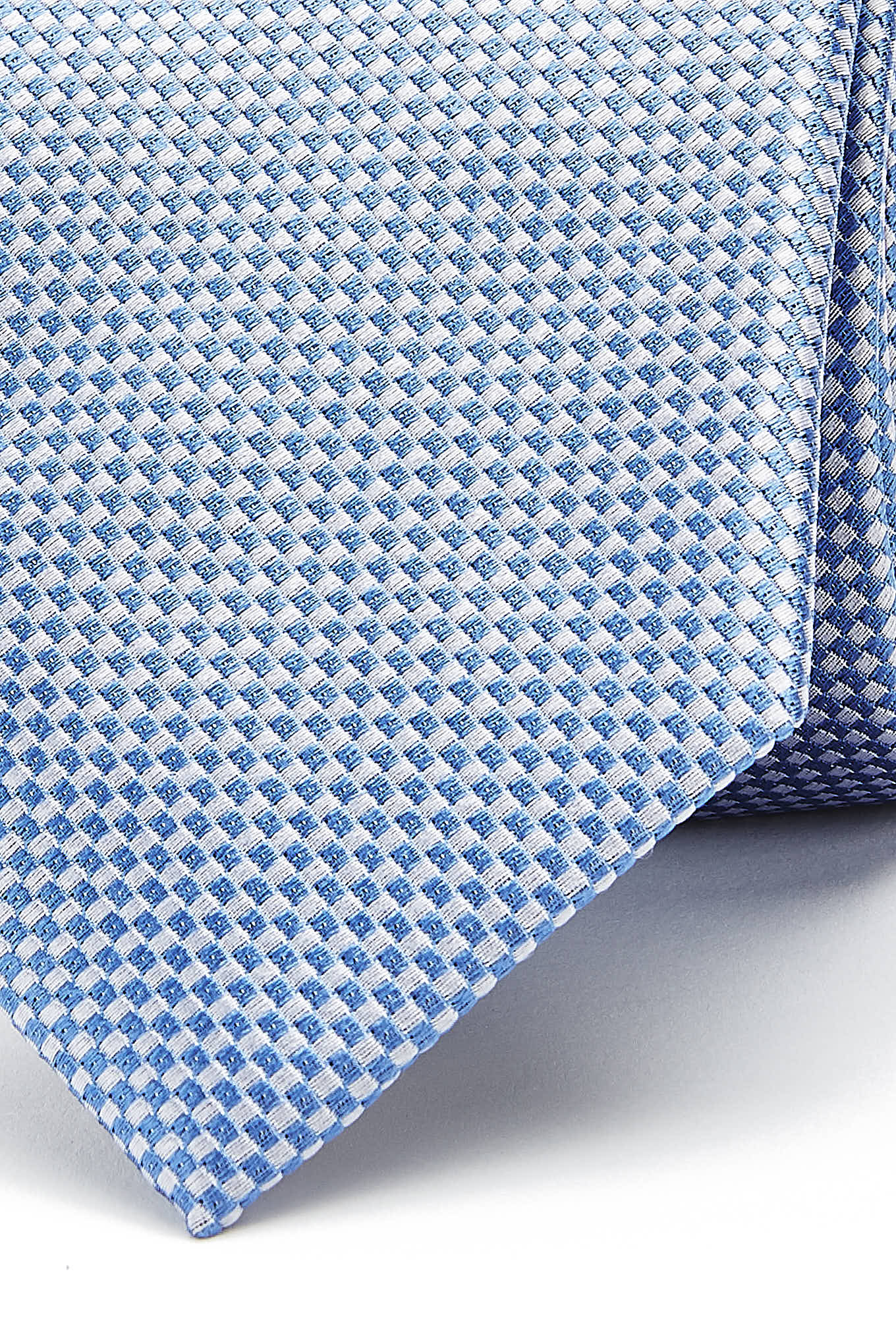 Men's classic tie with small squares pattern. This tie is made of pure silk, for a touch of luxury and softness. Custom lining. 7 cm wide at the widest part available at Sacoor Brothers online store.