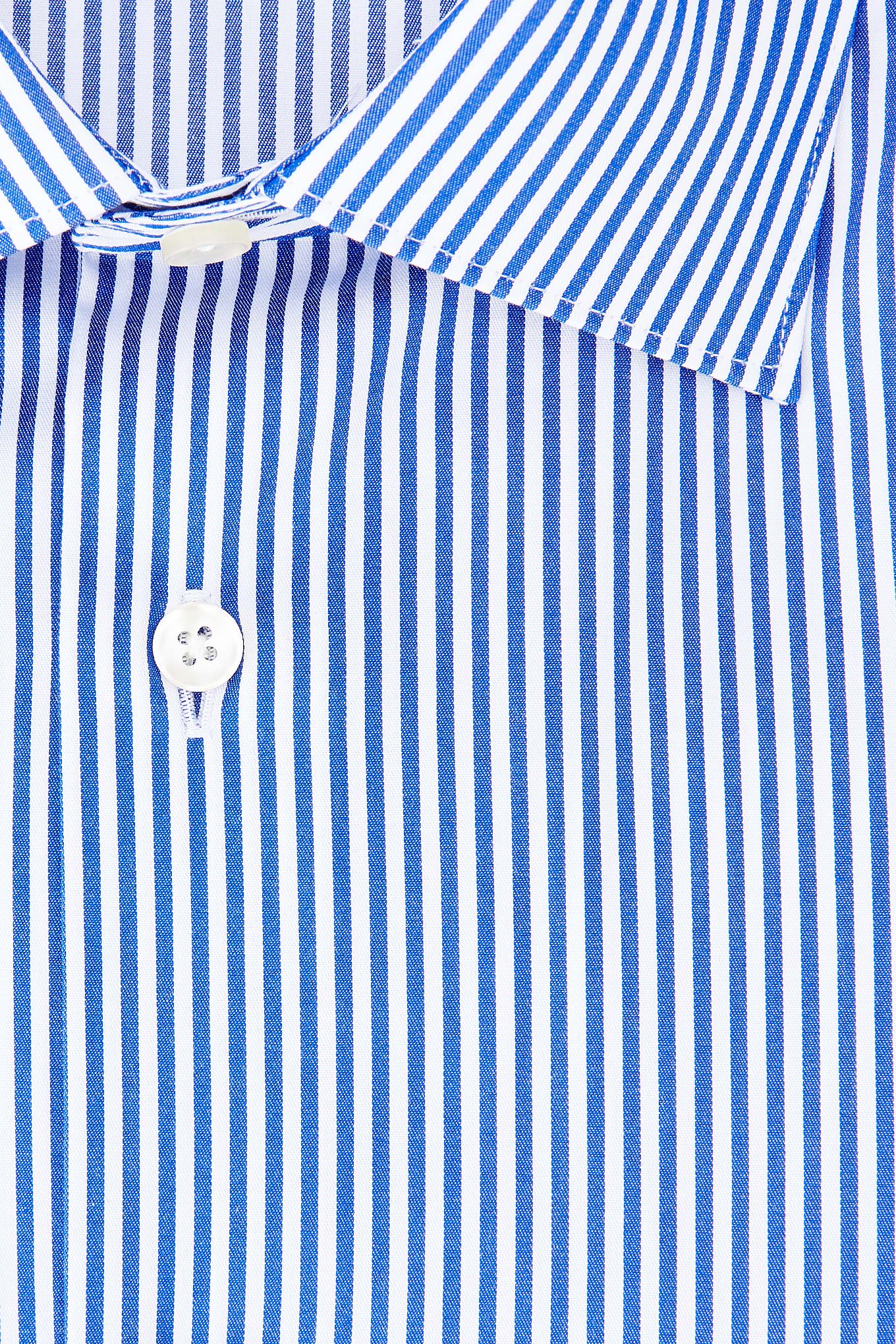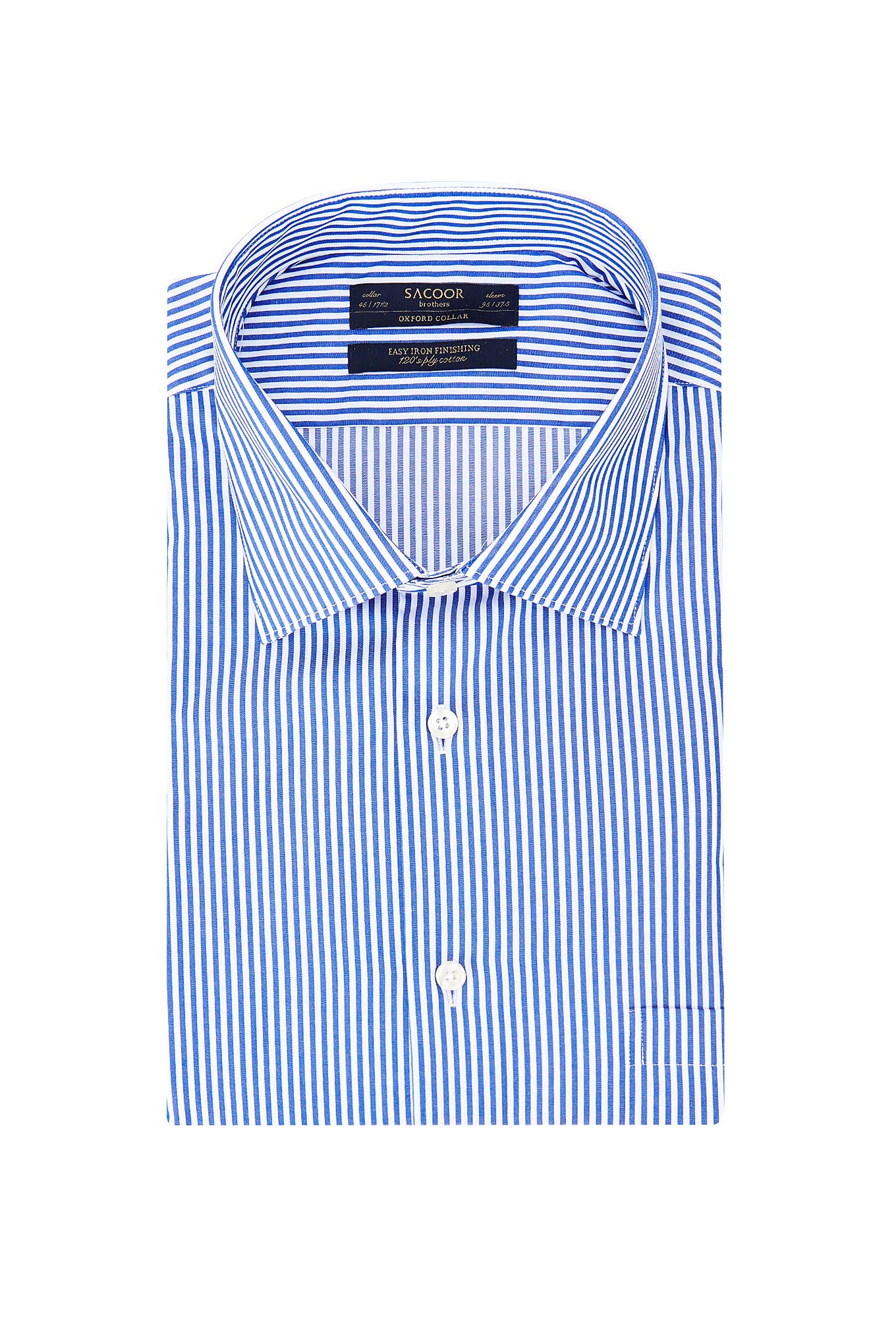 Men's shirt, classic cut, striped pattern. Open collar, with stays included. English stitching, more comfortable with a quality finish. Side support from triangular seams. Cotton, very easy to iron. The size 40 back length is 78 cm and the sleeve length is 63 cm. See our Size Guide.