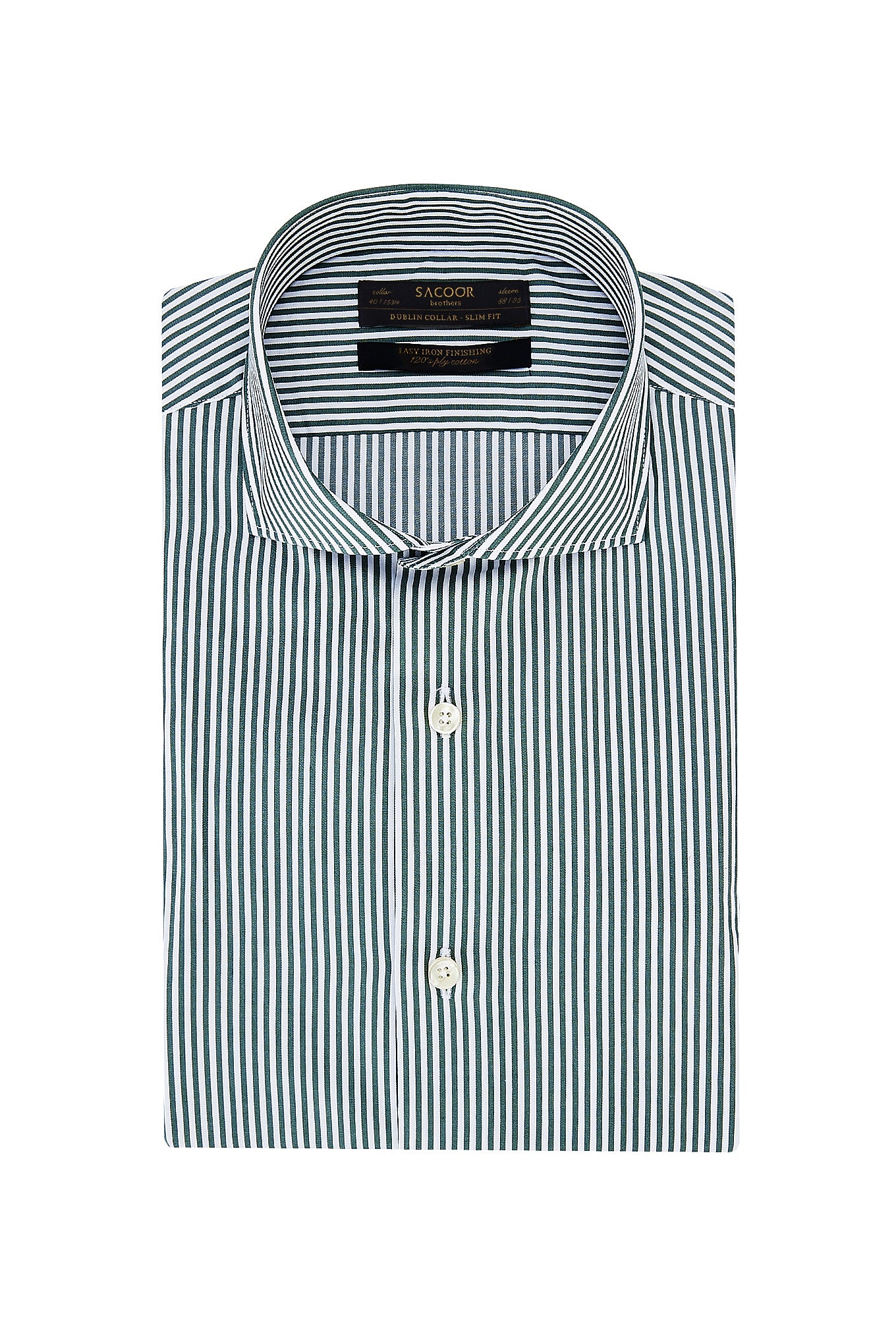 Men's shirt, slim fit, striped pattern. Open collar, with stays included. English stitching, more comfortable with a quality finish. Cotton, very easy to iron. The size 40 back length is 78 cm and the sleeve length is 63 cm. See our Size Guide.