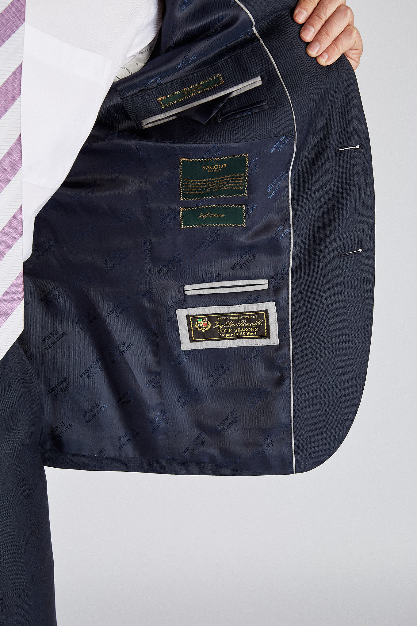 Pieces purchased at Sacoor Brothers benefit from a free in-store tailoring service. Just bring the item in, and our tailors will adjust the clothes to your body, ensuring a perfect fit. This way, you can enjoy clothing that is truly tailored to you.