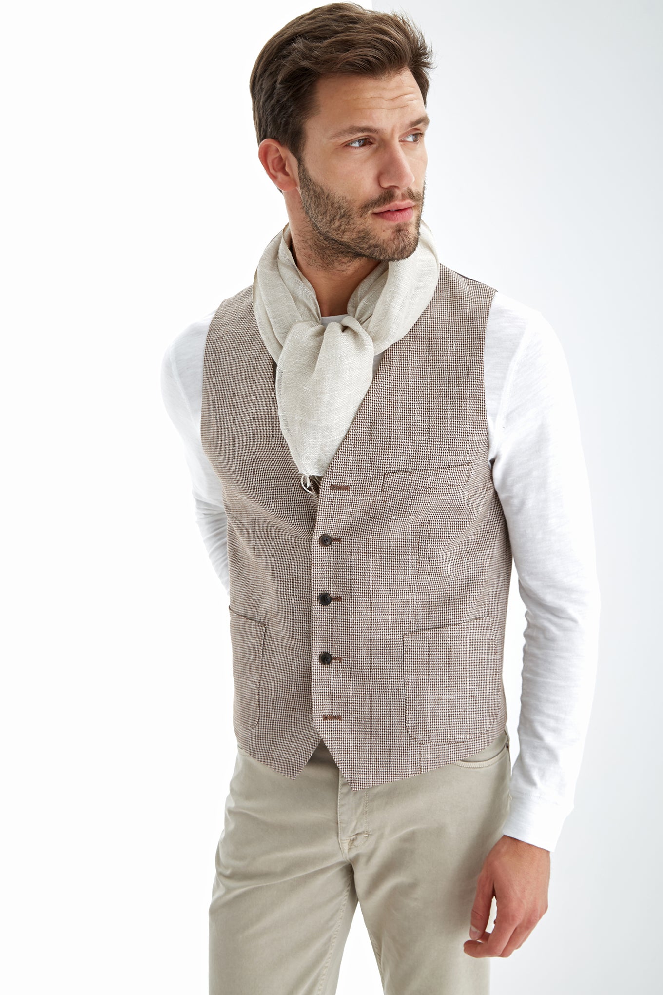 Men's Classical Linen Pied de Poule Vest