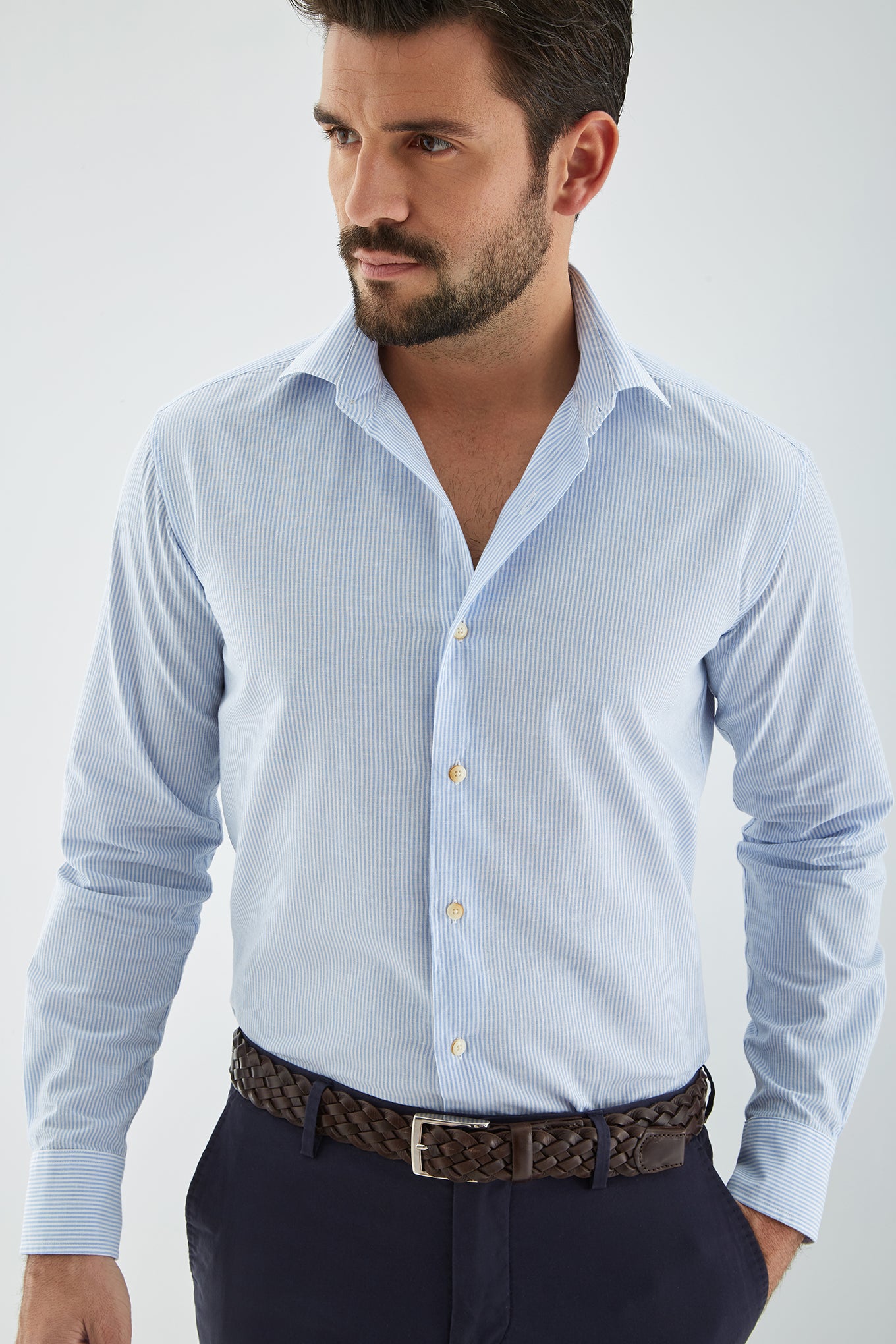 Men's Cotton and Linen Striped Slim Fit Sports Shirt