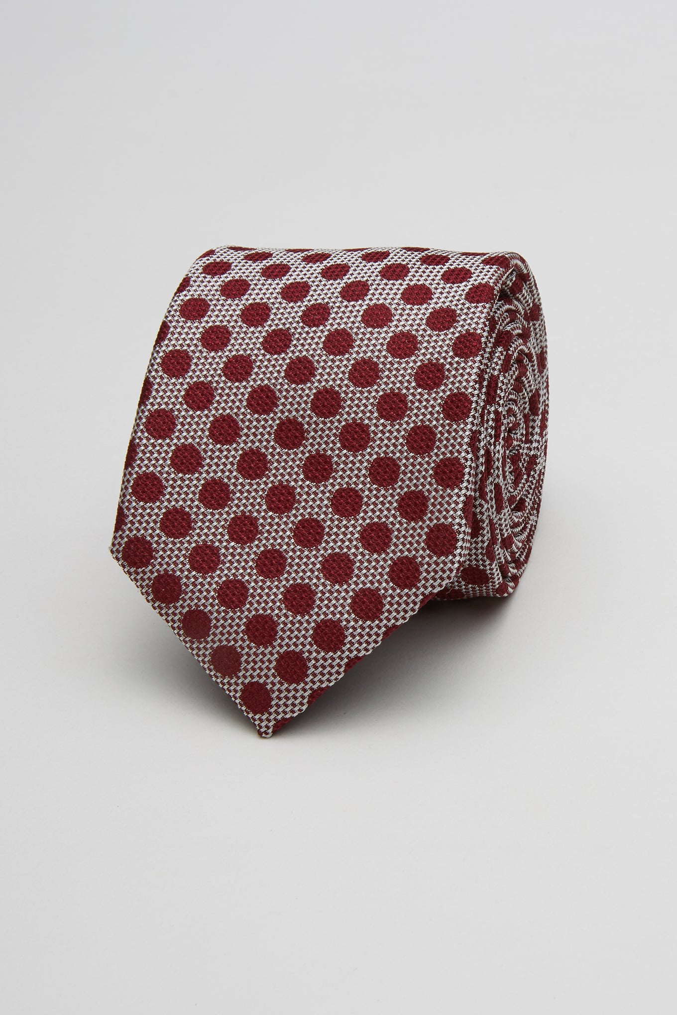 Men's micro print and small polka dot classic tie. Made of pure silk with handmade finish available at Sacoor Brothers' online store.