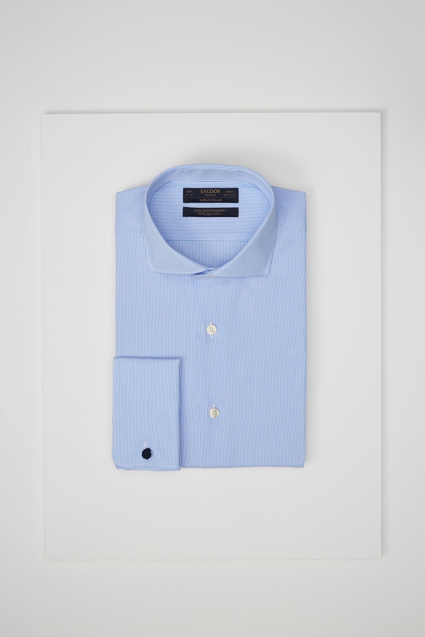 Men's one thousand stripes regular fit classic tie. Long sleeves and cuff buttons. Dublin collar with stays. Made of 100% cotton. Available at Sacoor Brothers' online store.