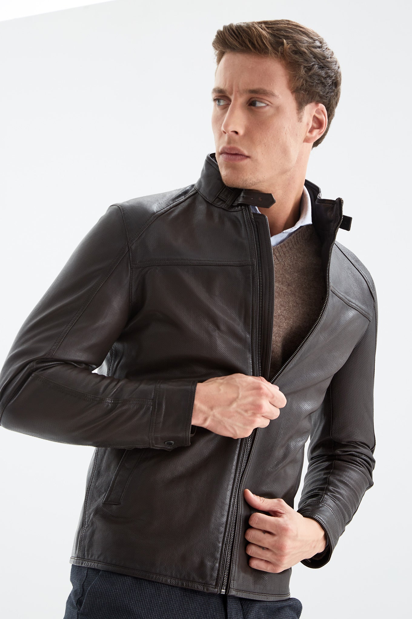 Men's Perforated Leather Jacket