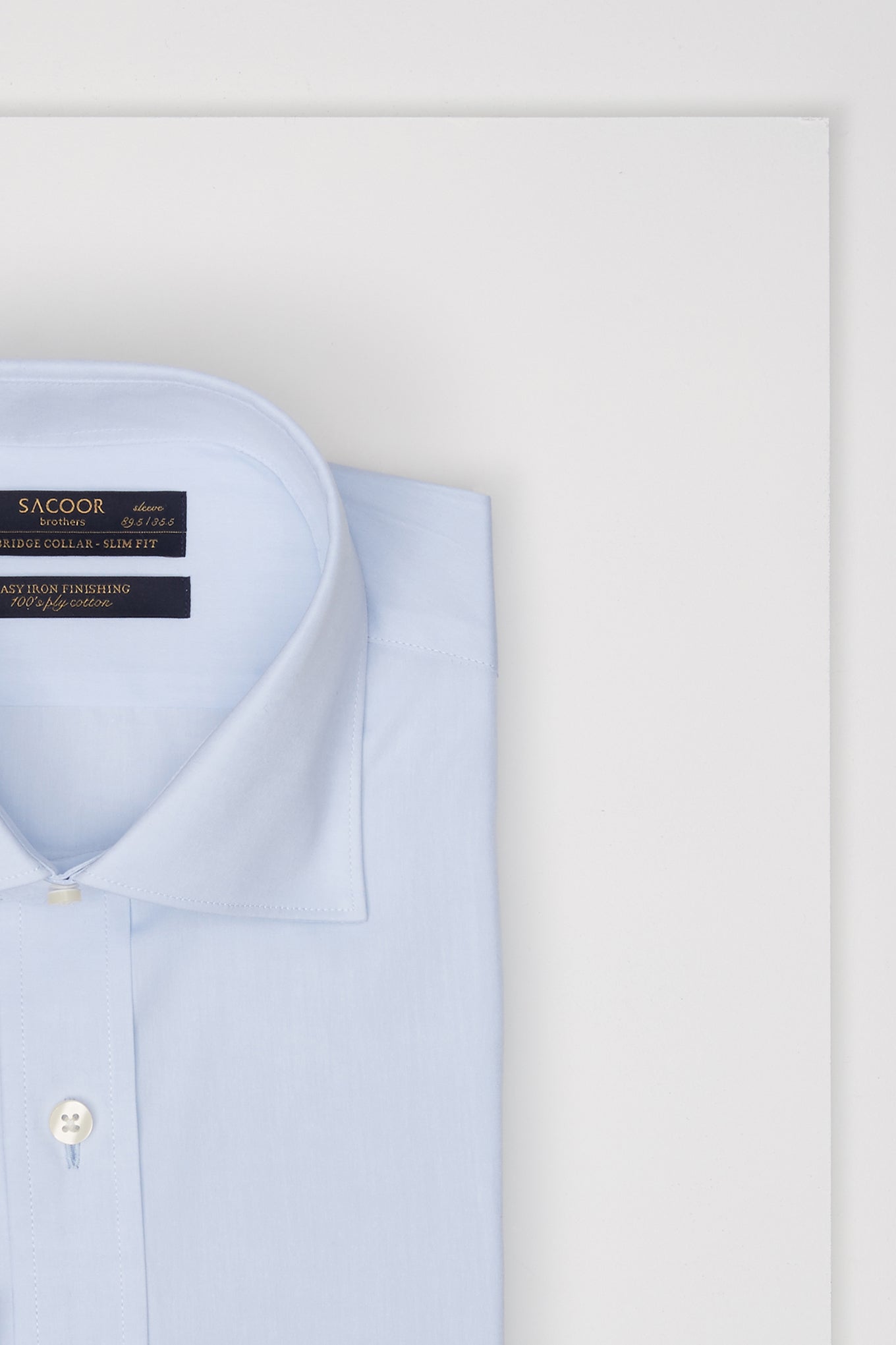 Men's plain slim fit classic shirt. Long sleeve shirt and cuff buttons. Features Cambridge collar with stays. Made of pure cotton of 100 quality. Easy to iron. Available at Sacoor Brothers' online store.