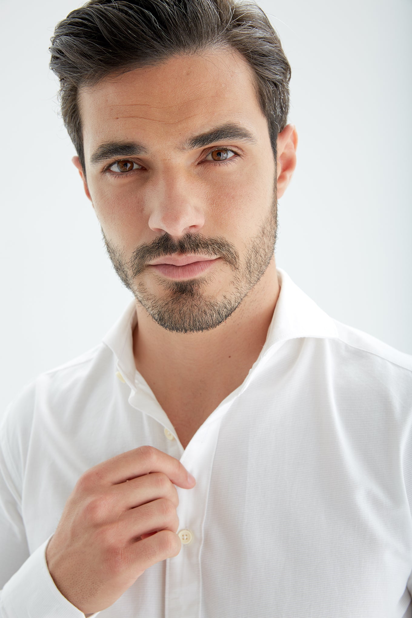 Men's plain slim fit shirt.Long sleeves with cuff buttons. Made of pure cotton. Available at Sacoor Brothers' online store.