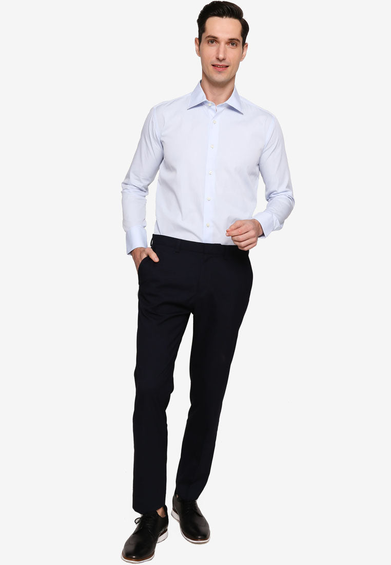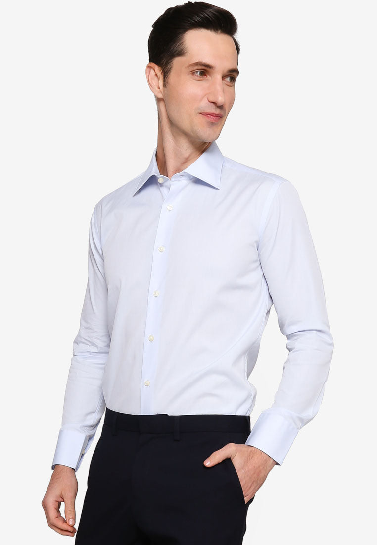 Men's plain slim fit classic shirt. Long sleeve shirt and cuff buttons. Oxford collar with stays. Made of pure cotton of 100 quality. Easy to iron. Available at Sacoor Brothers' online store.