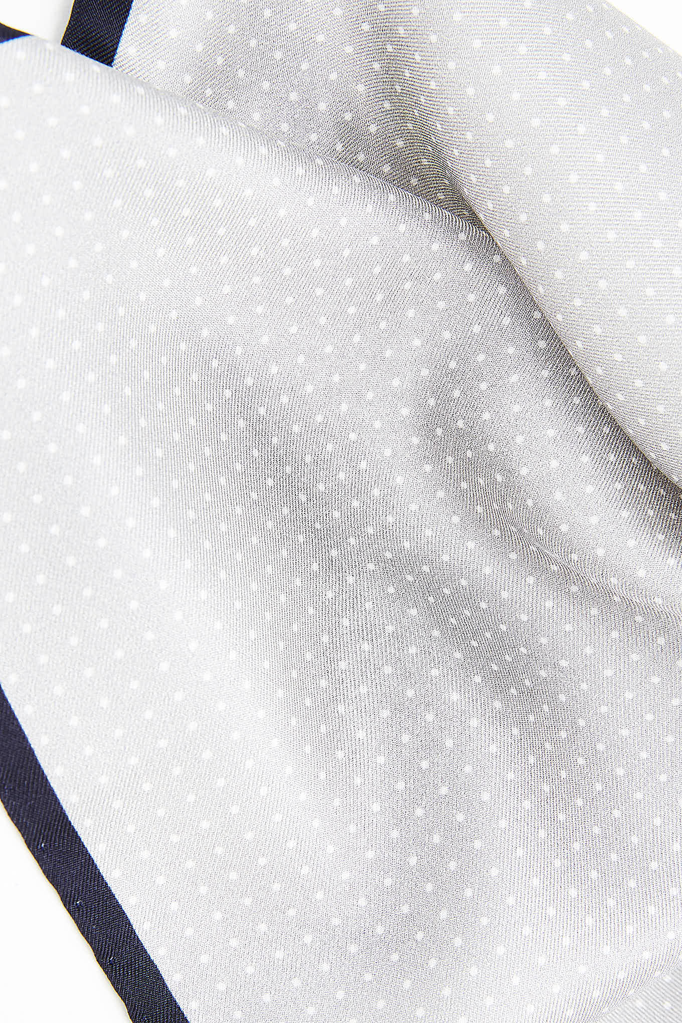 Classic men's handkerchief, smooth, with eye-catching contrast of dotted pattern and wider edge. Handkerchief made of pure silk, a superior quality material. Wear it with your suit or blazer and notice the difference! 31 cm x 31 cm approx.