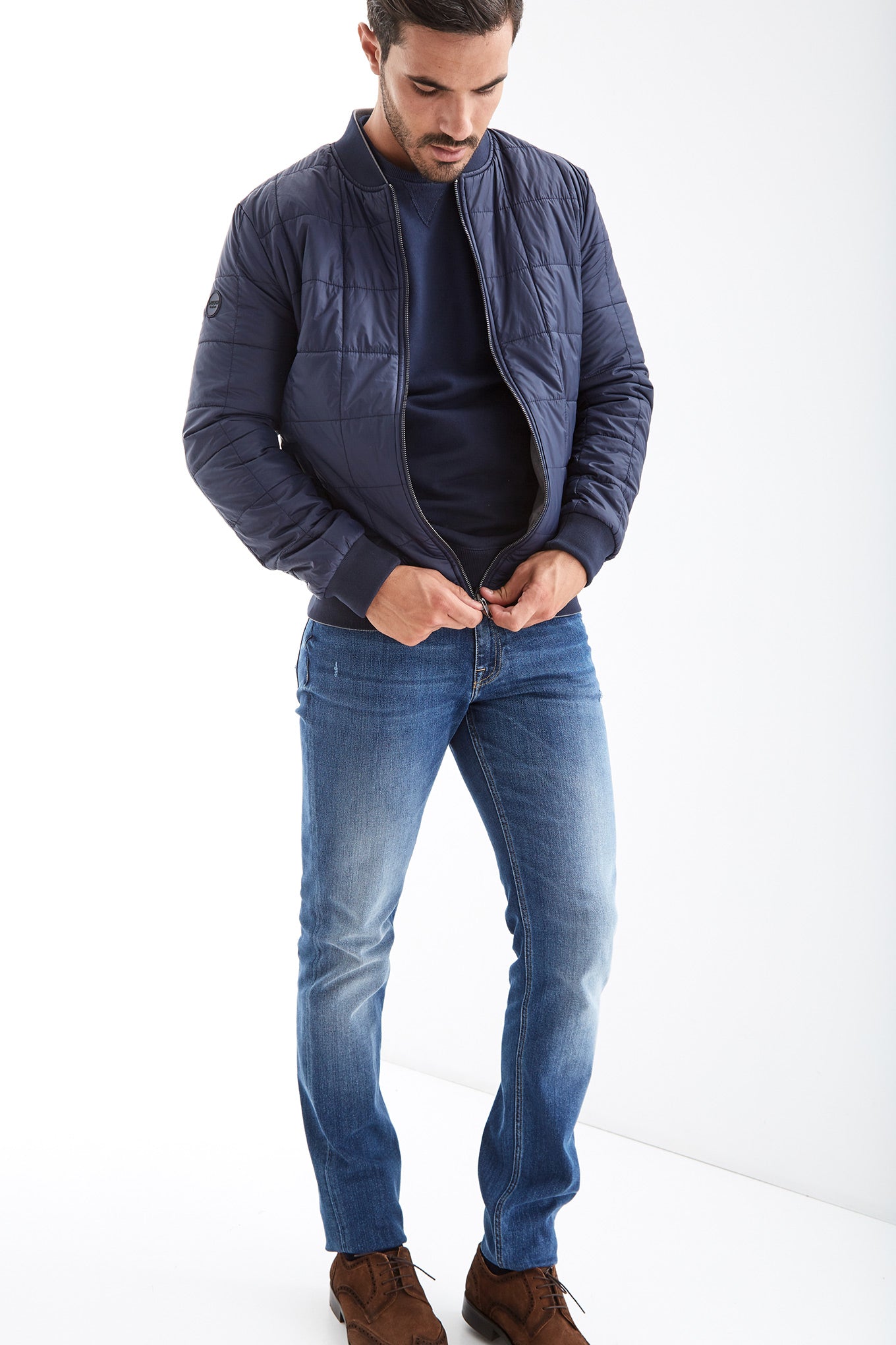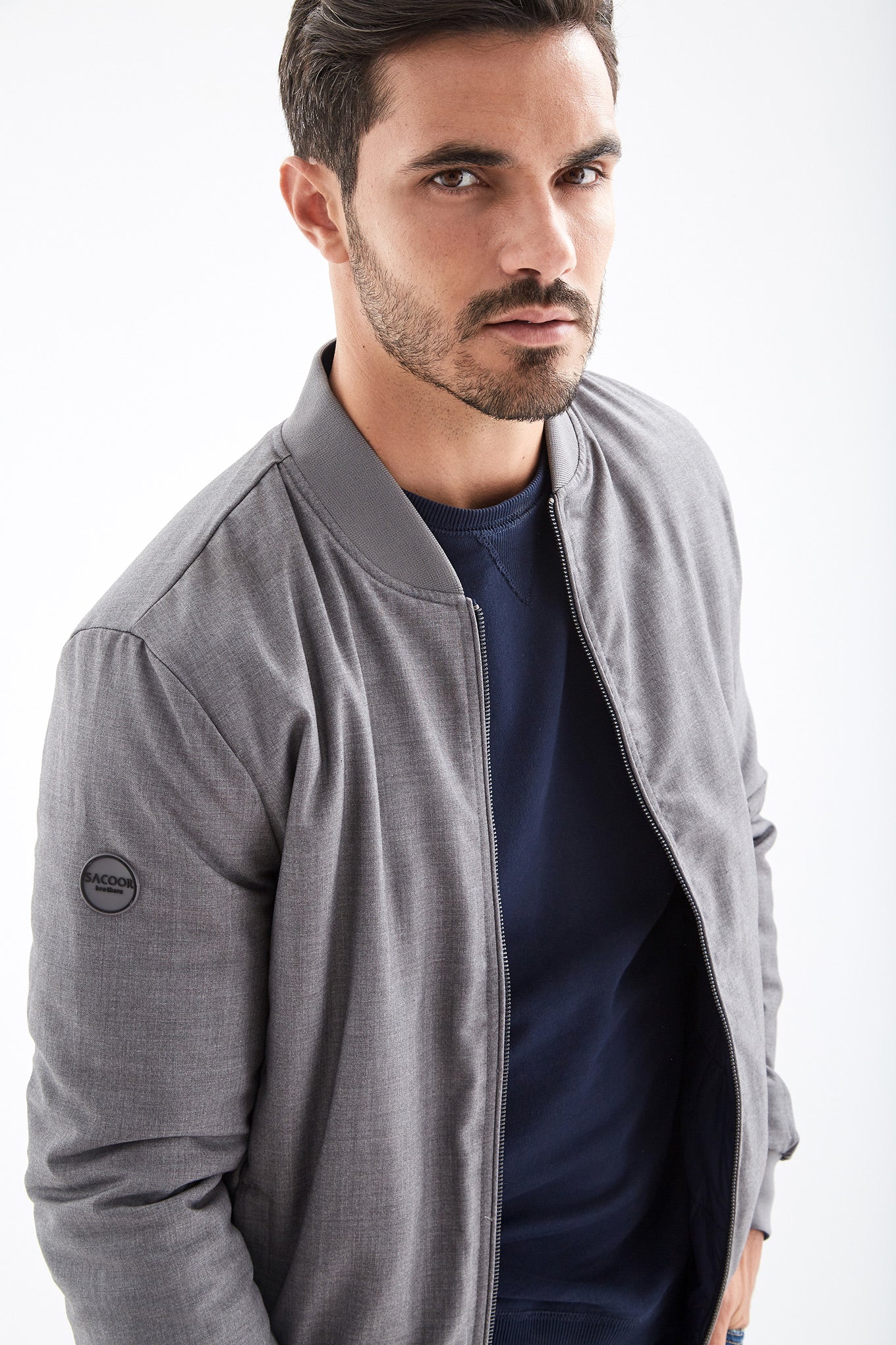 This is the key item in your wardrobe. This bomber-style men's jacket adapts to both the occasion and weather conditions. It's waterproof on one side and on classic twill on the other. Zipper closure, four pockets in total and elastic finishes.