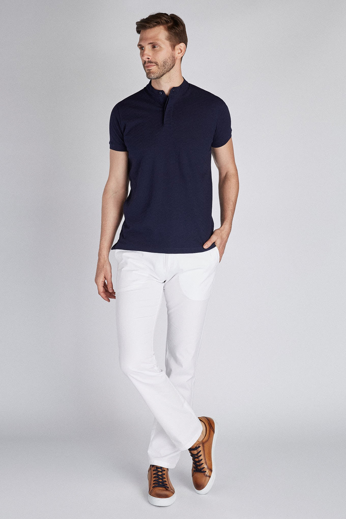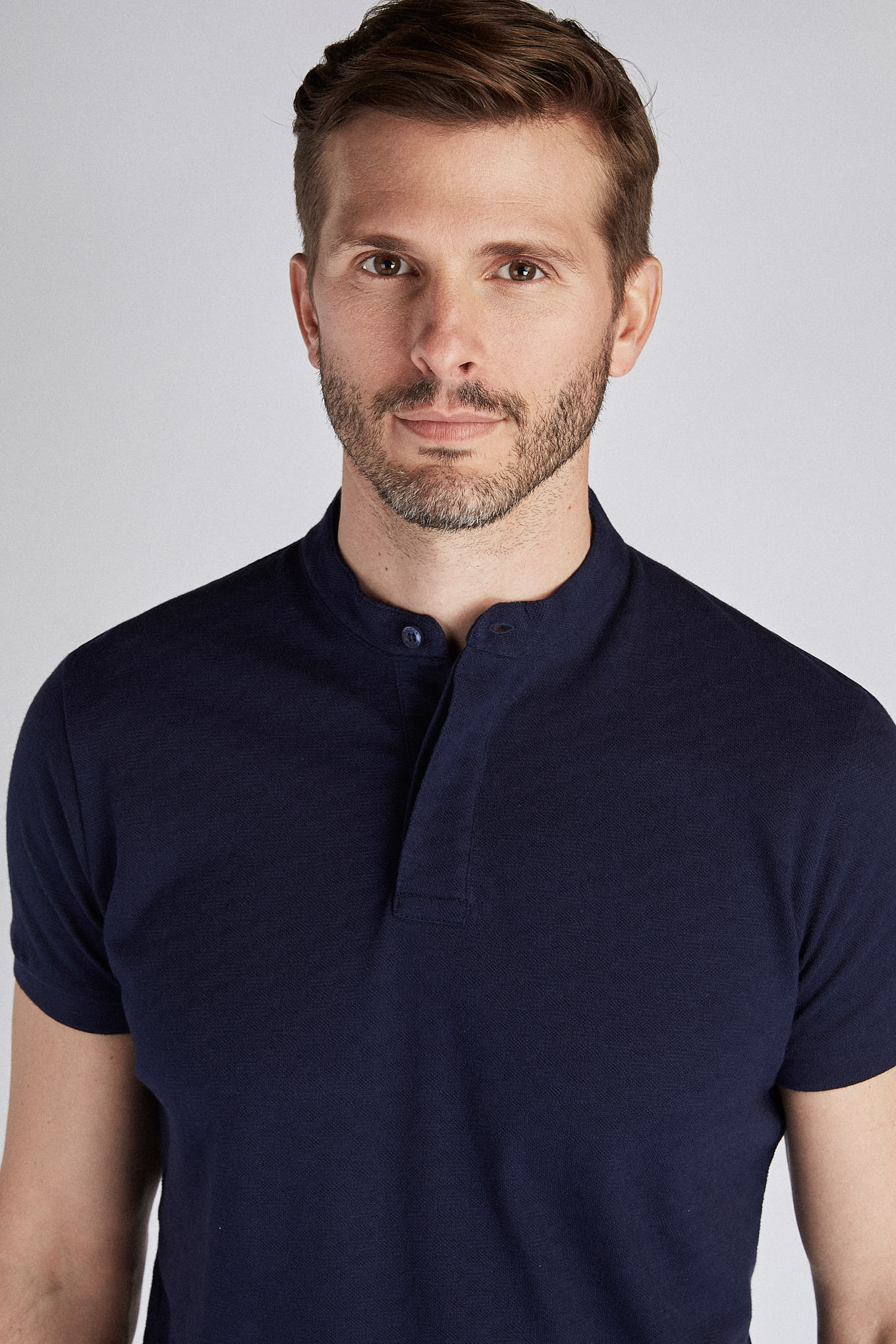 Men's piqué polo shirt in false plain, distinct style, always comfortable. Mandarin collar with 2 hidden buttons. Brand customisation on small hem label. Short sleeves with ribbed trims. Slight side vents. Elastane provides extra comfort and greater flexibility. Ideal for wearing with Sacoor jeans, chinos or Bermuda shorts.
