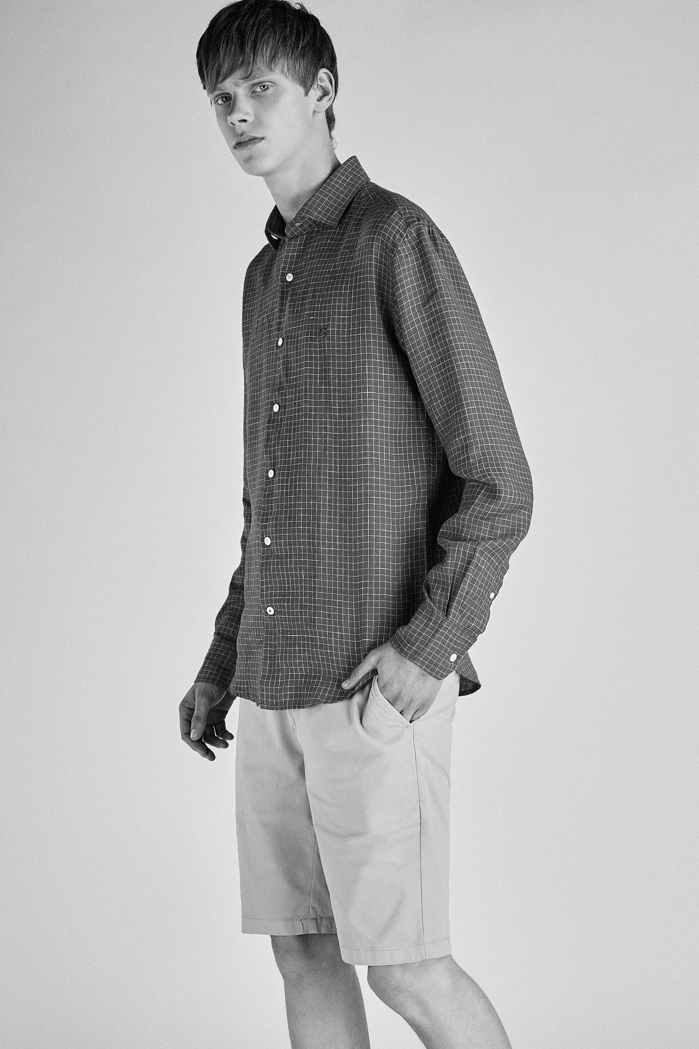 Men's Slim Fit Sport Shirt in Linen and Cotton