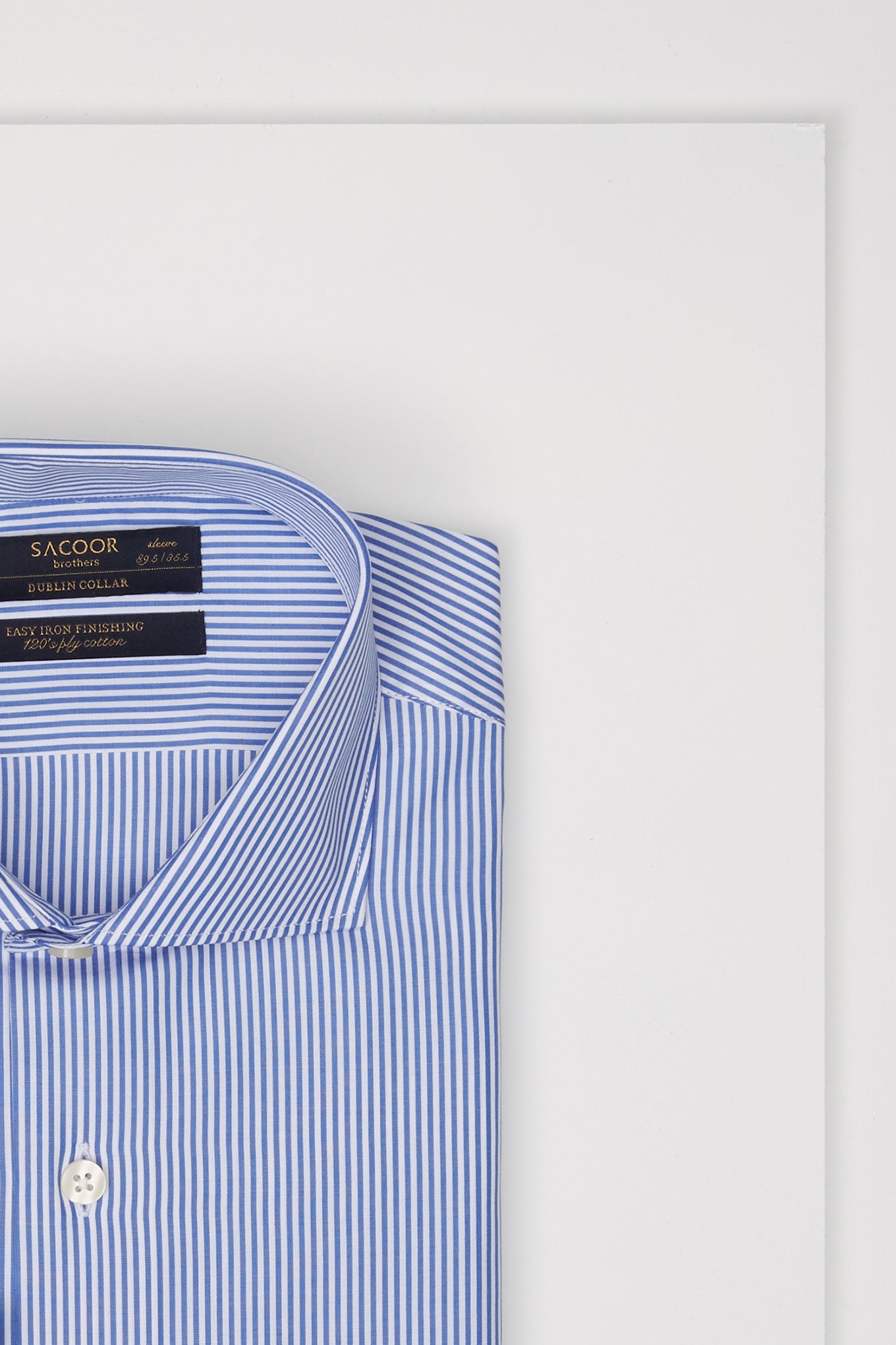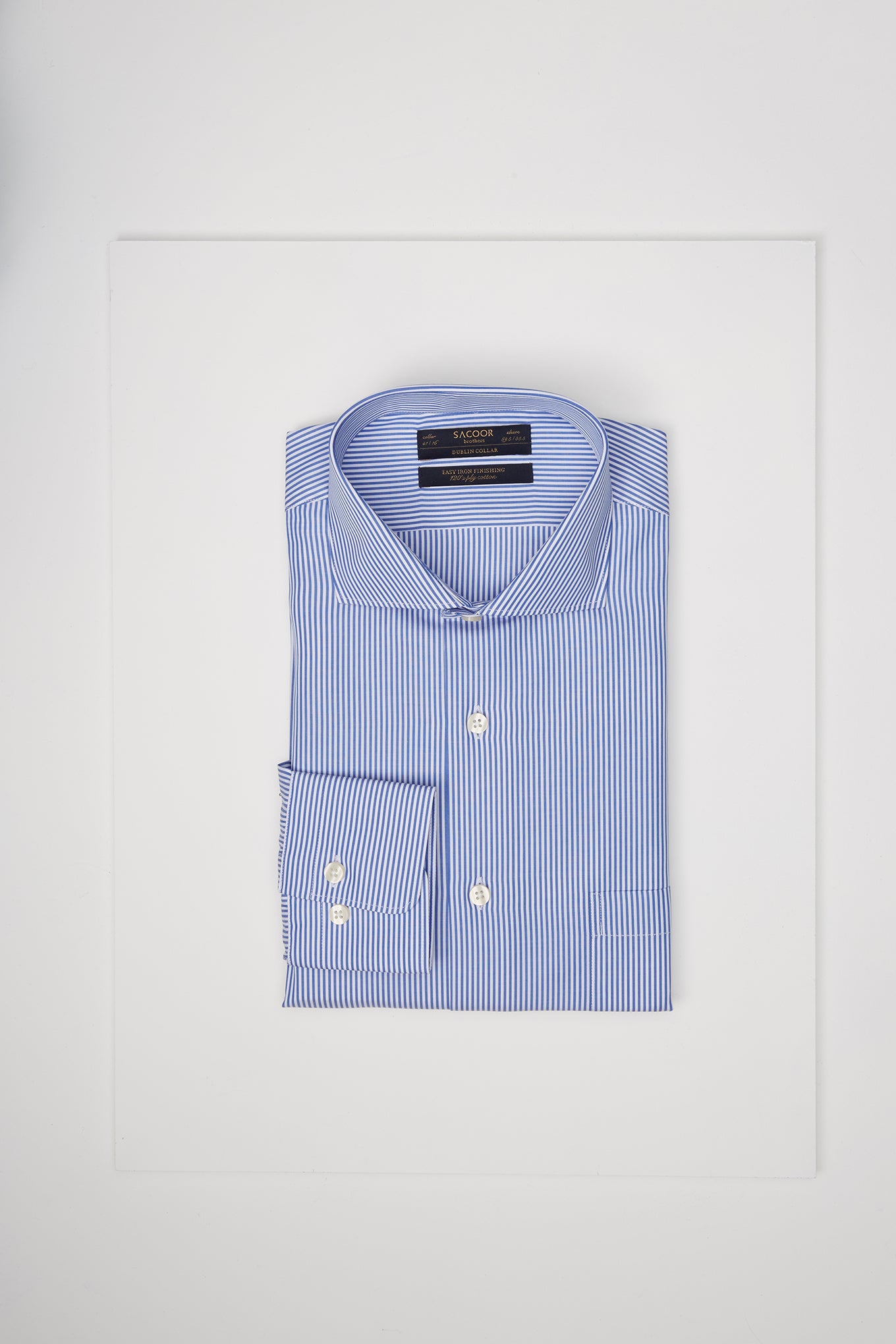 Men's striped regular fit classic shirt. Long sleeve shirt and cuff buttons. Dublin collar with stays. Made of pure cotton of 120 quality. Easy to iron. Available at Sacoor Brothers' online store.