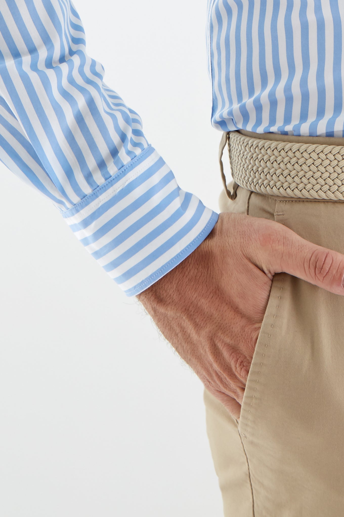 Pieces purchased at Sacoor Brothers benefit from a free in-store tailoring service. Just bring the item in, and our tailors will adjust the clothes to your body, ensuring a perfect fit. This way, you can enjoy clothing that is truly tailored to you.