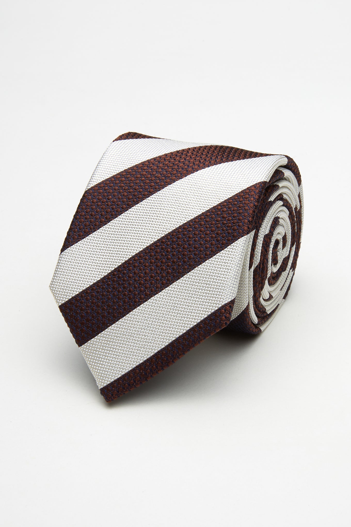 Men's striped classic tie. Made of pure silk with handmade finish available at Sacoor Brothers' online store.