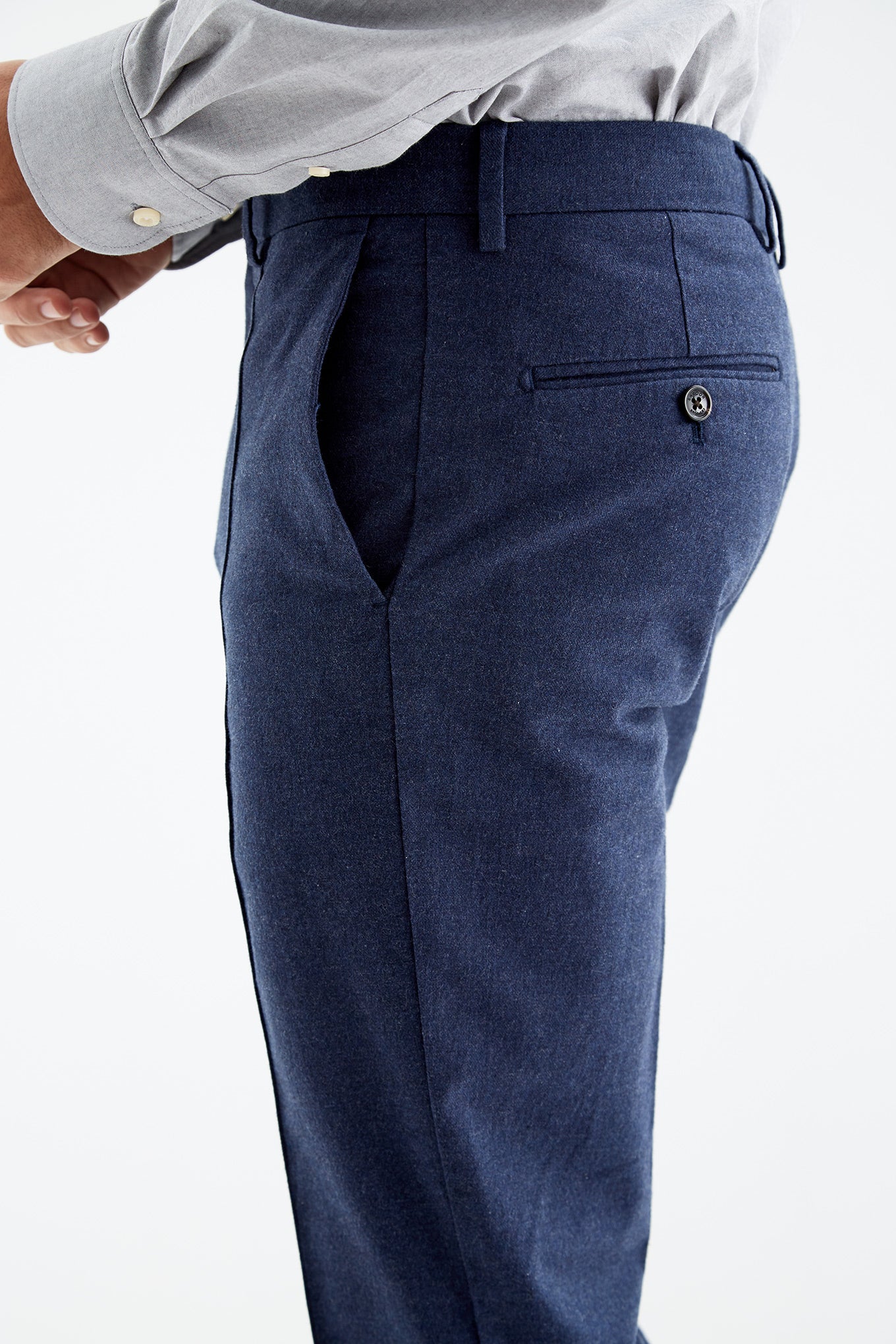 Perfect to elevate your style. Bet on this modern design even suited for a formal look. Made of cotton. Two side pockets and two back pockets.