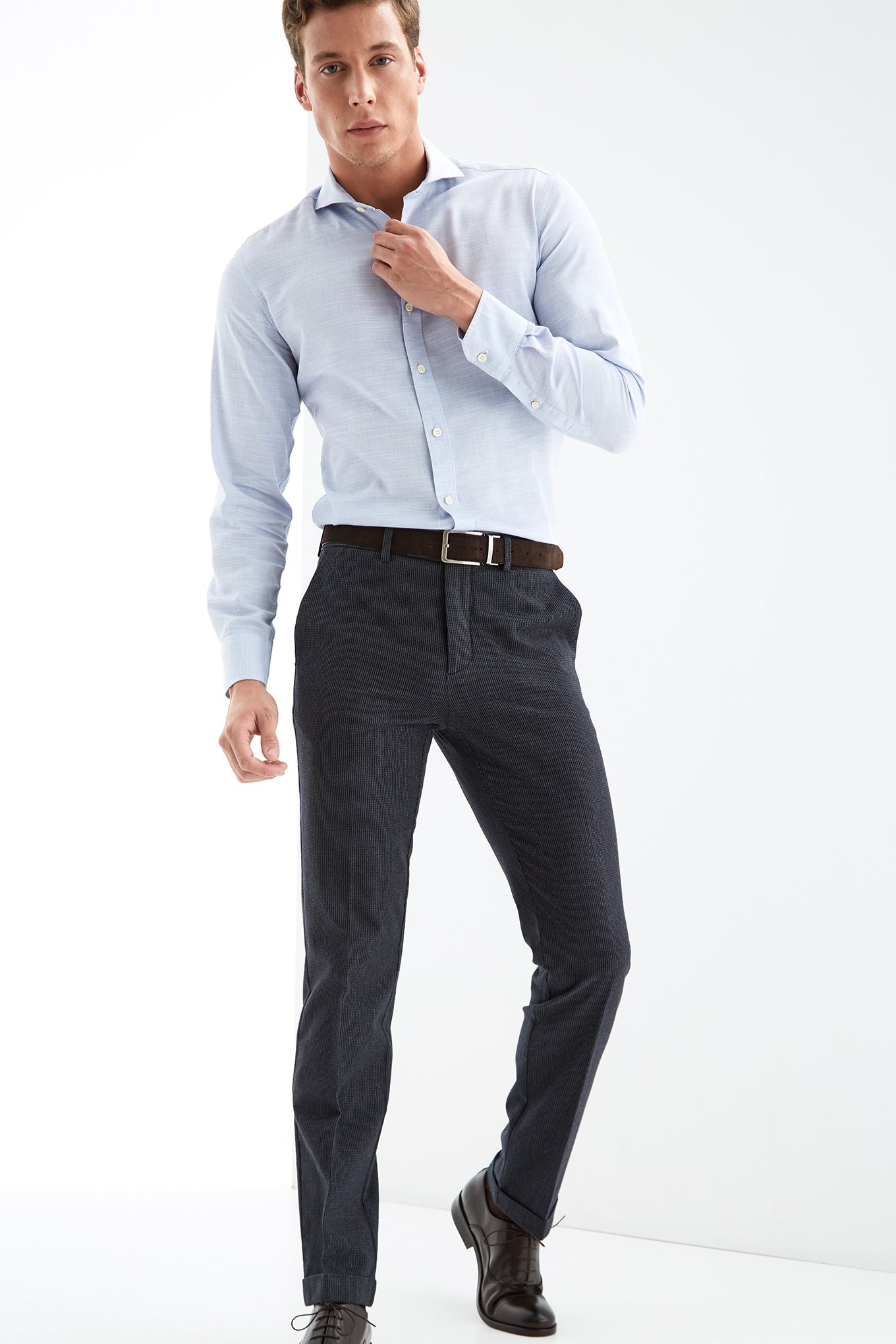 Pieces purchased at Sacoor Brothers benefit from a free in-store tailoring service. Just bring the item in, and our tailors will adjust the clothes to your body, ensuring a perfect fit. This way, you can enjoy clothing that is truly tailored to you.