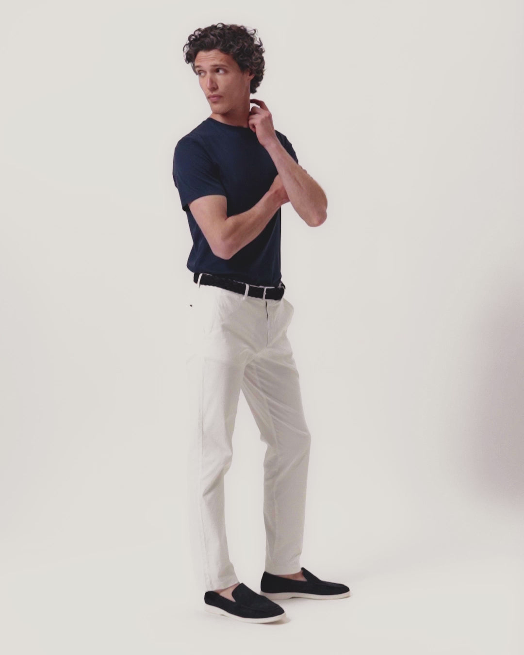 Premium t-shirt made with 100% Liquid Cotton with brand's label at side seam. Round neckline and short sleeves with double-needle hem. Liquid cotton is a premium fabric known for its soft, silky feel and durability. Made from long-staple cotton, it offers the comfort of cotton with a smooth texture similar to silk. Resistant to pilling and shrinkage, it’s ideal for high-quality garments that maintain their look and feel over time.