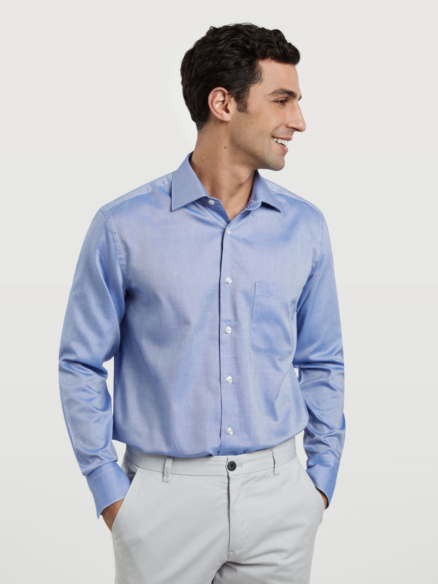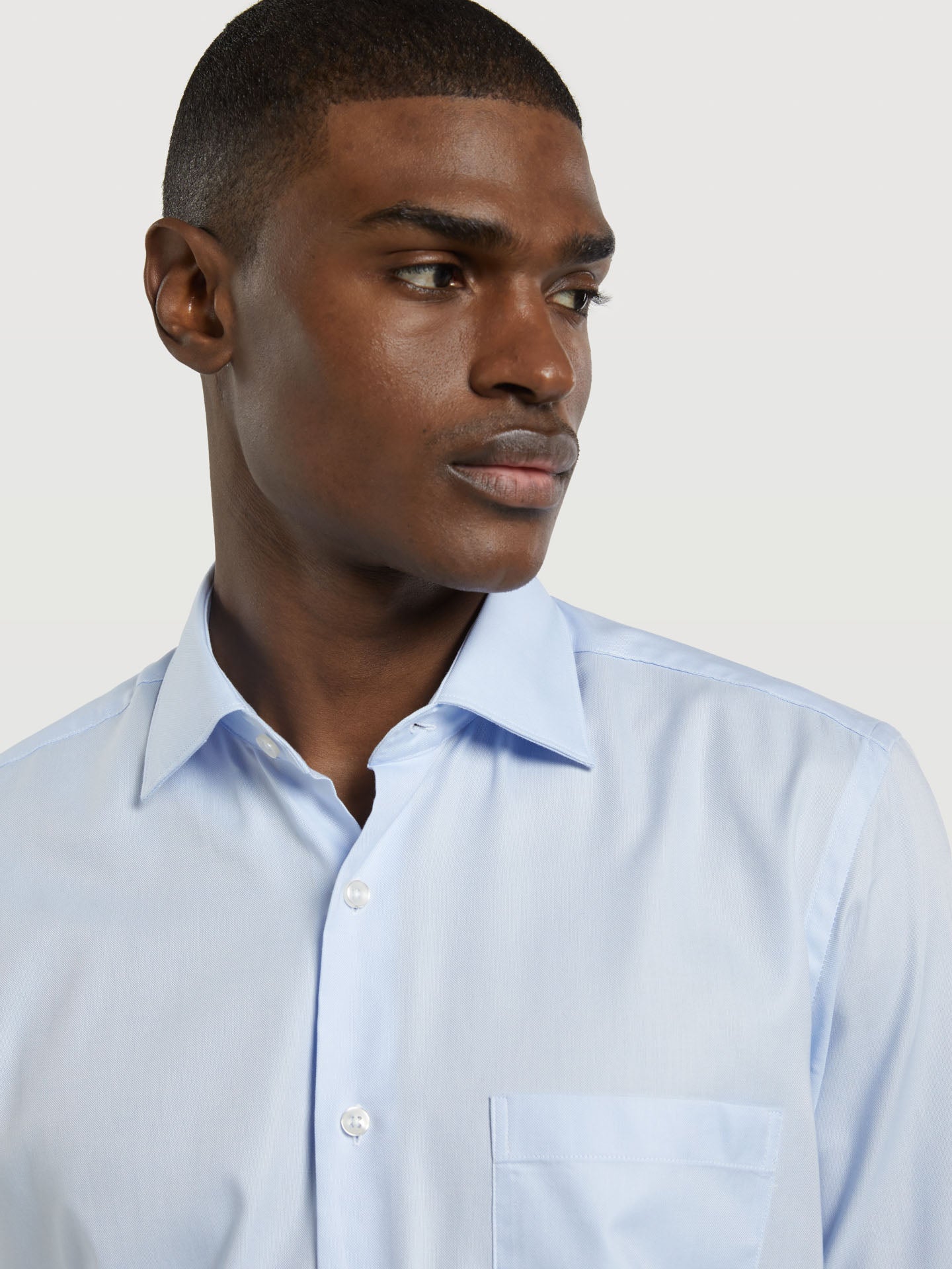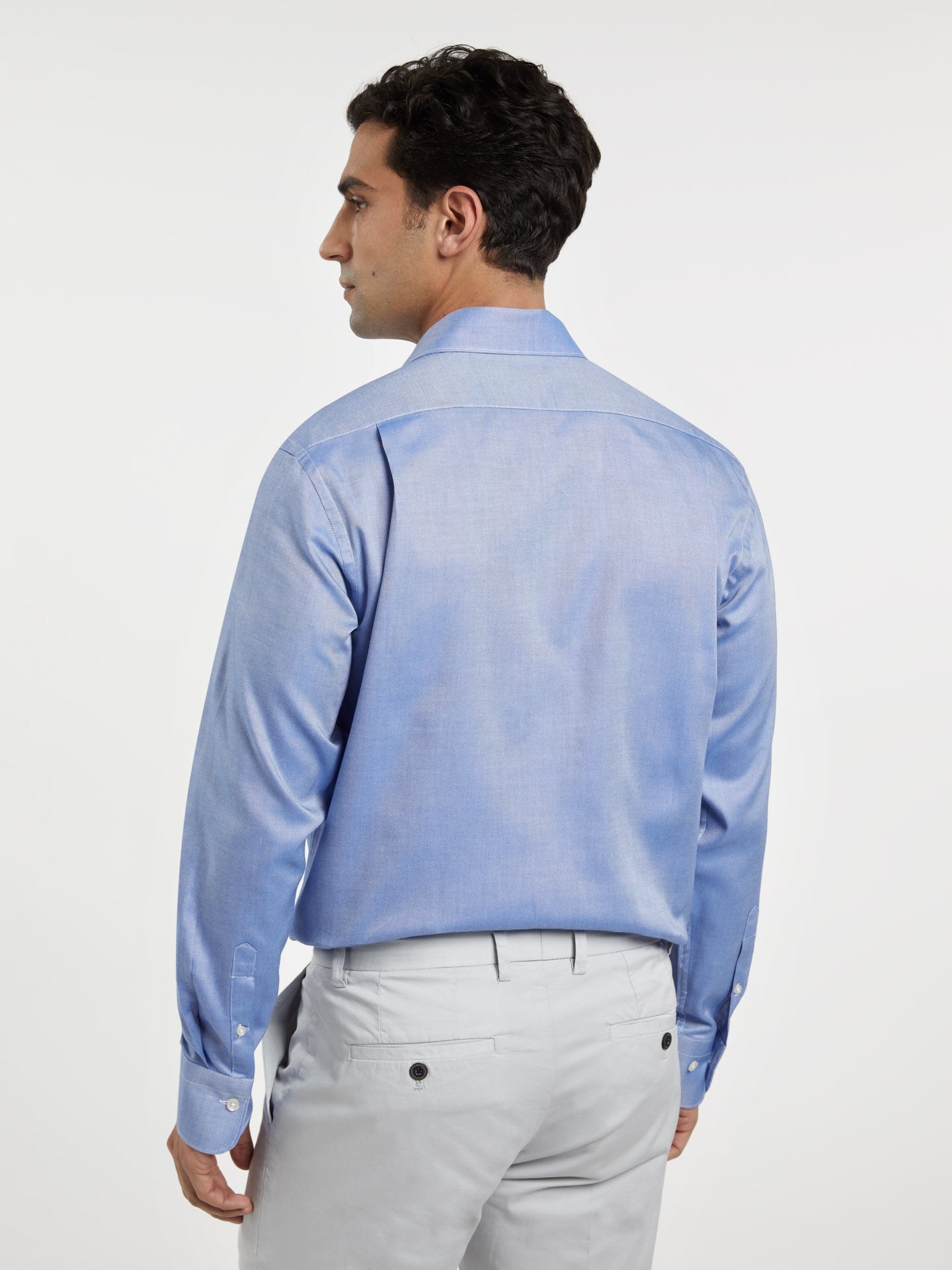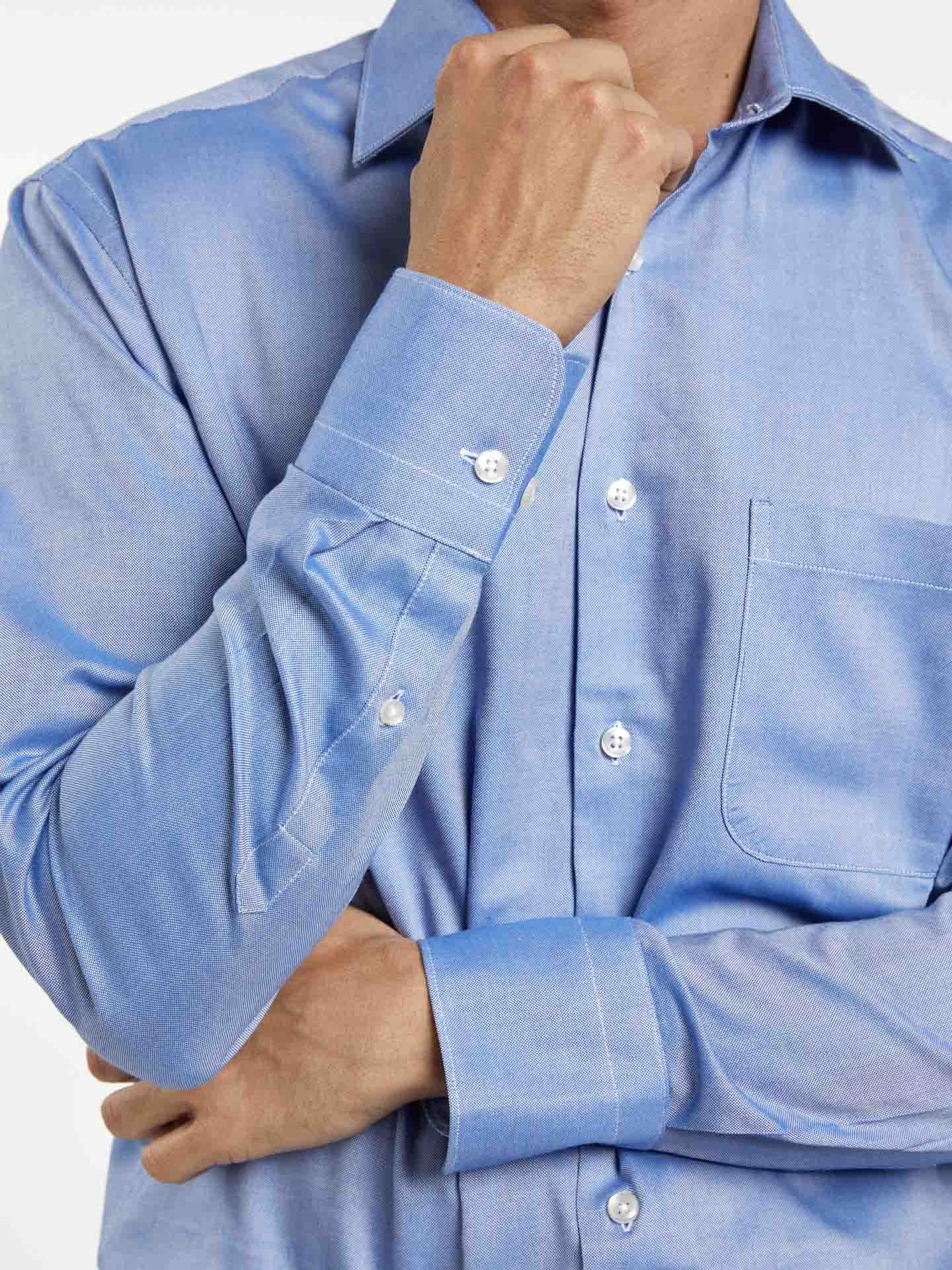 ICON Business line shirt in plain oxford. Fabric made of 100% cotton. Featuring slim fit, Oxford collar and front button-up fastening. Long sleeves with single cuffs with 2 buttons. Side gussets in self fabric. Thanks to impeccable workmanship, the finest materials, taste, and passion, our business shirt is perfect for any formal occasion, where the most important thing is to look clean-cut, elegant, and understated. Business line is a selection of timeless classics, garments crafted from pure and premium materials. It’s the heart and the art of tailoring with impeccable attention to detail. The final result is a garment that fits your needs, it’s the expression of the Sacoor Brothers tailoring excellence.