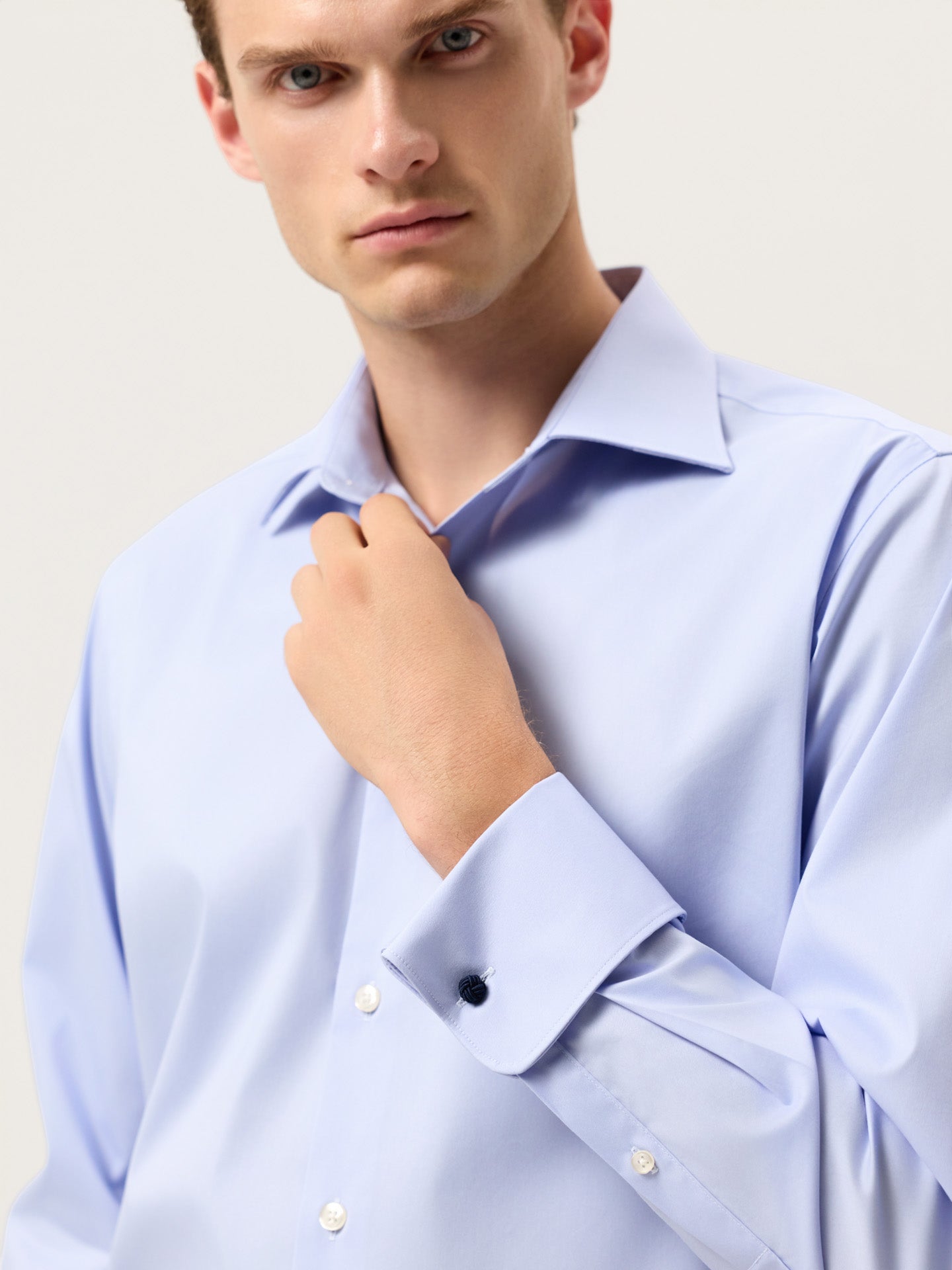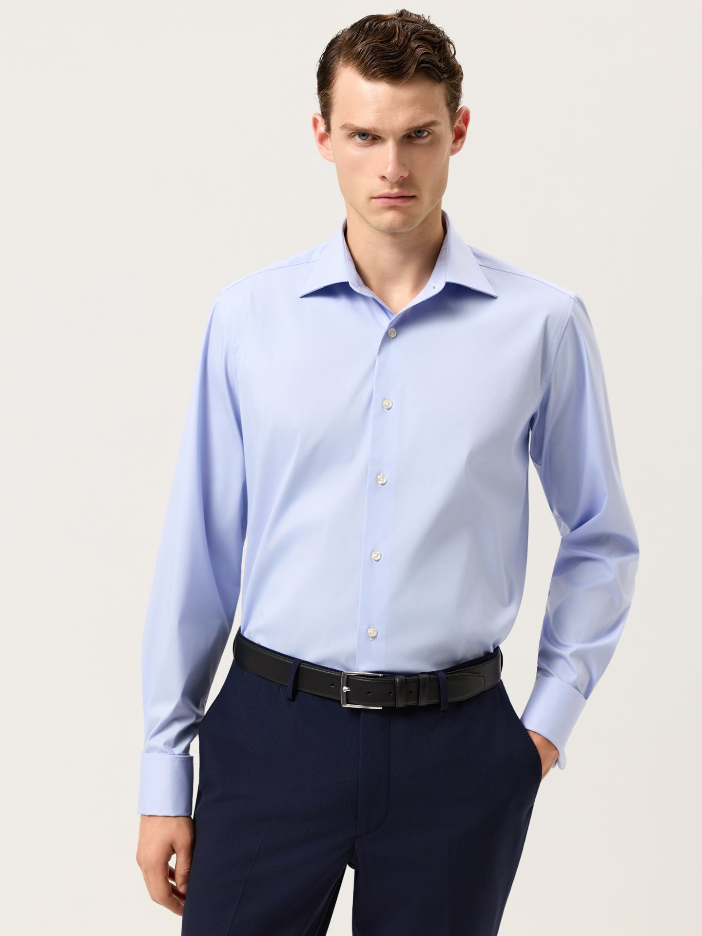 Regular Fit Cotton Stretch Travel Shirt With Oxford Collar And Double Cuff
