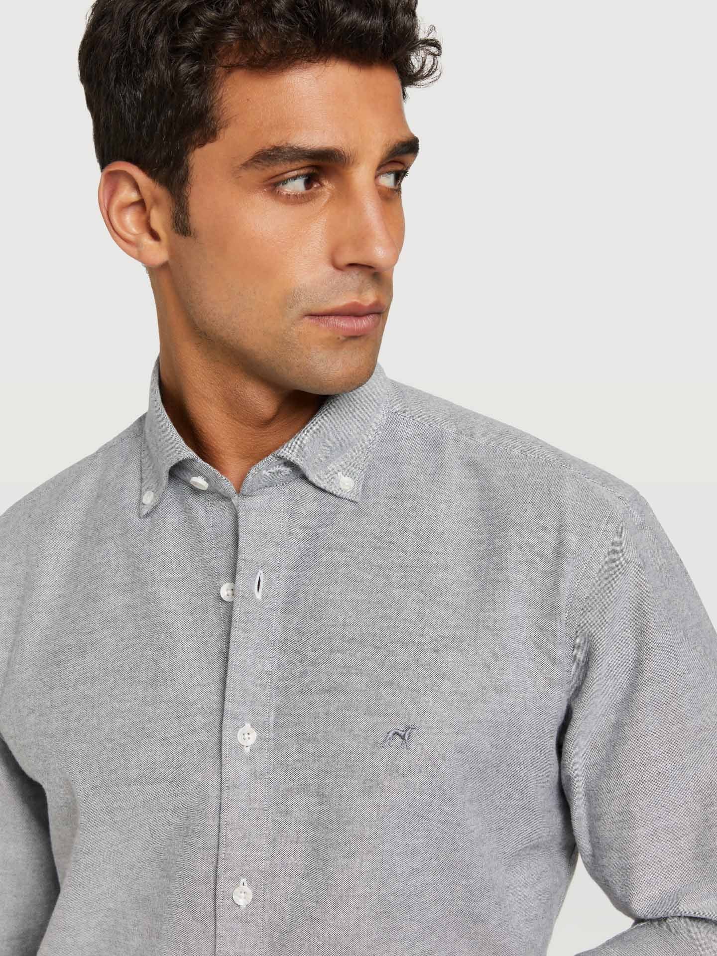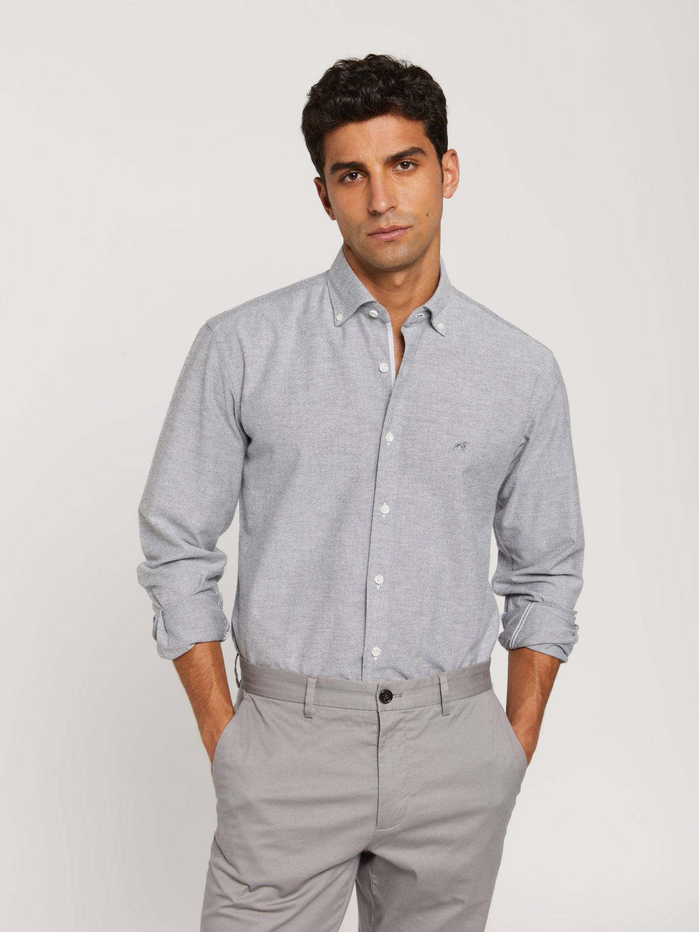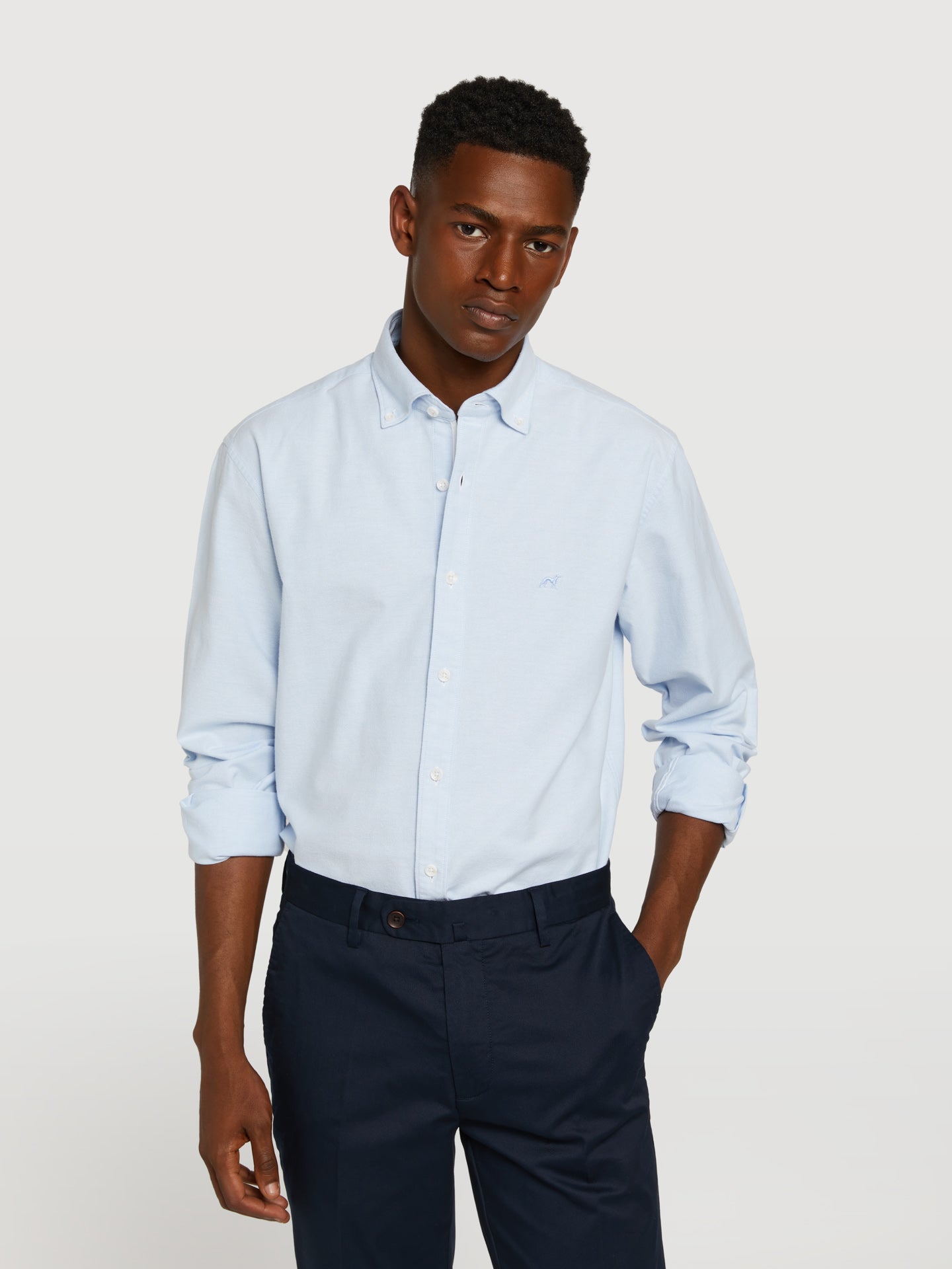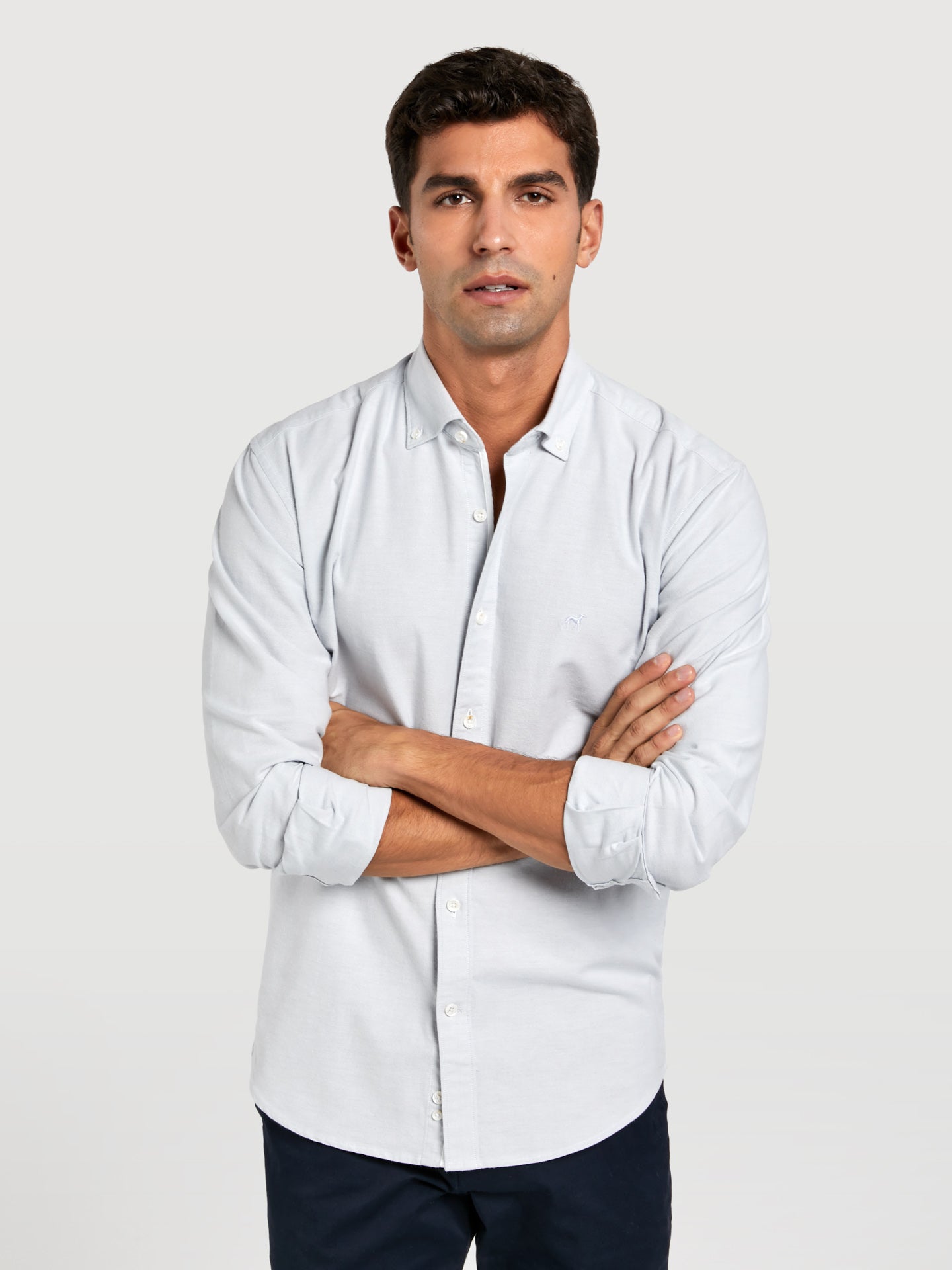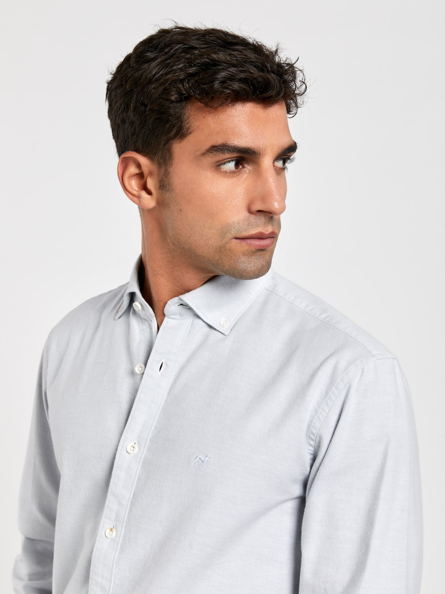 ICON Sport shirt in comfort oxford quality. Fabric made of blended cotton and spandex. Featuring a slim fit, button-down collar and front button-up fastening. Long sleeves with single cuffs with 2 buttons. Chest logo embroidery matching fabric. Shirt with some contrast details like inside collar piping and side gussets. Embroidered 'S' on sleeve placket as a special detail.