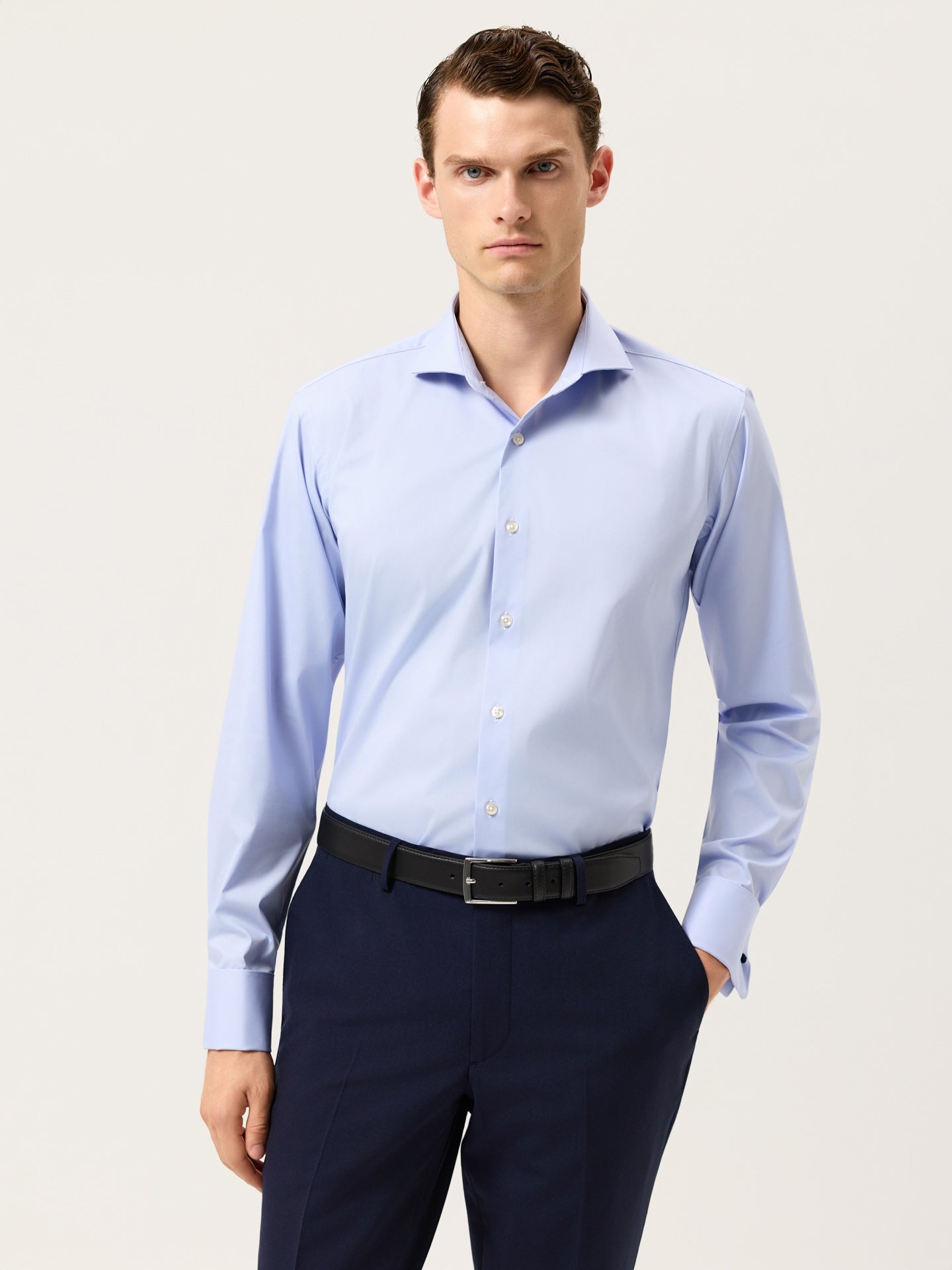 Slim Fit Cotton Stretch Travel Shirt With Dublin Collar And Double Cuff