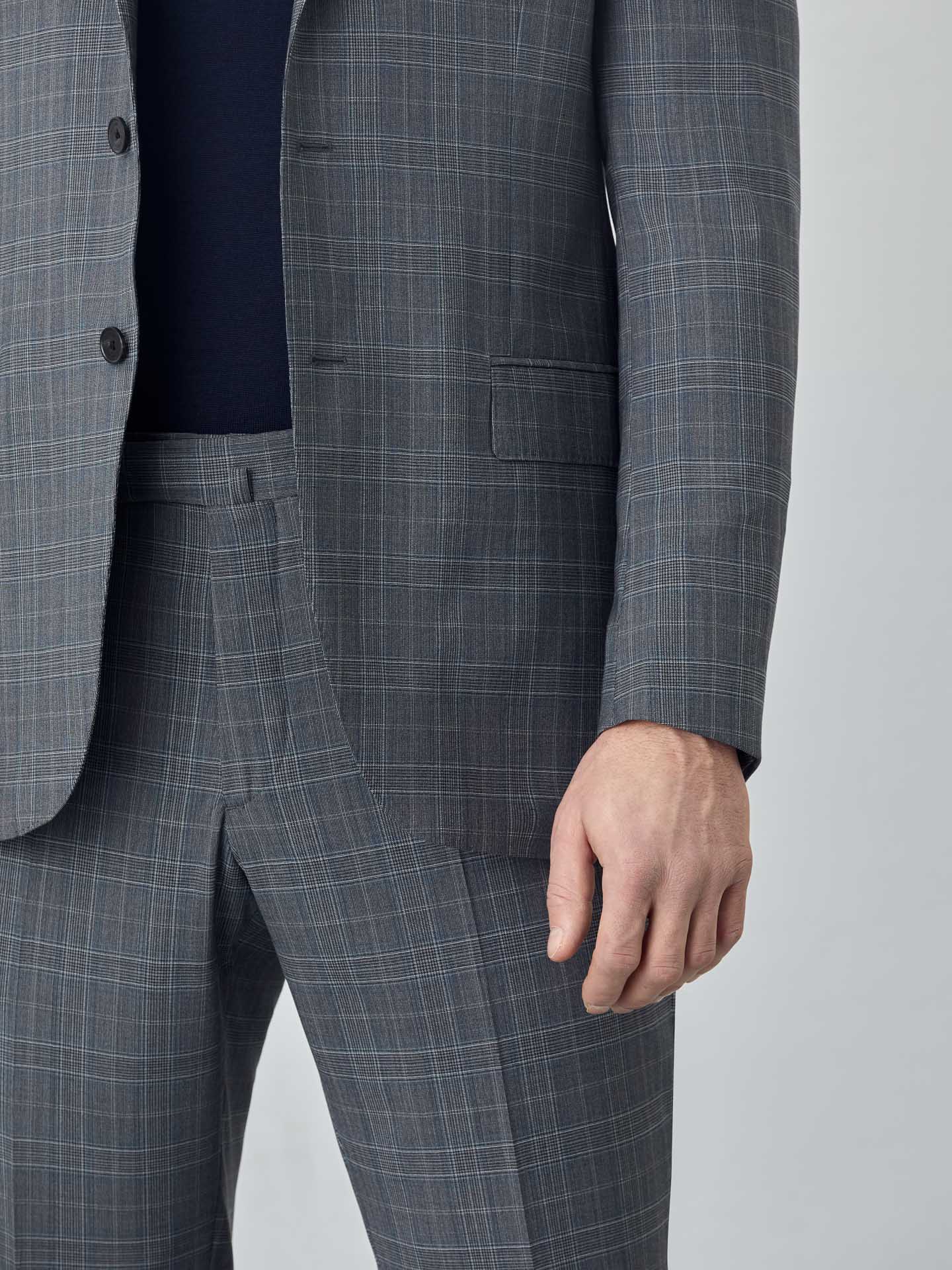 K-Moving checks suit from Prestige and K-Easy line expertly tailored from Super Fine Wool. Suit made with Loro Piana italian fabric, the Moving series from Loro Piana are luxurious stretch fabrics that are great for busy days on the move, and offers superior comfort and mobility. This Special Edition slim fit formal two-piece suit has flawless details and full lining. Two-button blazer with notch lapels and welt pockets with flap, four-button cuffed, two back slits, front and special interior pockets with zip. Trousers with zip fly, button and hook extended waistband fastening, two side pockets with coin pocket, two back welt pockets and belt loops. All suits have regular fitting measures from sizes 56 to 62. Transform a timeless suit into a bold, contemporary statement. K-easy line is a selection of garments made of technical fibers for limitless performance, and most of all, without losing its signature sharp look, whatever you do, wherever you go. This selection includes a wide range of advanced features as bi-stretch, quick-dry, easy-iron, thermoregulator, breathable or water-repellent fabrics.