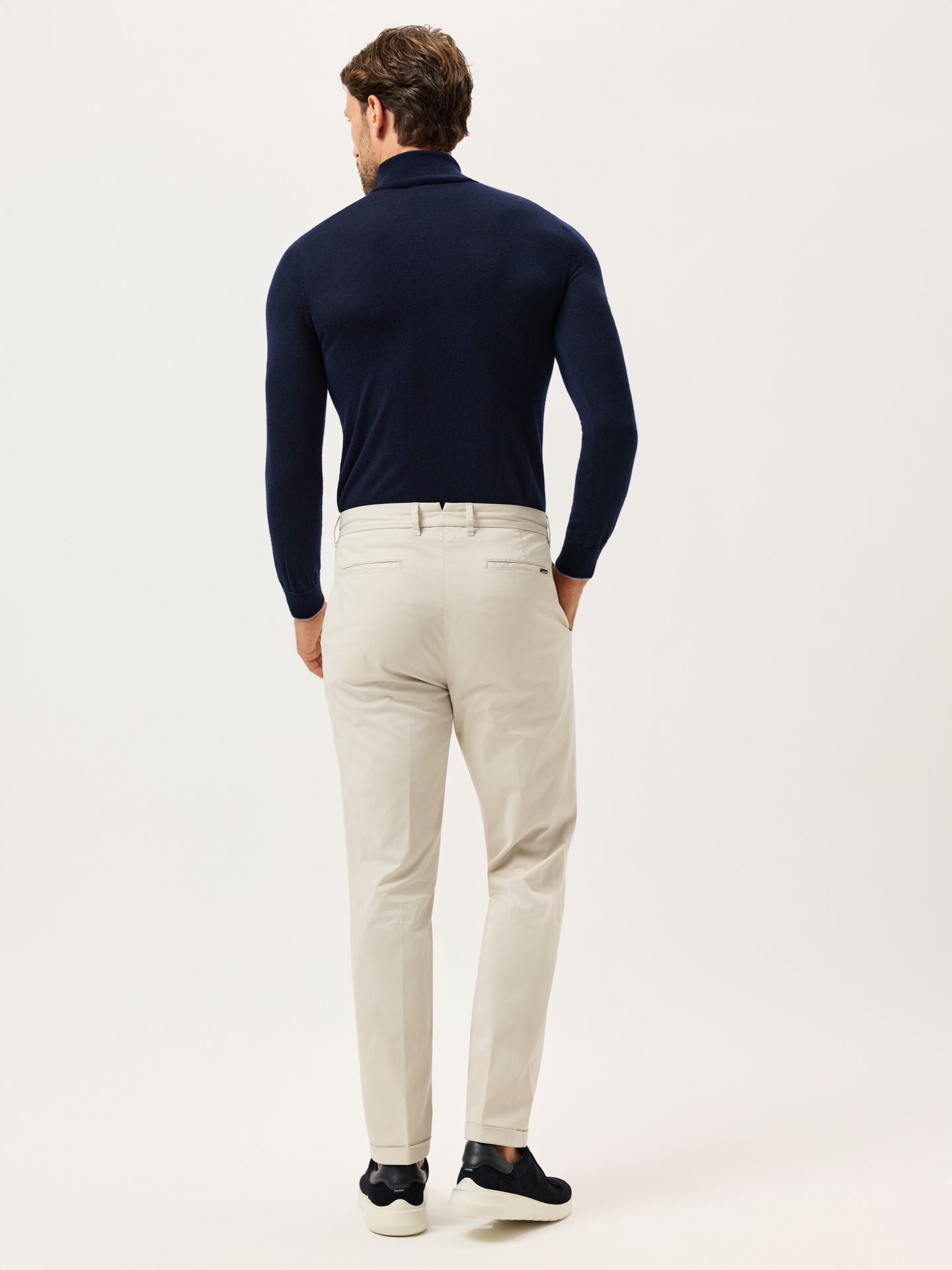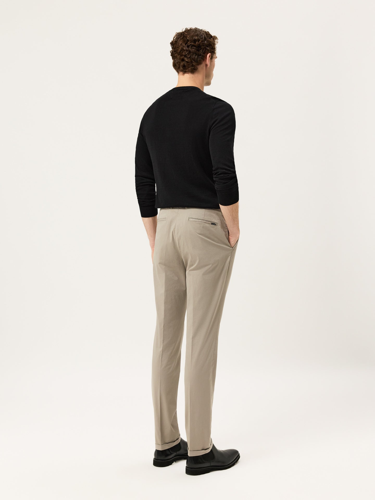 Slim Fit Light Twill Chino With Front Pleat And Garment Dye Finish