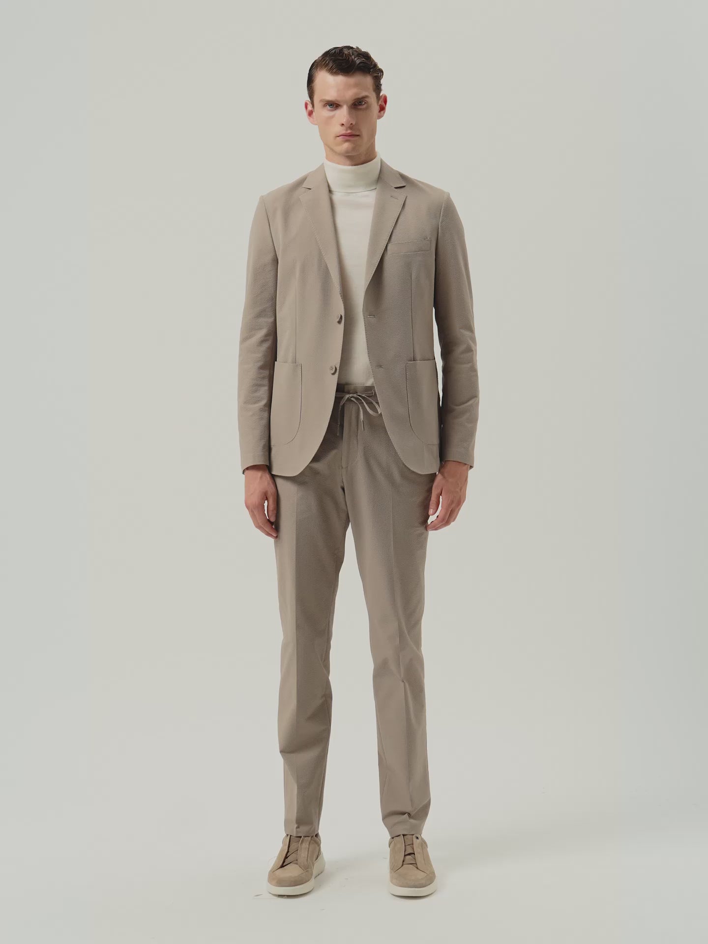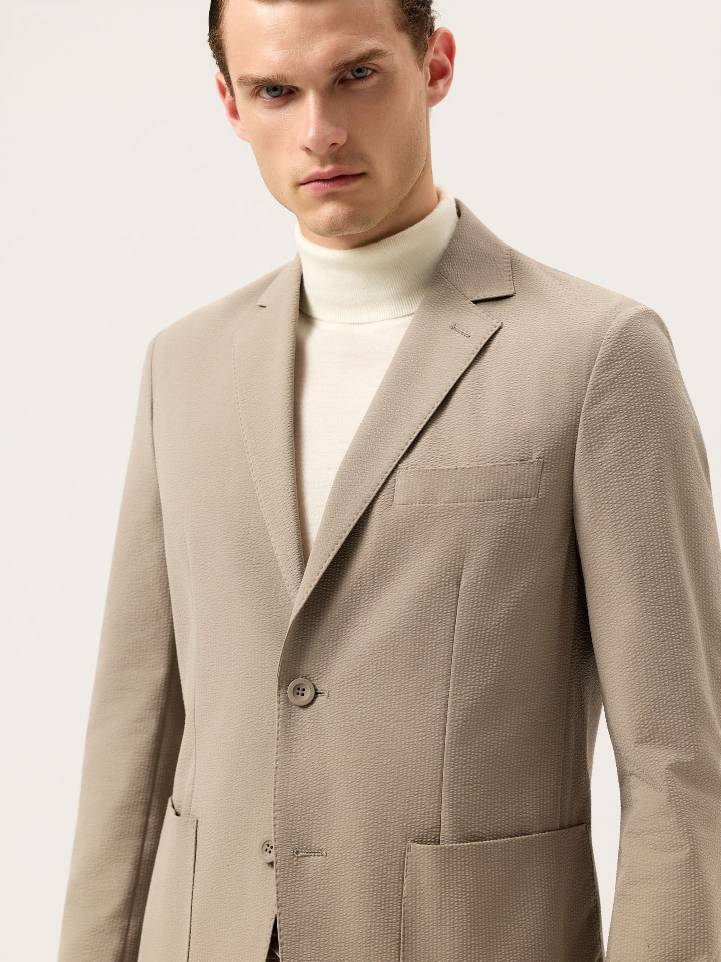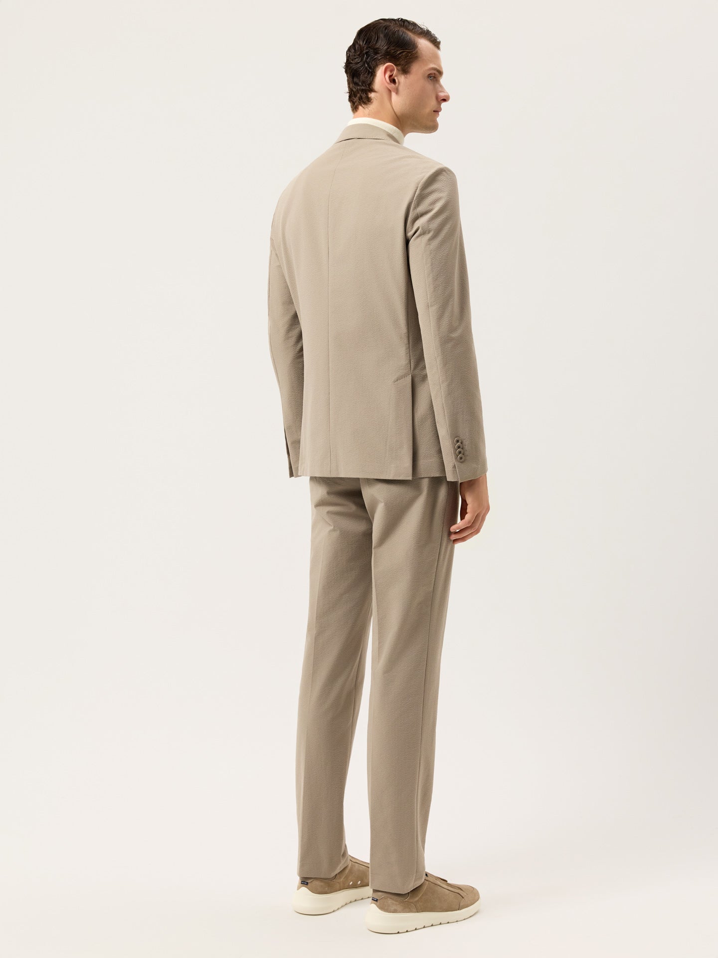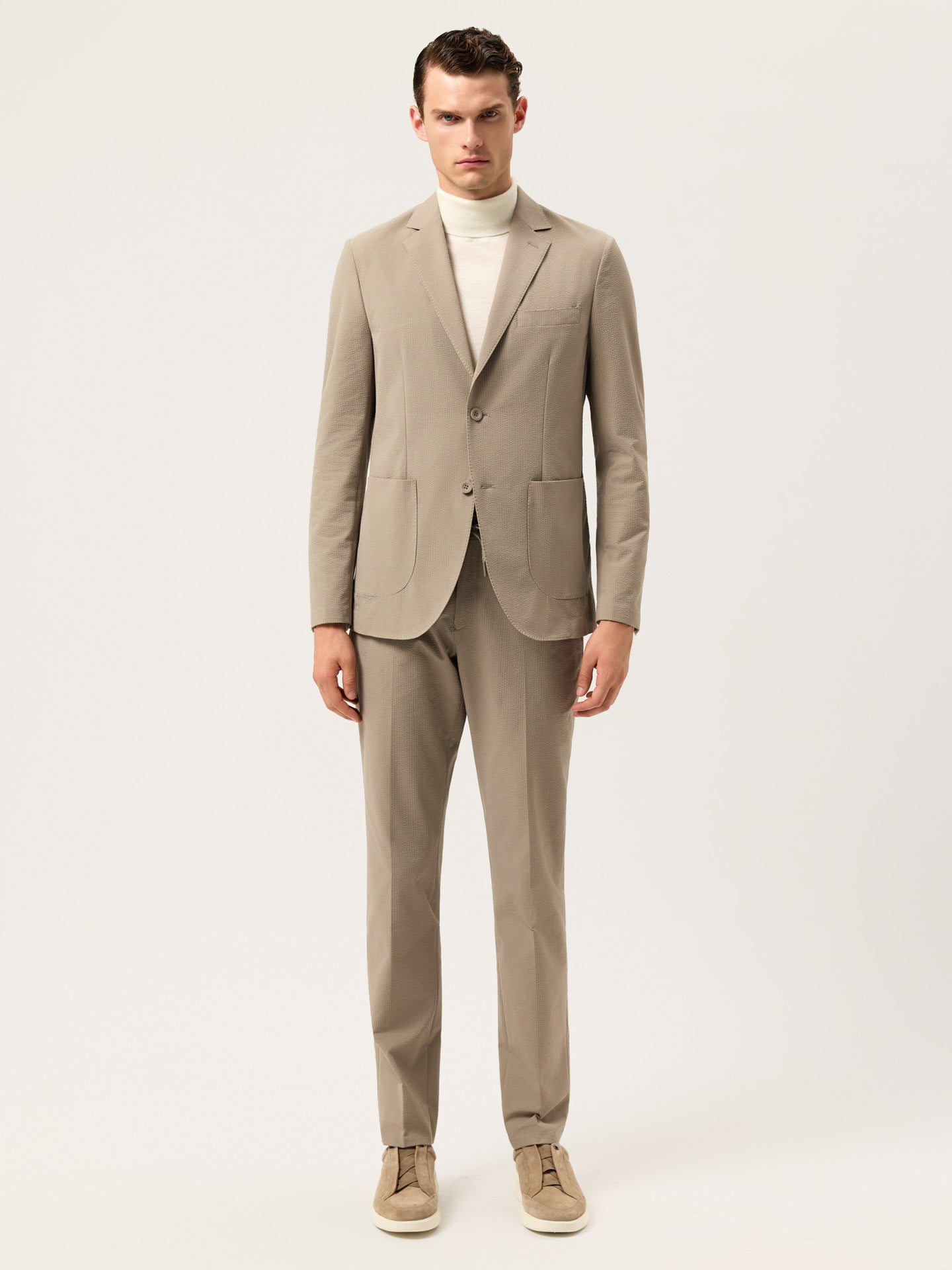 Slim Fit Seersucker Travel Suit In Washable Fabric