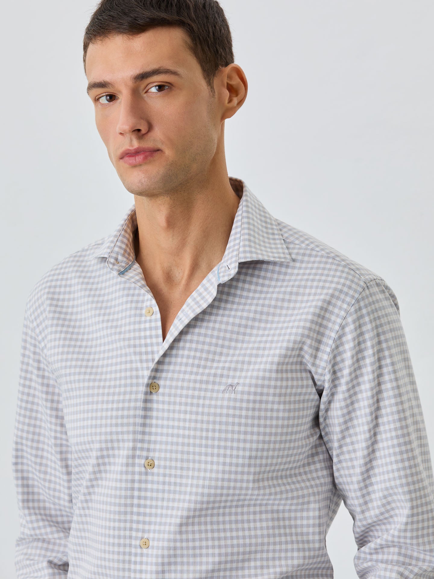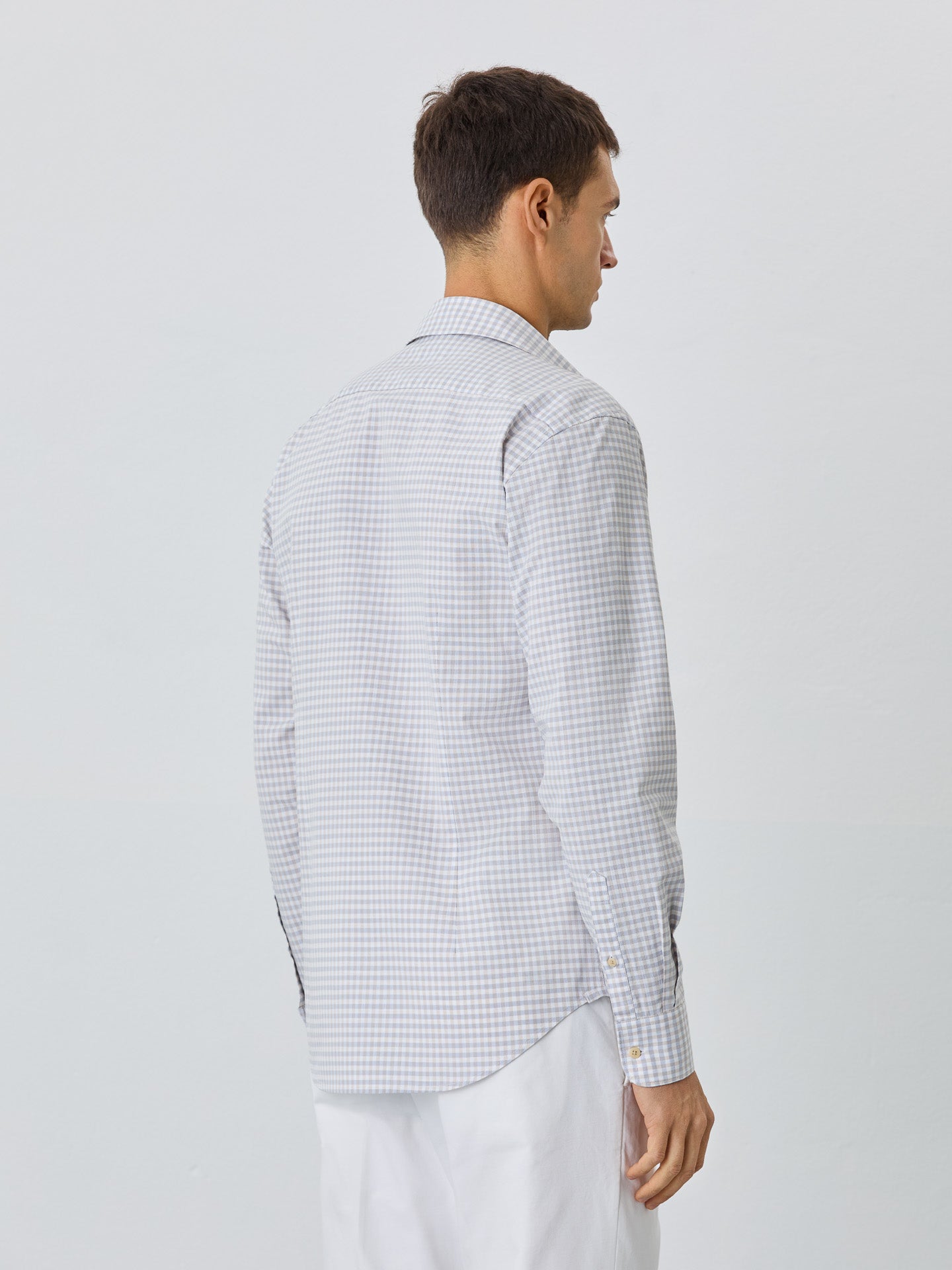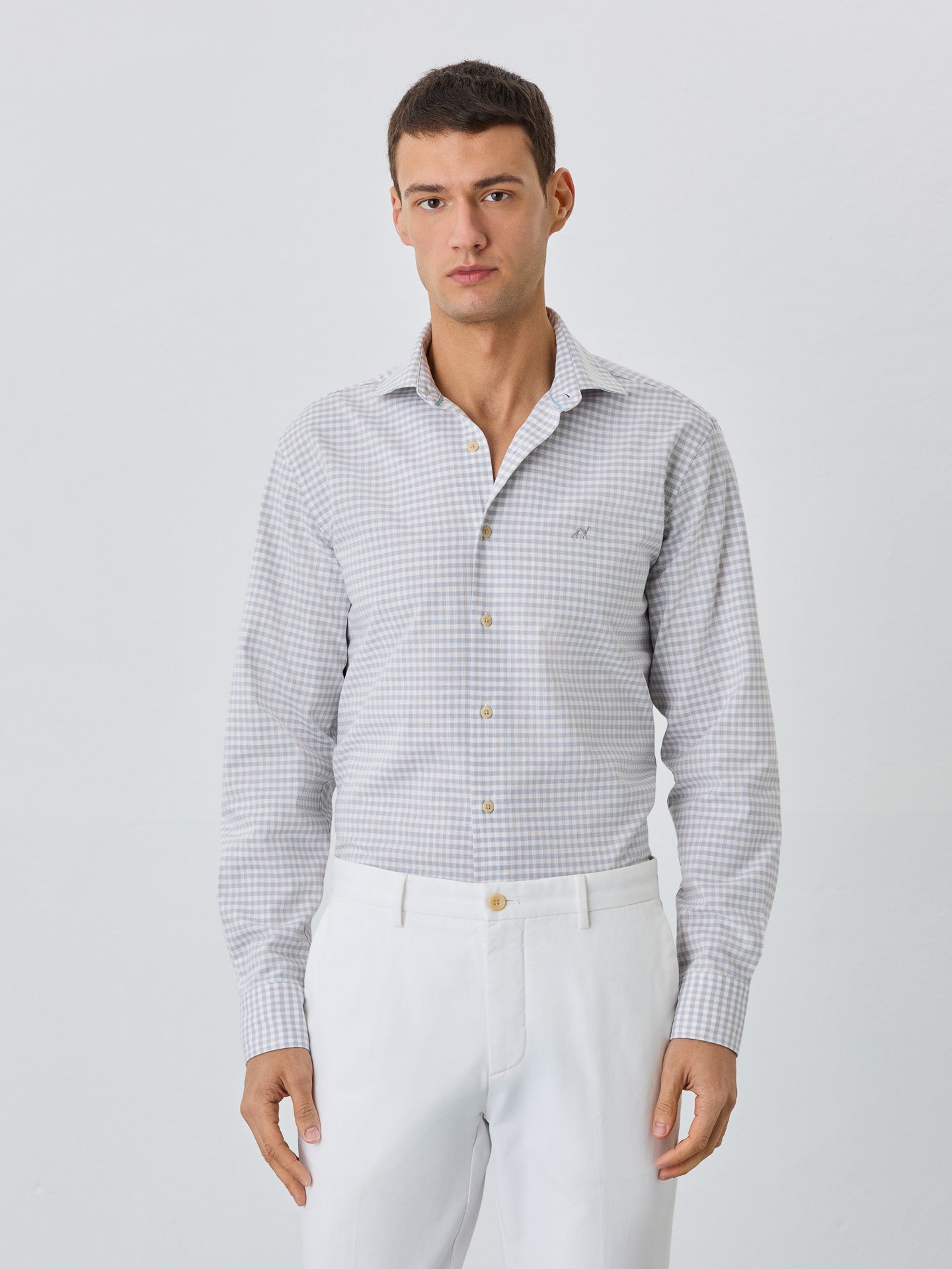 Slim Fit Shirt With Open Collar In BCI Cotton With Checks