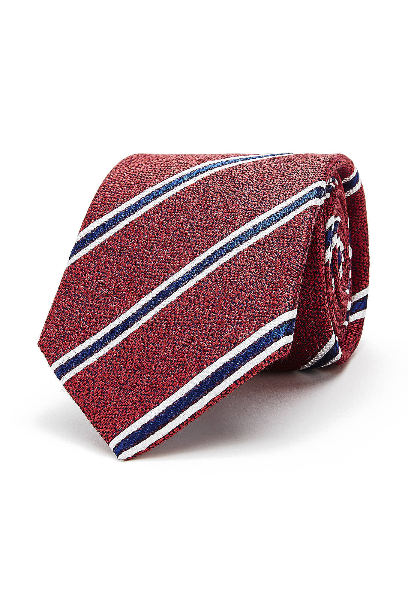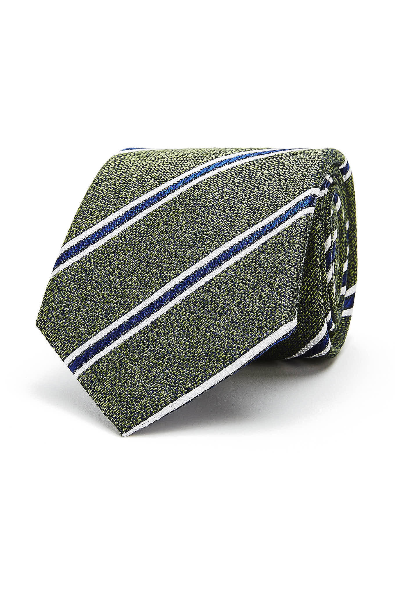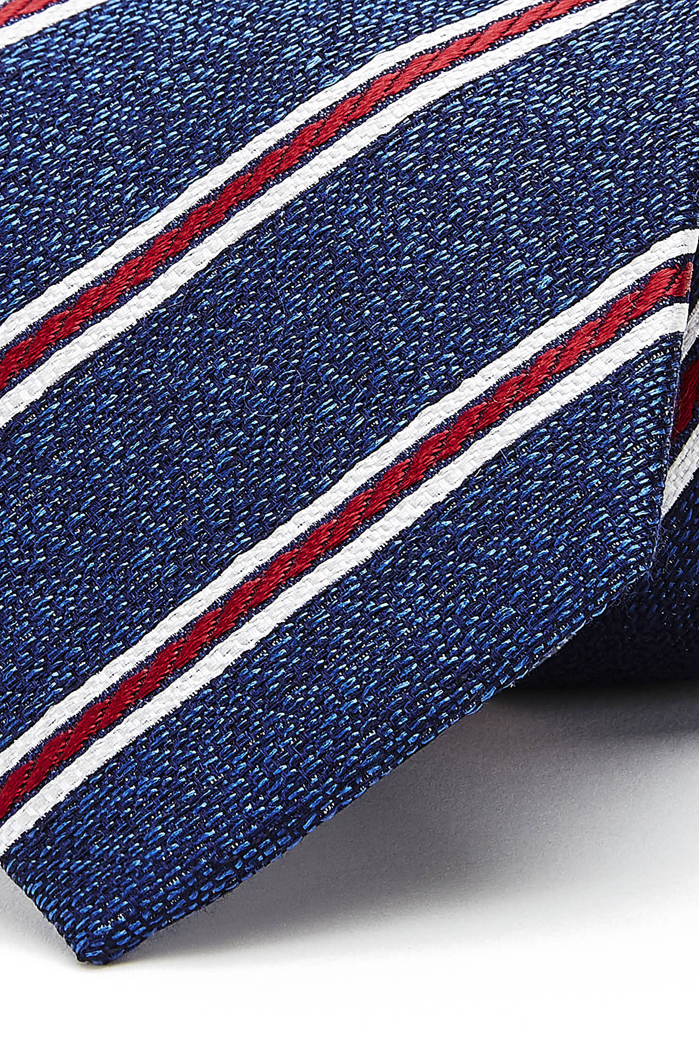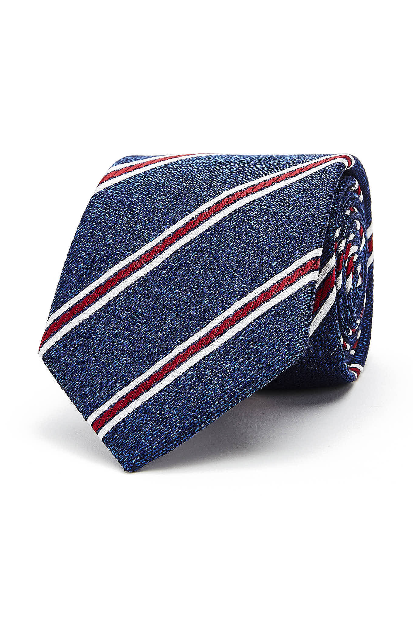 Classic men's tie, made from pure silk. With its striped pattern and light shiny touch, it's very elegant and the perfect complement to any classic shirt. With personalised lining. 8 cm wide at the widest part.