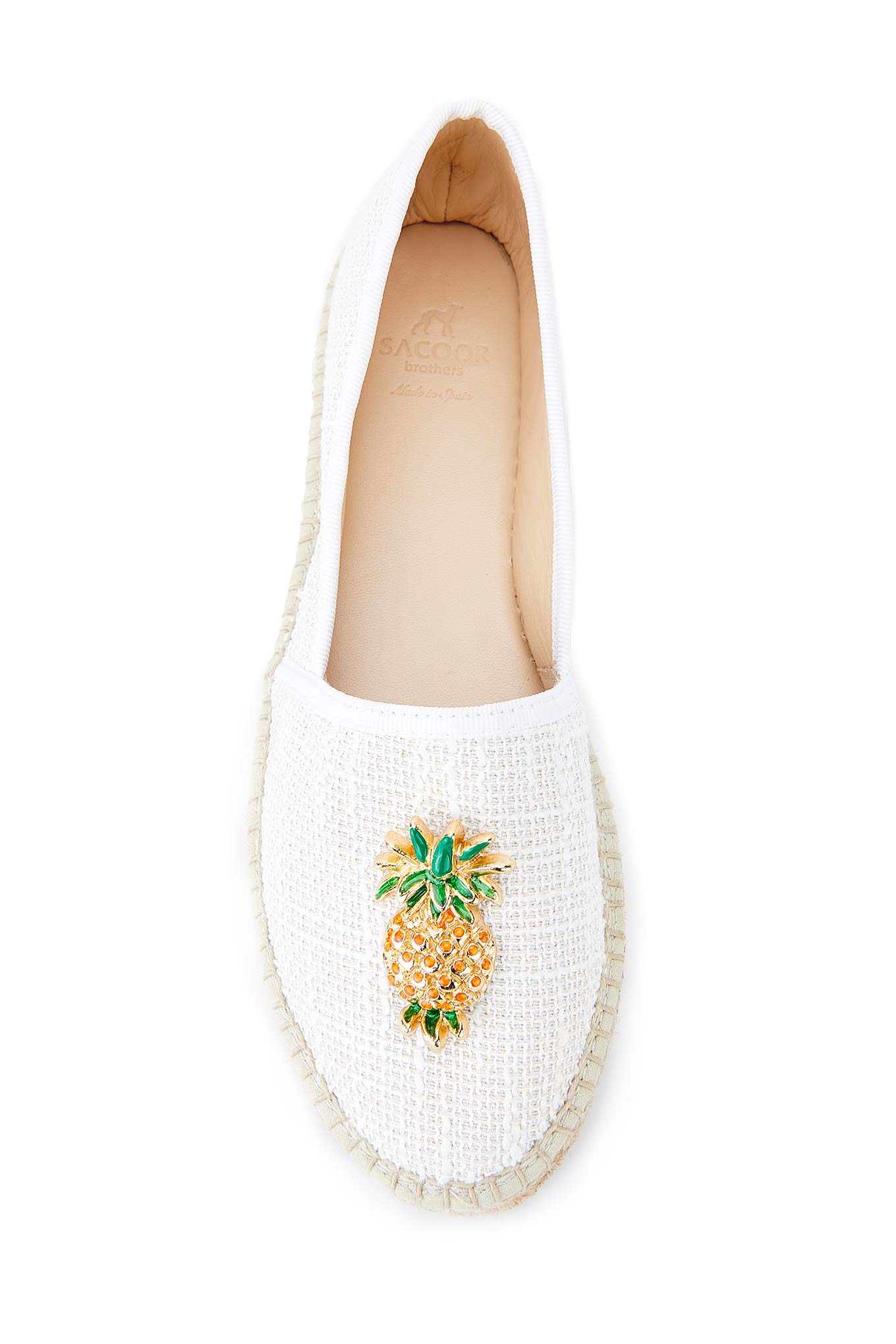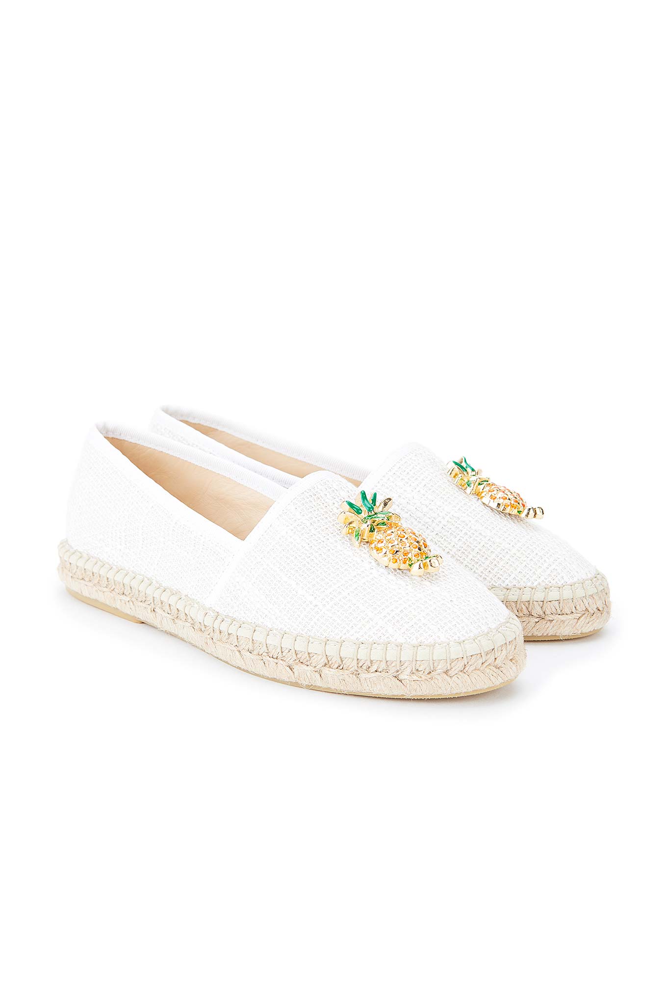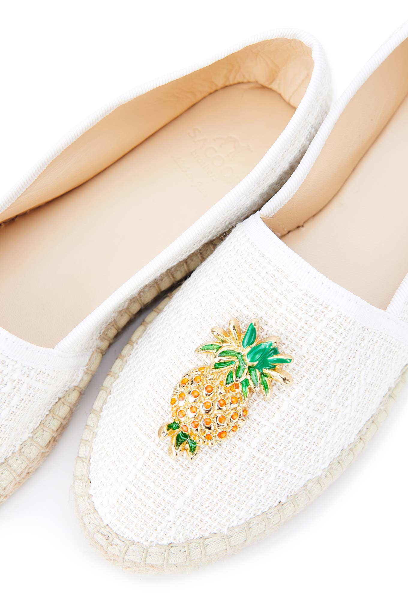 Women's sandals in a cool and original design. Eye-catching upper with coloured metal pineapple appliqué. Rubber sole and leather interior, with very comfortable insoles. Super-stylish sandals for elegant living on hot days.