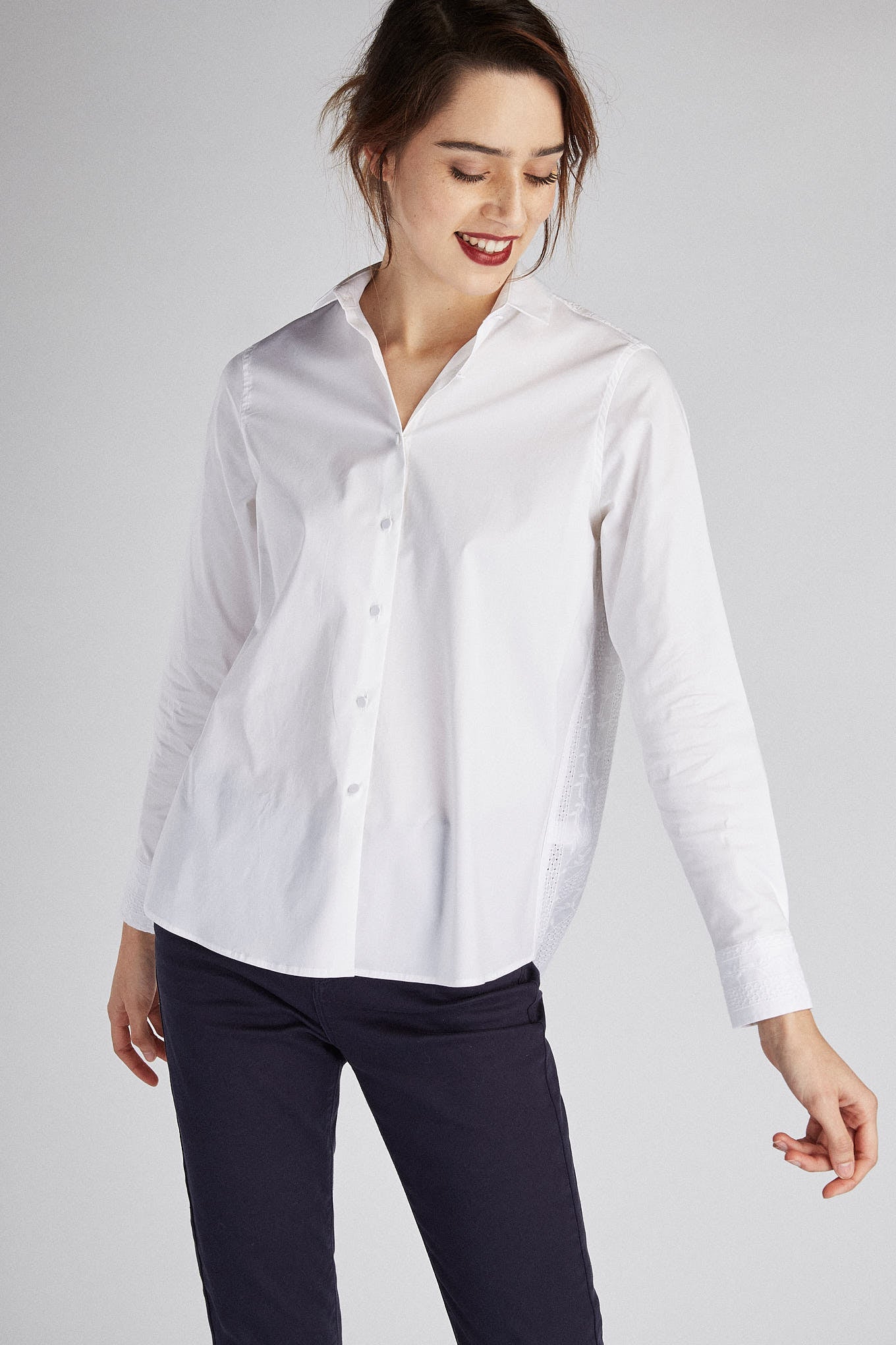 Highly original, plain women's shirt, embroidered all over the back and on the cuffs. Regular collar and lined buttons, including on cuffs. English stitching, more comfortable and for a quality finish. Elastane provides extra comfort and greater flexibility. Very feminine and elegant shirt for combining with other Sacoor garments. Sacoor Women's size 36 back length is 68 cm and sleeve length is 60 cm. See our Size Guide.