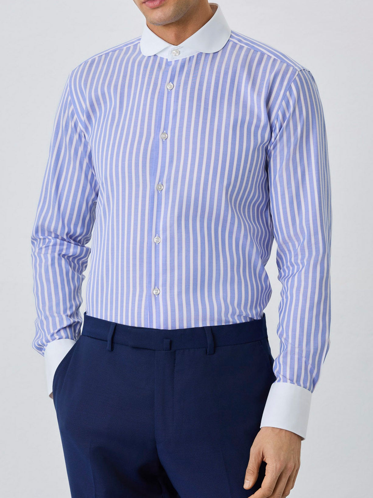 Slim Fit Shirt With Manchester Collar In Cotton With Stripes