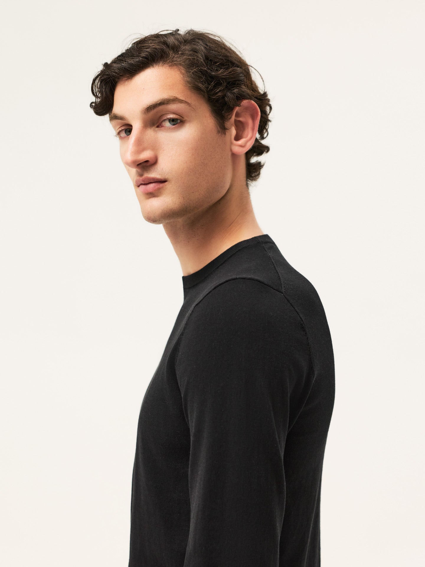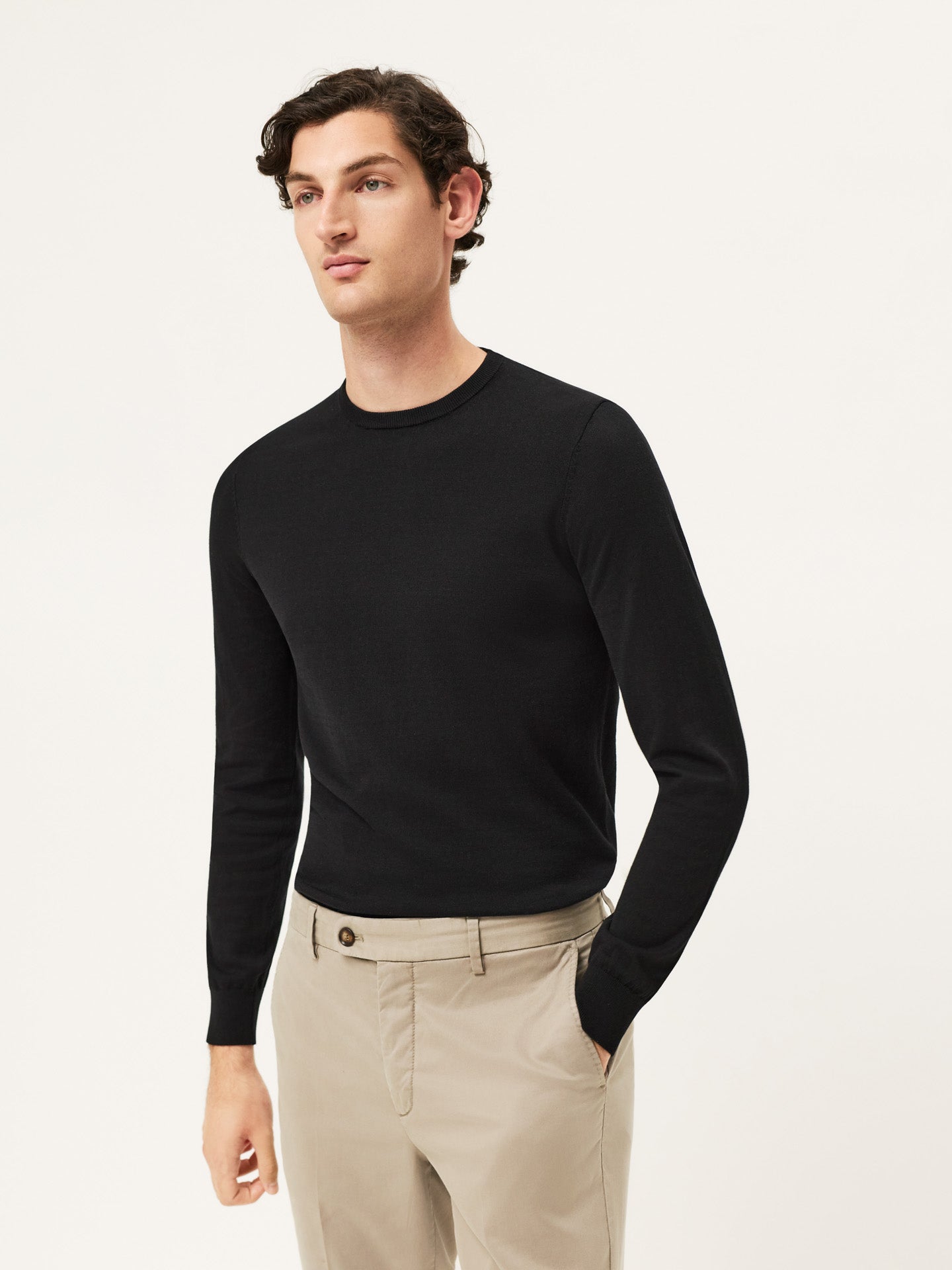 Long Sleeve Crew Neck Sweater In Cotton Silk Blend