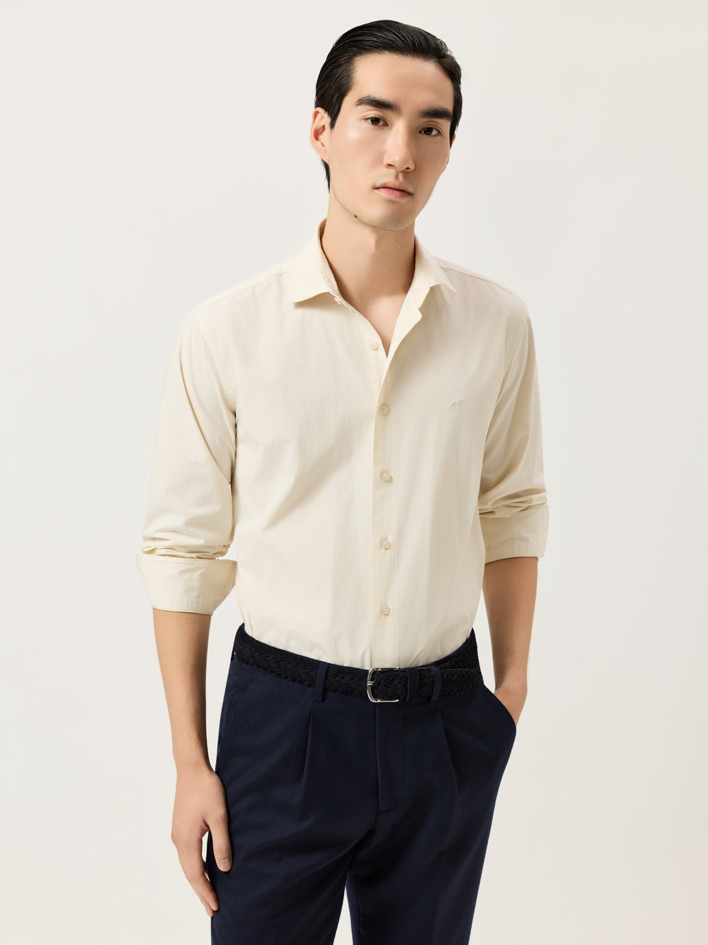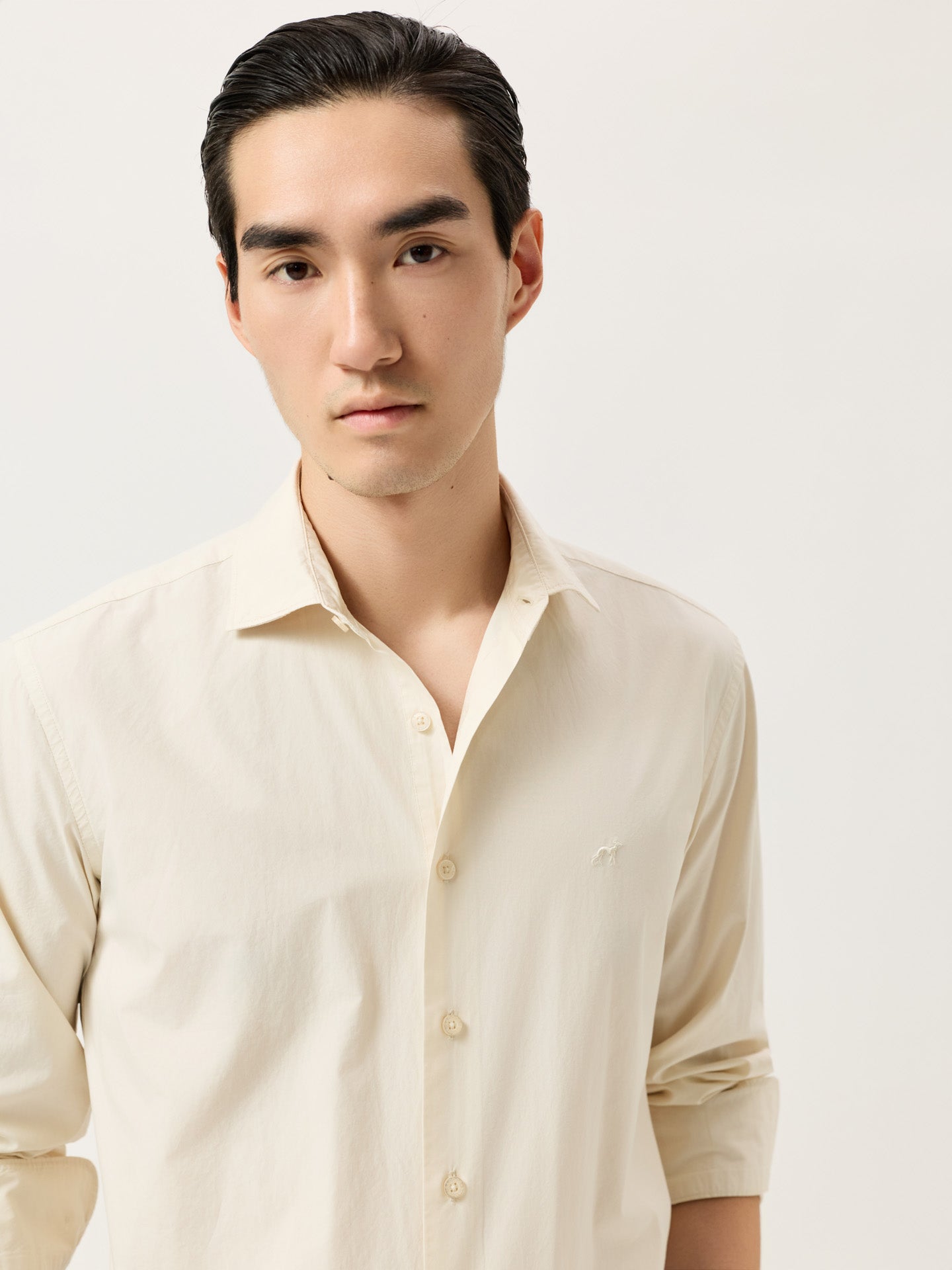 Slim Fit Overdye Poplin Shirt With Open Collar