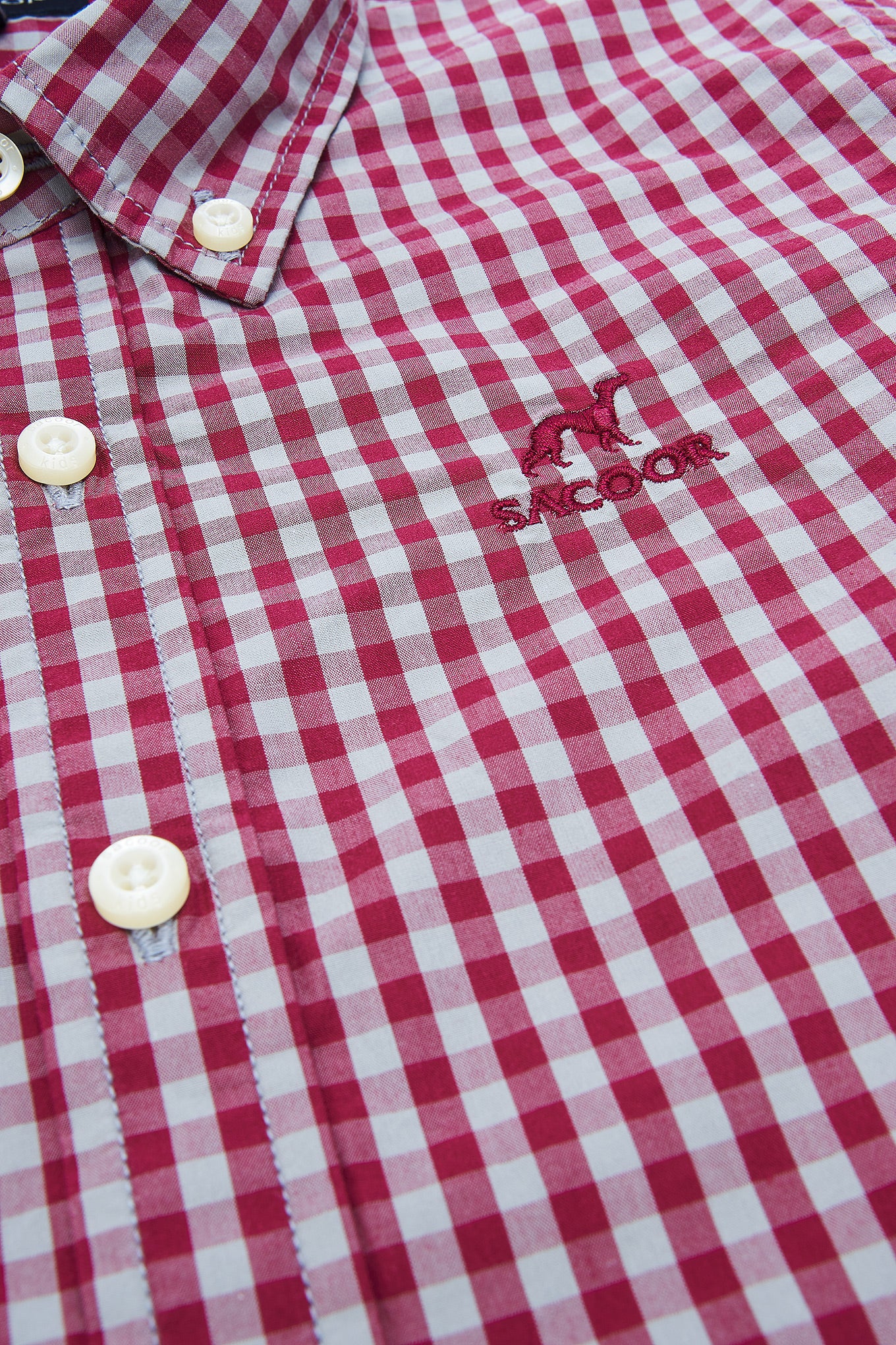Boy's shirt, checked pattern, 100 % cotton. Regular collar with buttons. English stitching, more comfortable and quality finish. Side support from triangular seams. Chest embroidered Sacoor logo. A casual shirt to wear for the day by day. Autumn/Winter 2019 collection available at Sacoor Brothers online store. Size 6 back length is 52 cm and sleeve length is 44 cm.