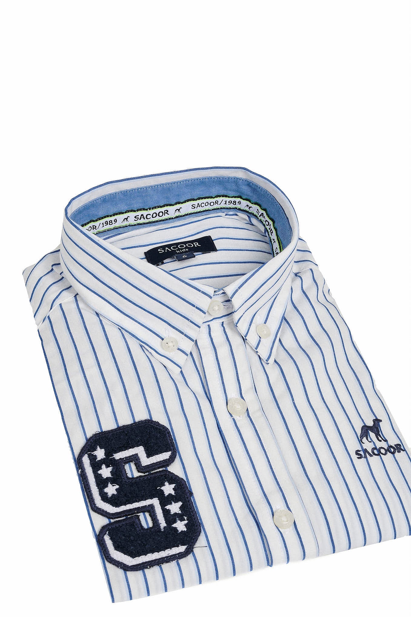 Boy's shirt, 100 % cotton. Regular collar with buttons. English stitching, more comfortable and quality finish. Side support from triangular seams. Chest embroidered Sacoor logo. A casual shirt to wear for the day by day. Autumn/Winter 2019 collection available at Sacoor Brothers online store. Size 6 back length is 52 cm and sleeve length is 44 cm.