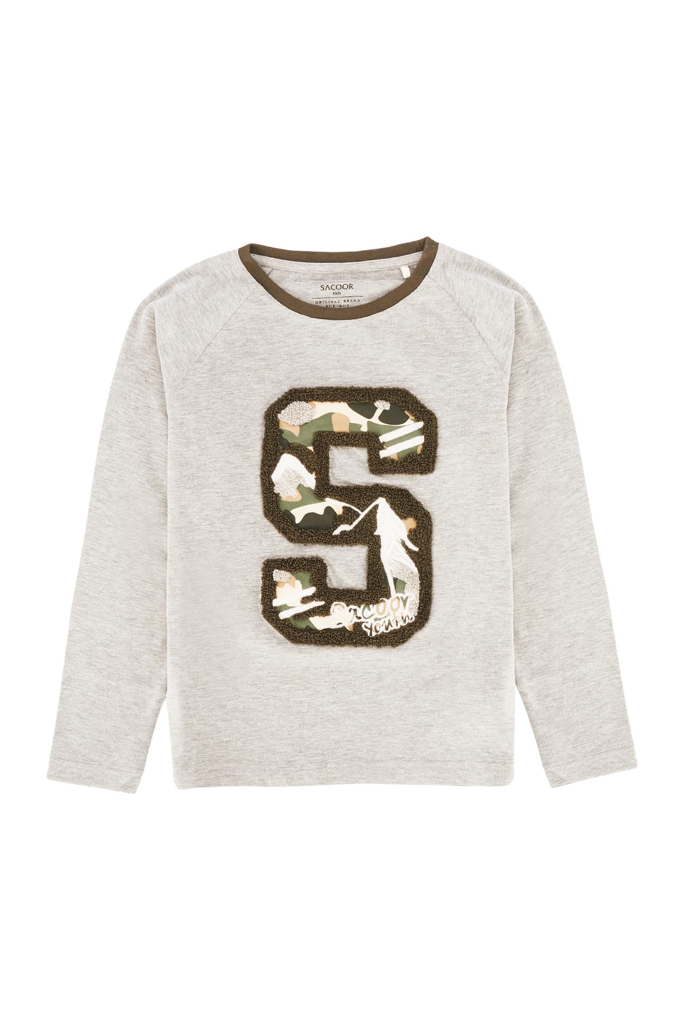 A very comfortable boy's cotton t-shirt inspired by outdoor adventure. On the front, there is a big highlight of the brand, with an embossed "S" print. Round neckline in contrast tone. Slight side openings. Ideal for use with Sacoor boy's cardigans, jeans, chino pants or shorts.