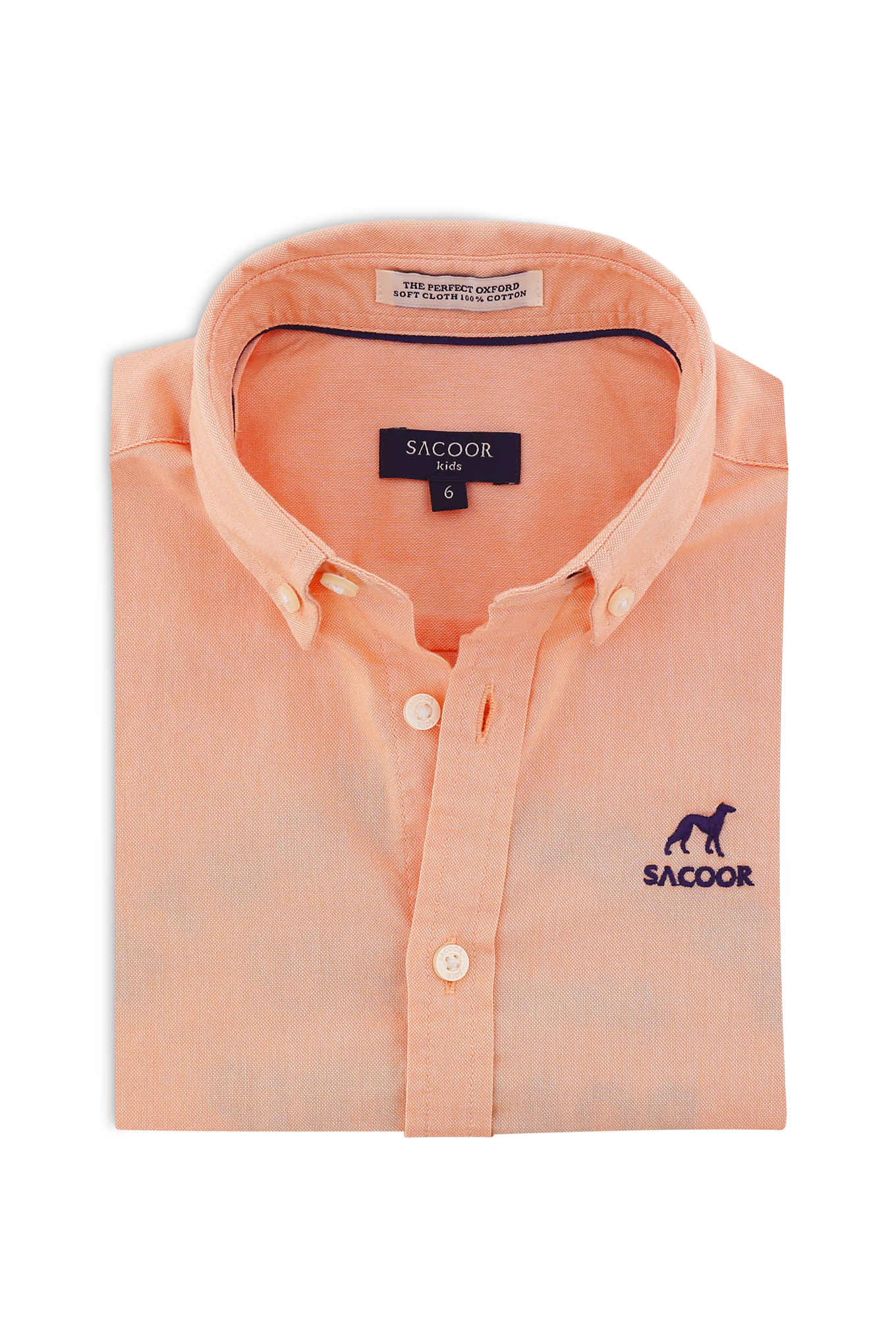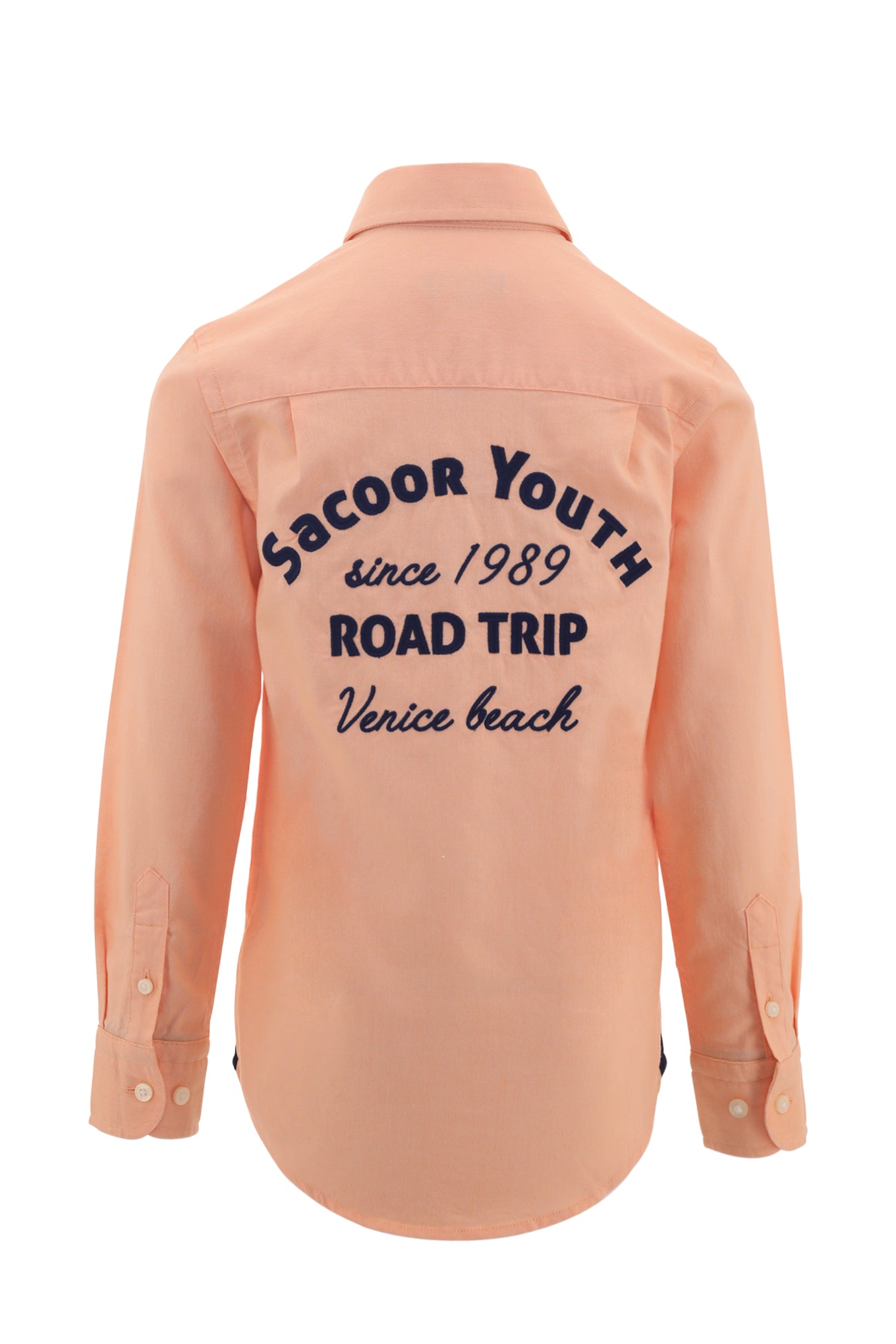 Show-off shirt made of 100% cotton oxford fabric. Features a button-up front and long sleeves with single cuffs with two buttons. Side patch triangle in contrast fabric. Logo embroidery in contrast color and show-off embroidery on the back.