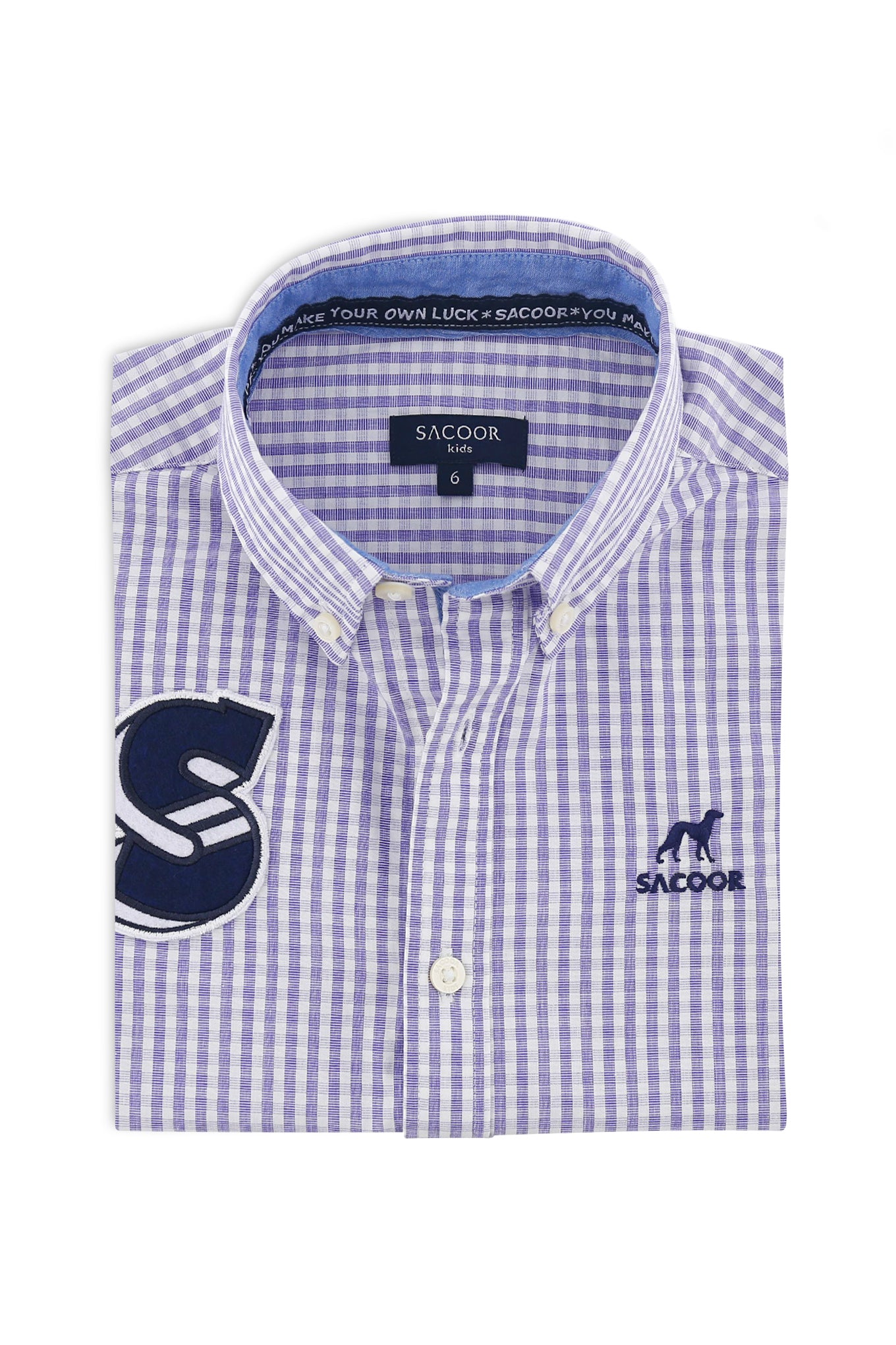 Checks shirt made of 100% cotton fabric. Features a buton dow collar, button-up front and long sleeves with single cuffs with two buttons. Side patch triangle in contrast fabric. Logo embroidery in contrast color and "S" badge.