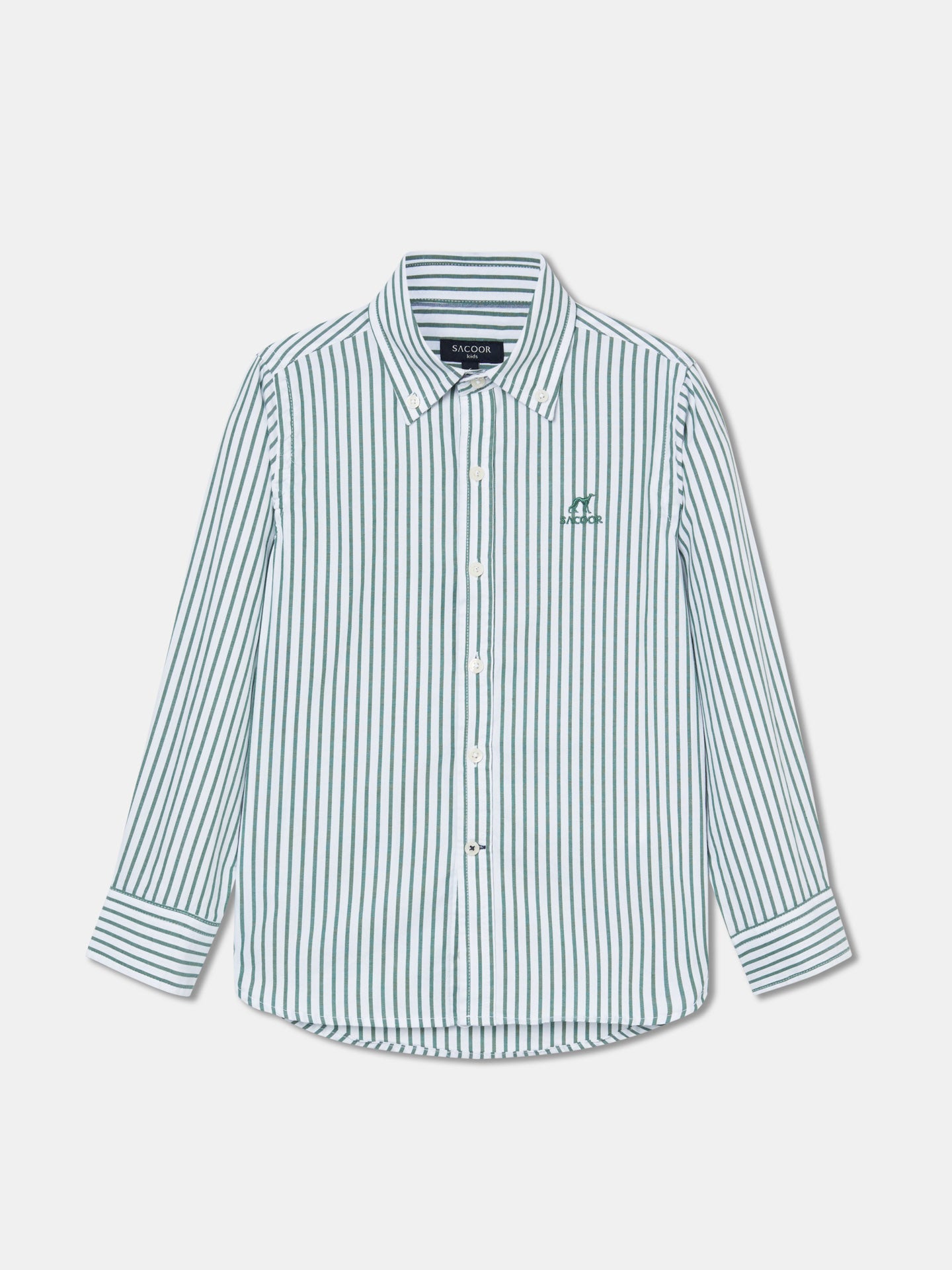 Striped casual shirt made of 100% cotton oxford fabric. Features a button-down collar, button-up front placket and long sleeves with rounded double cuffs. Rich details such as logo embroidery.