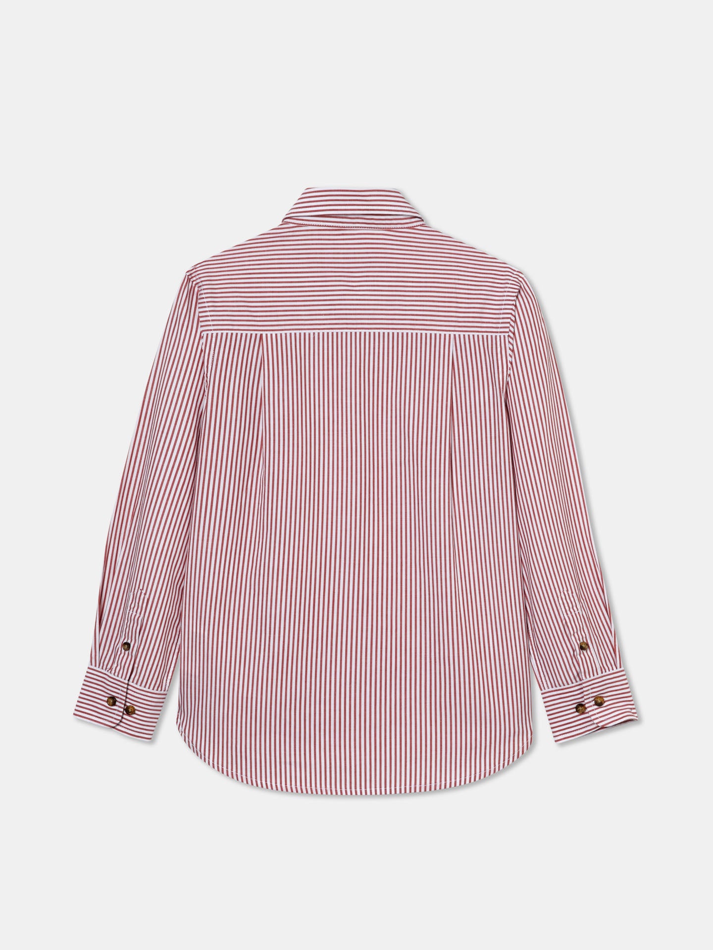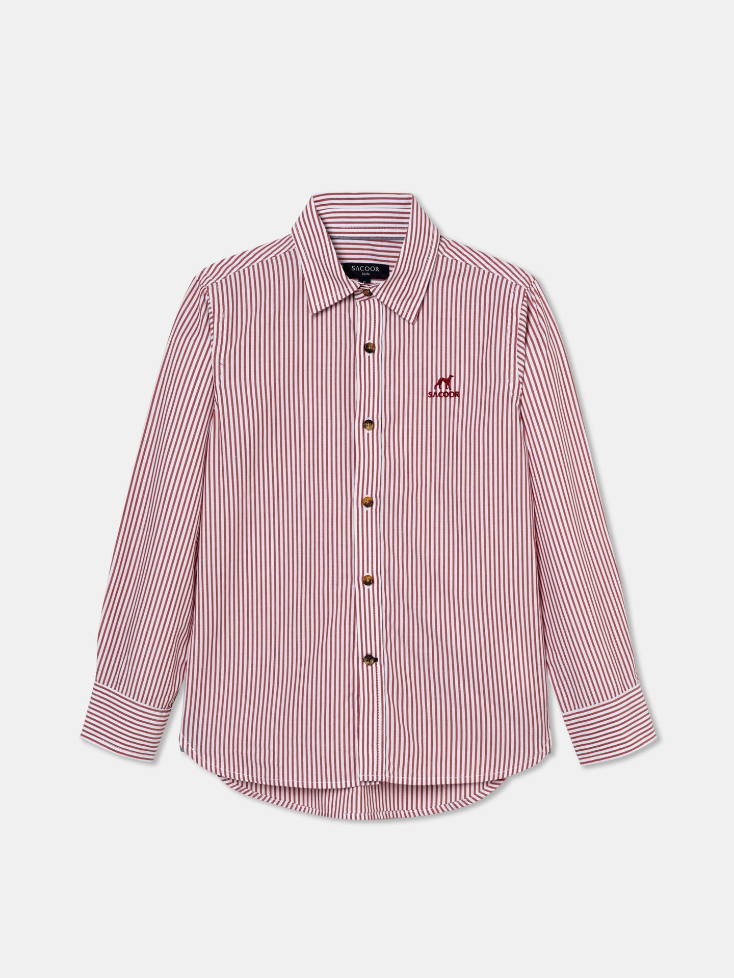 Striped casual shirt made of 100% cotton poplin fabric. Features a open collar, button-up front placket and long sleeves with rounded double cuffs. Rich details such as logo embroidery.