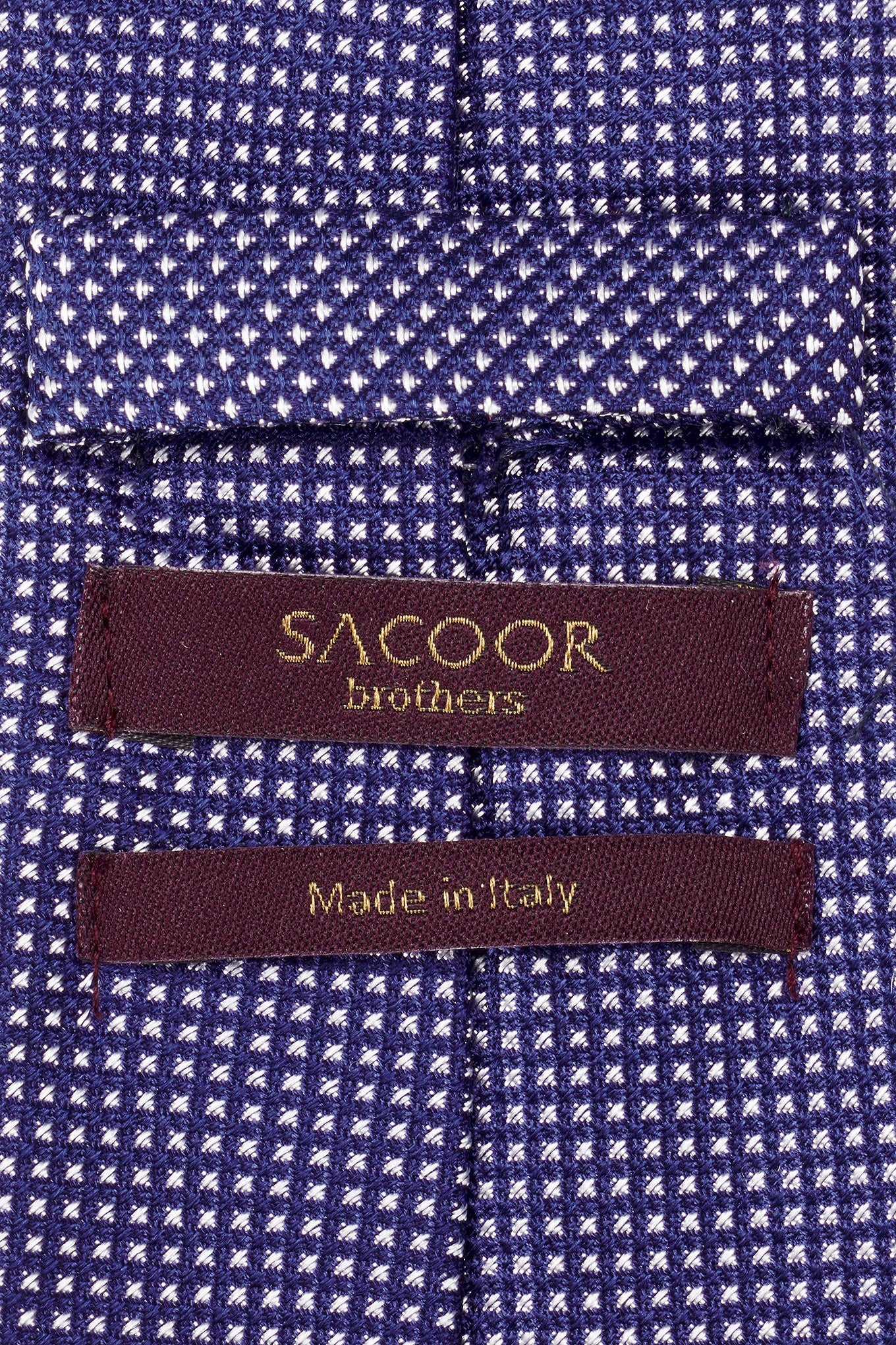 Essential accessories. Sacoor Brothers signature ties are timeless pieces and highly sought after for the quality of their fabrics, cut and patterns. This 100% silk tie will add a touch of modernism and sophistication to your look.
